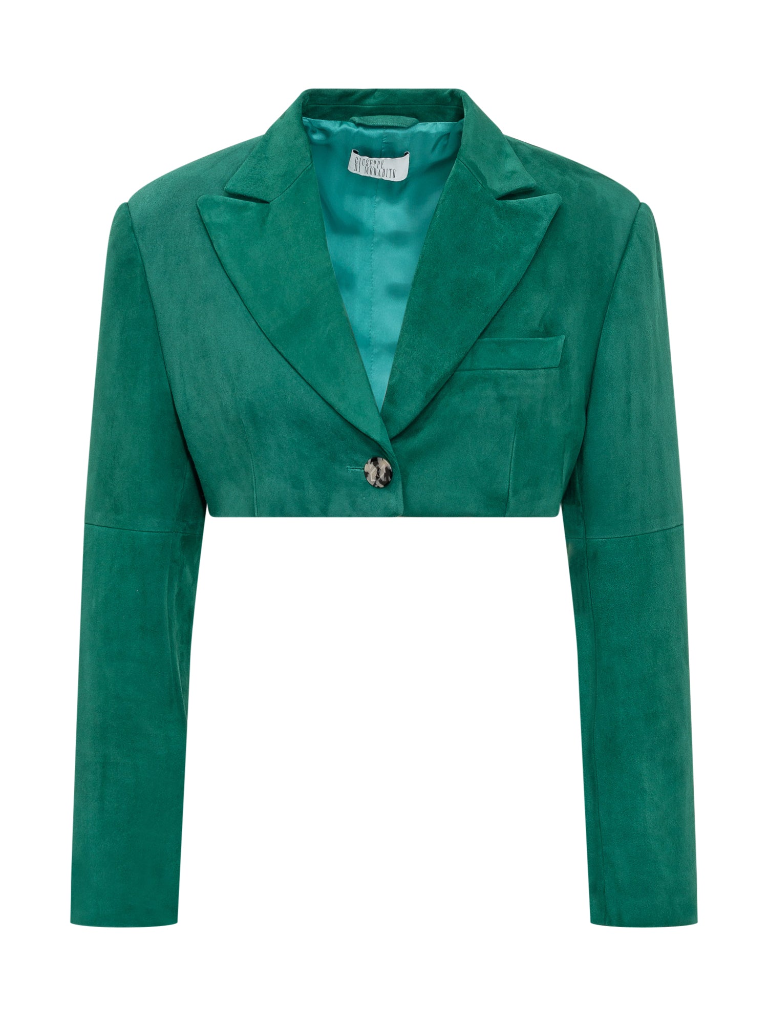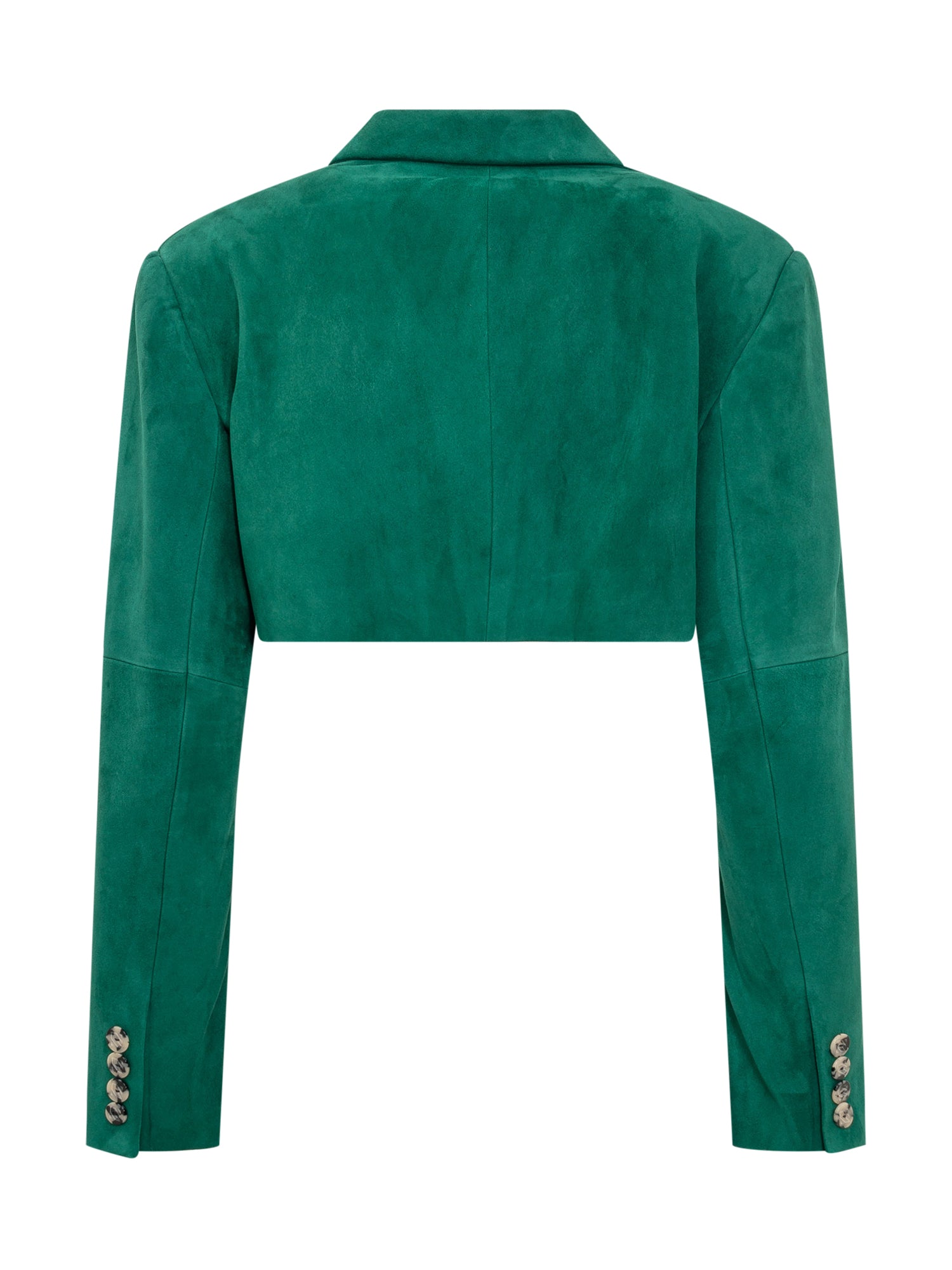 Giacca cropped. Scollo a V. Chiusura con bottone. Polsi con bottoni. Tasca sul davanti.