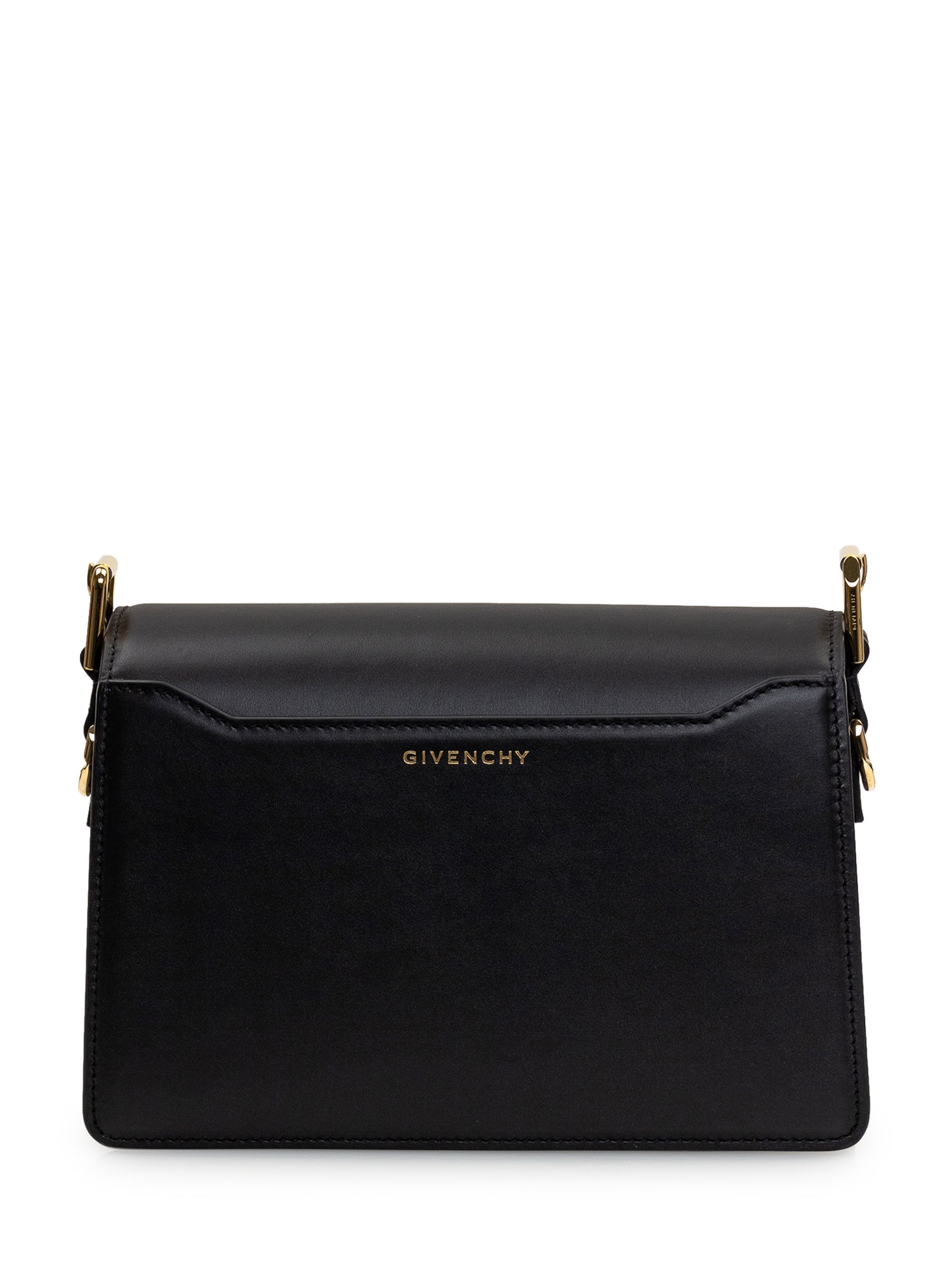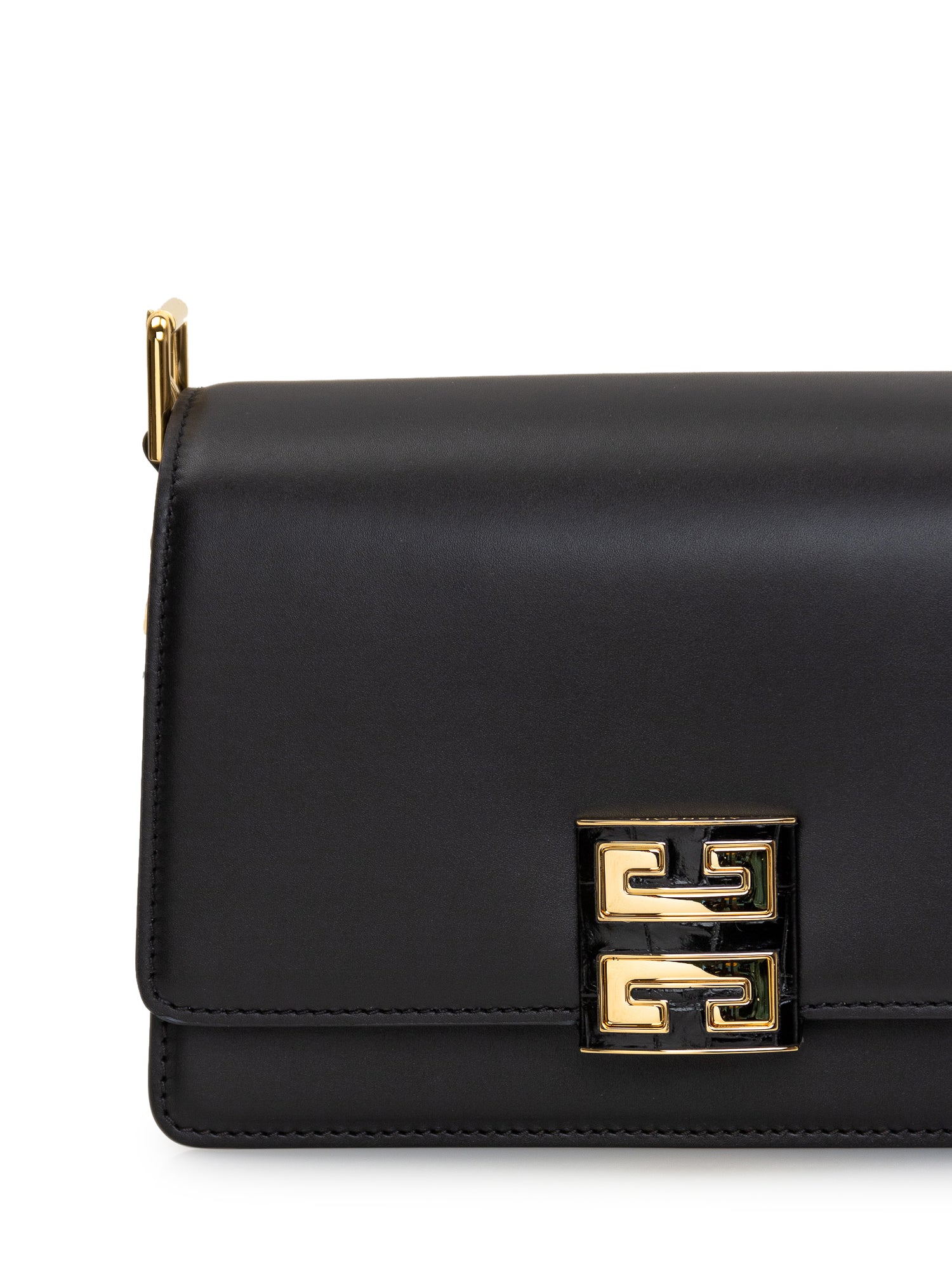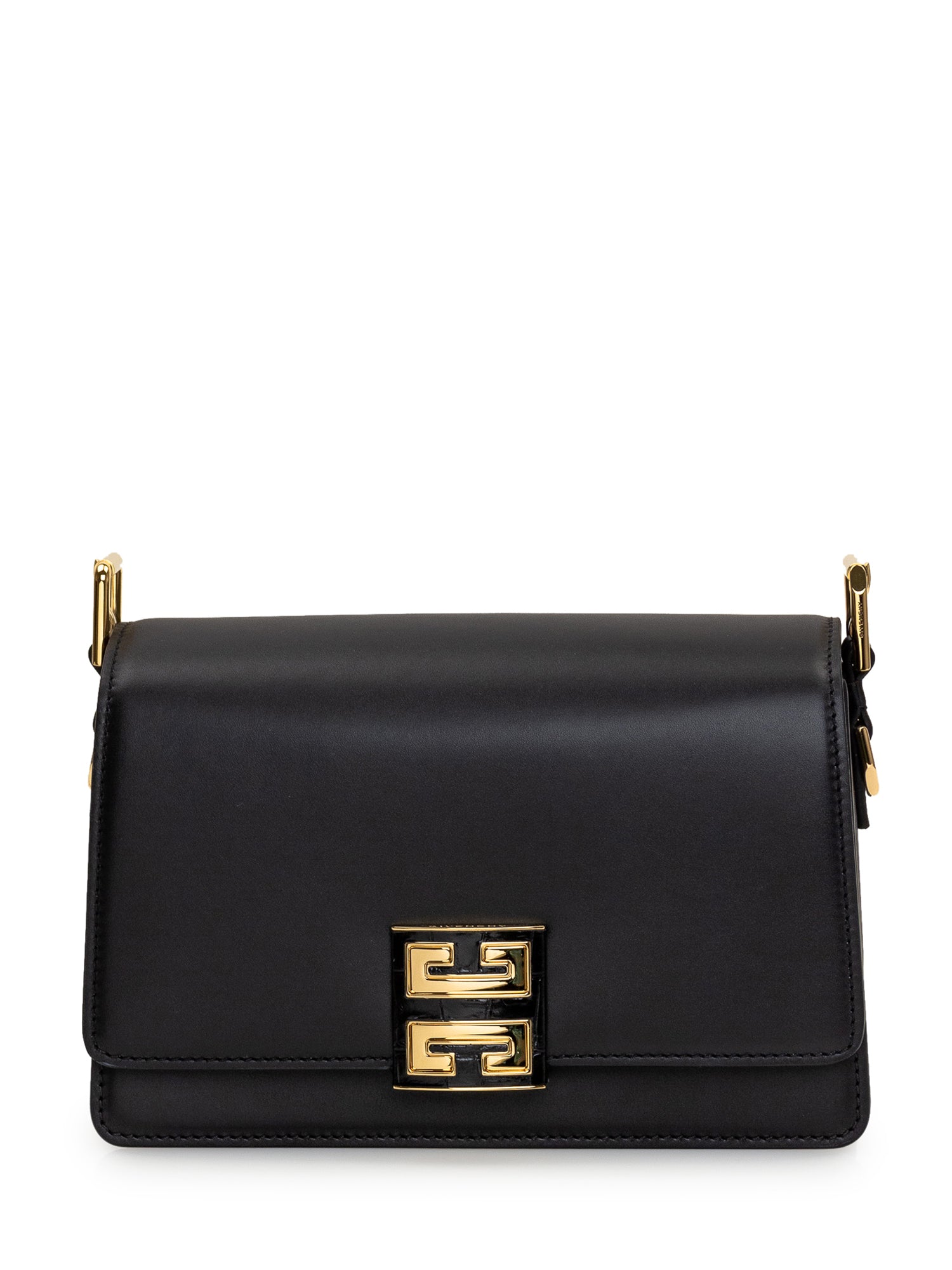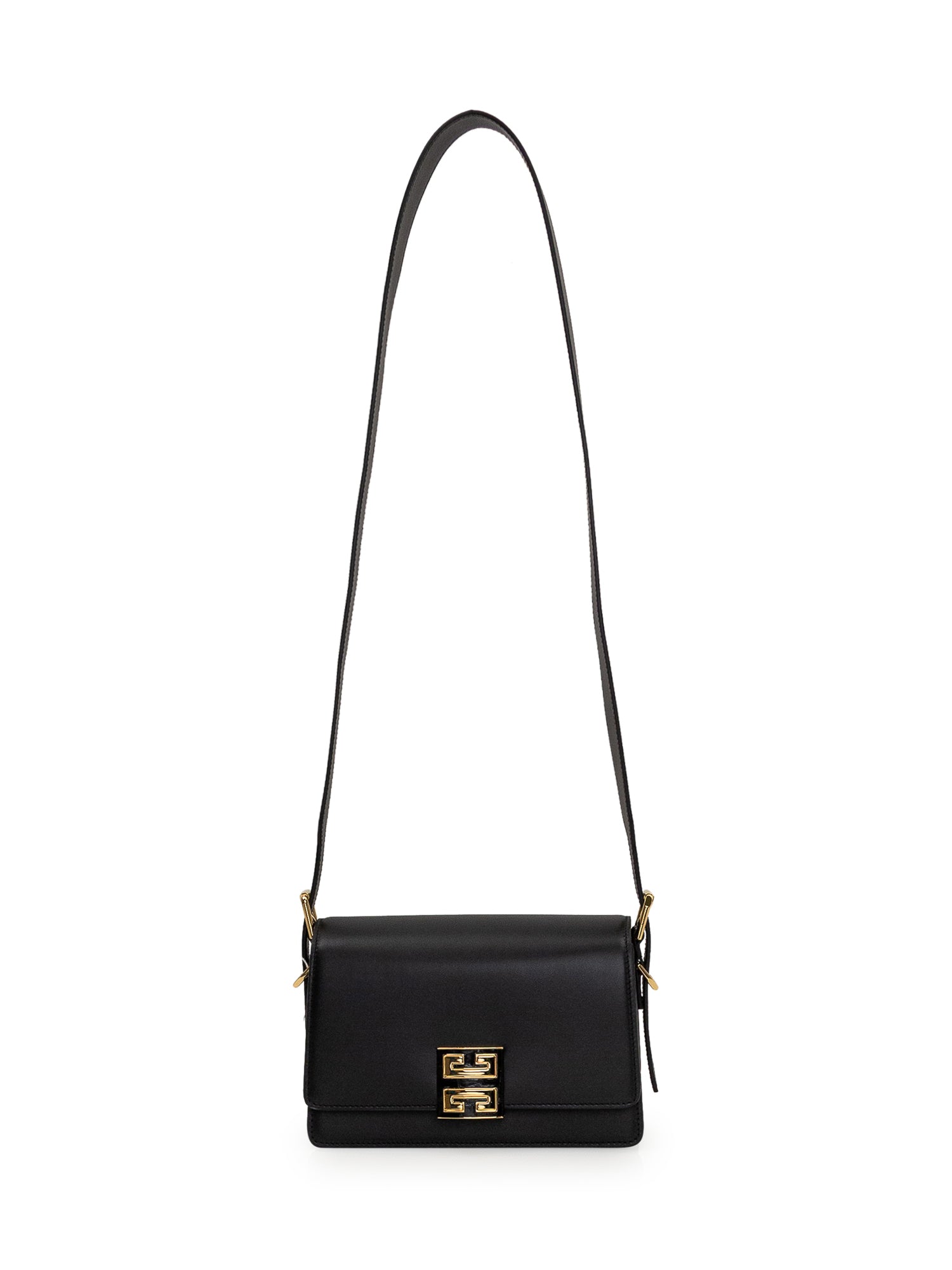Borsa a spalla nera. Tracolla regolabile e rimovibile. Chiusura con patta e magnete. Tre scomparti. Tasca sul retro. Logo 4G sul davanti.