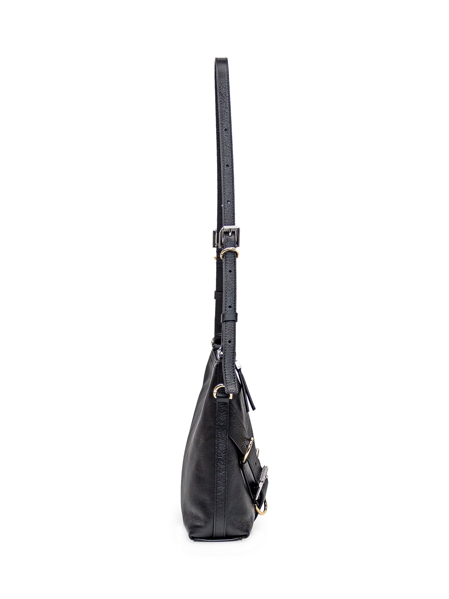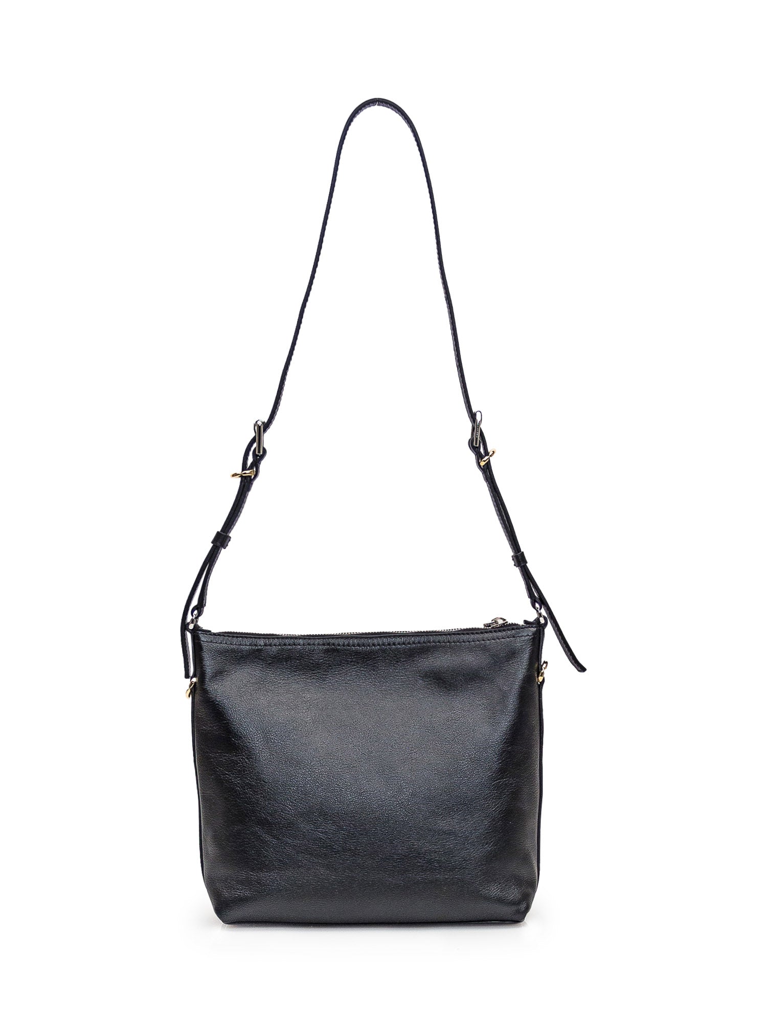 Borsa a spalla nera in pelle martellata. Tracolla regolabile. Uno scomparto con tasca piatta interna. Chiusura con zip. Firma GIVENCHY sul davanti.