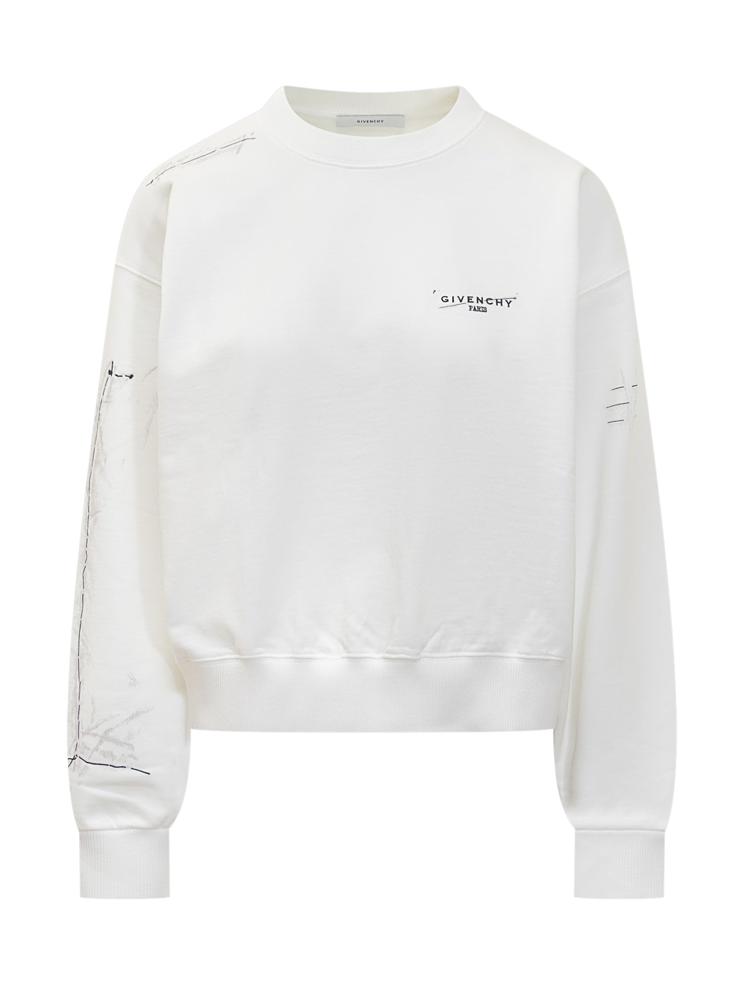 Felpa girocollo in cotone con logo Givenchy Paris ricamato sul petto e dettagli effetto rovinato su spalle e maniche.