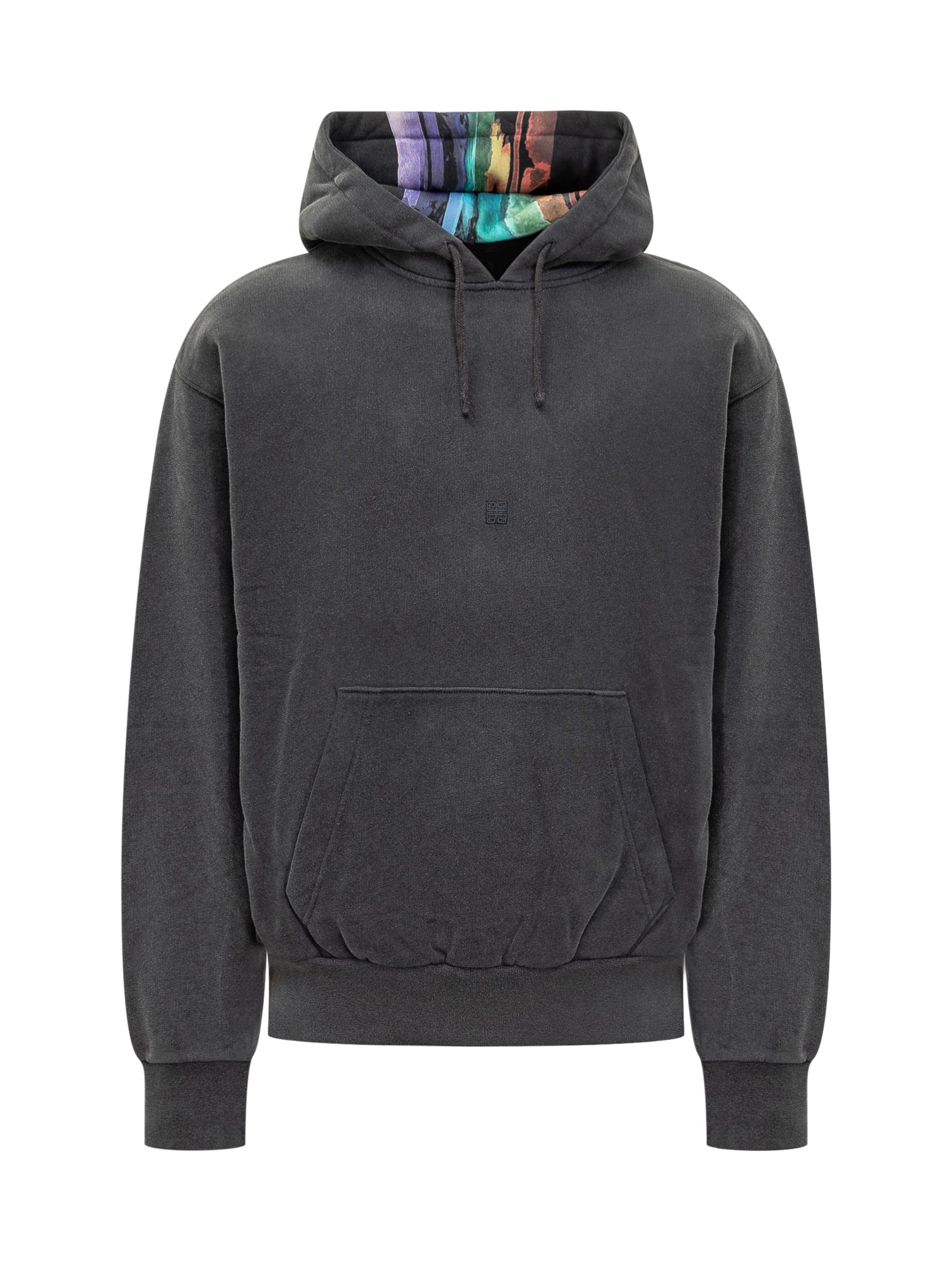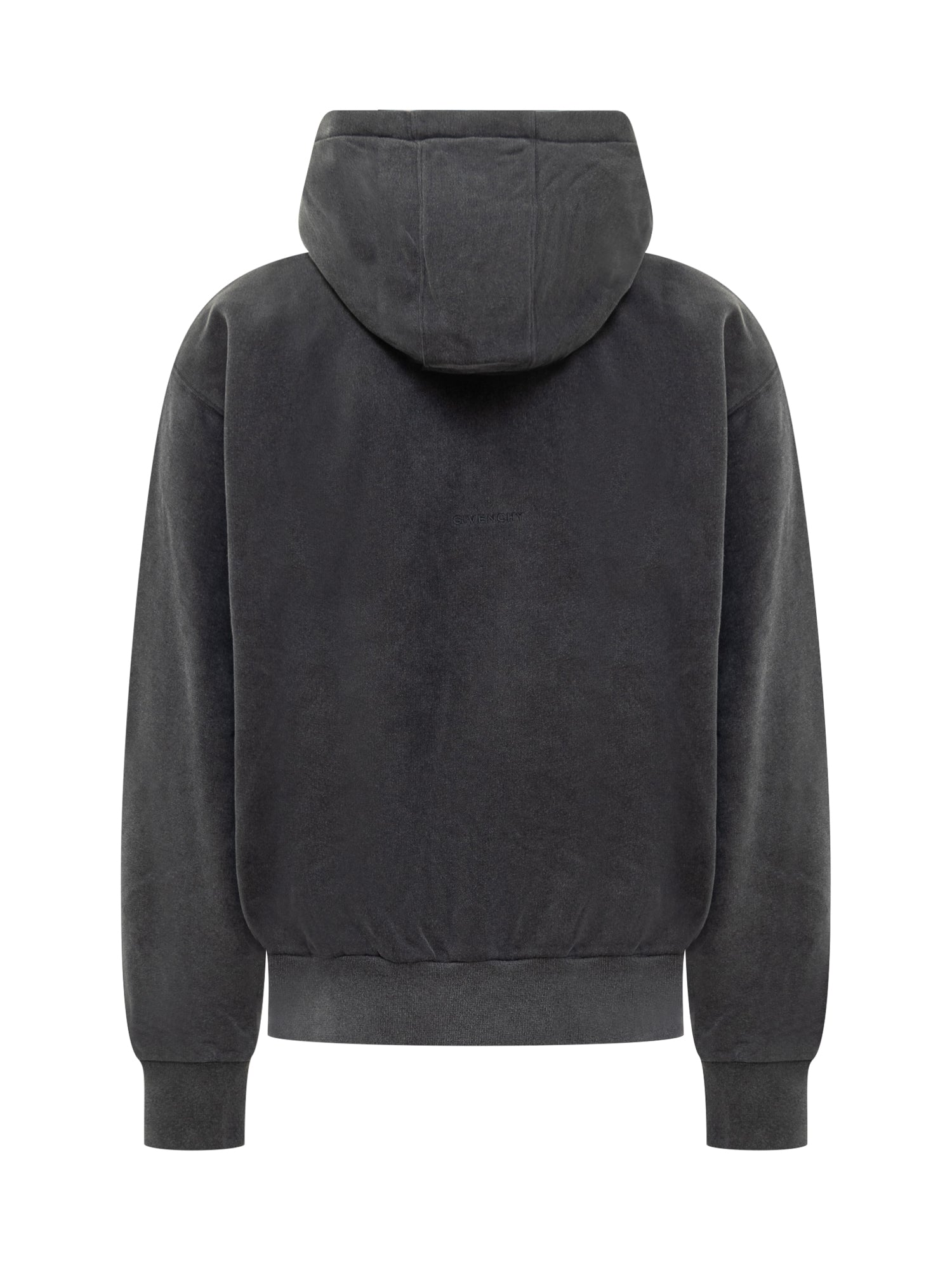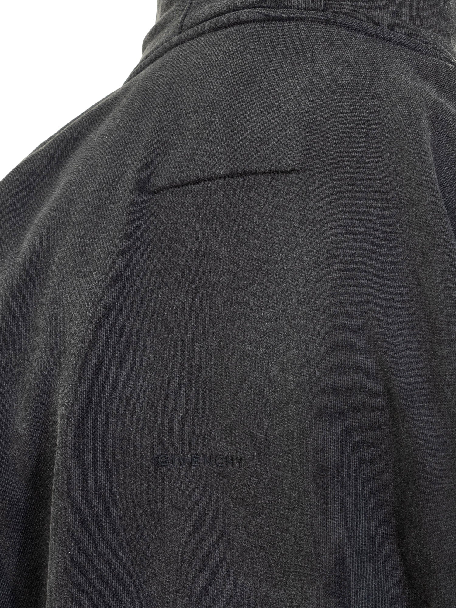 Felpa con cappuccio nera. Coulisse nel cappuccio. Tasca marsupio sul davanti. Interno del cappuccio con stampa. Logo GIVENCHY ricamato sul retro.