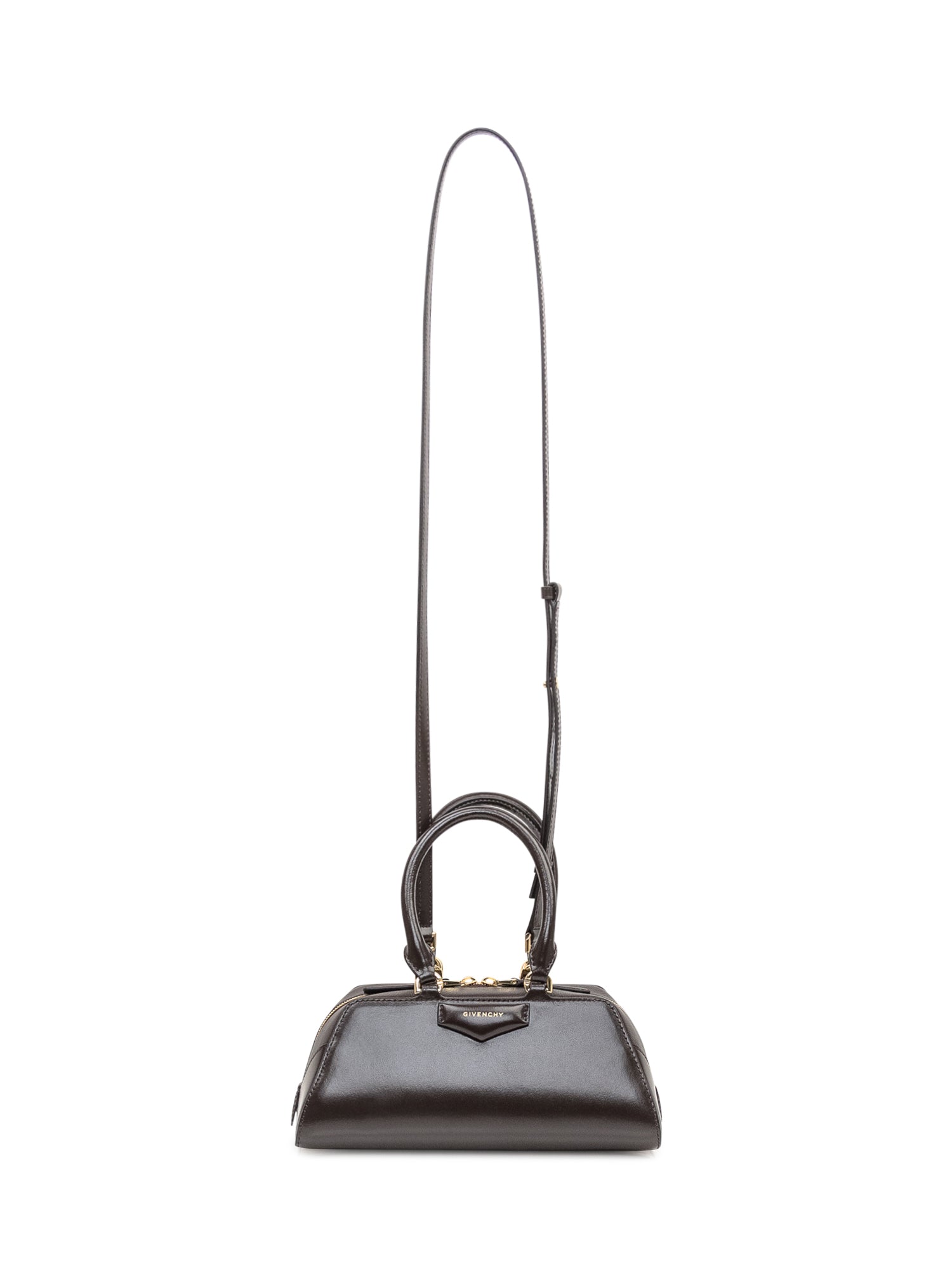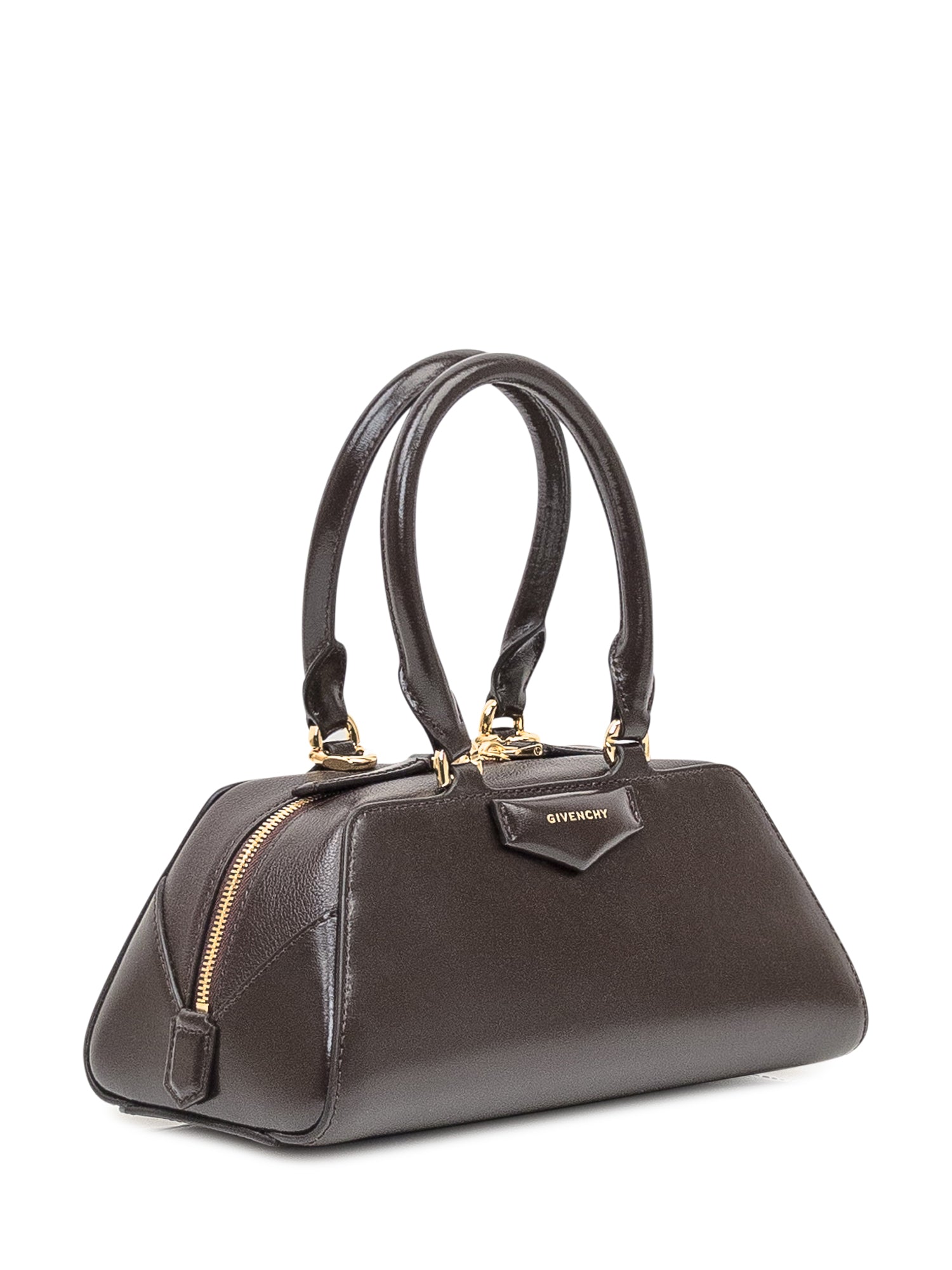 Iconica borsa da donna in pelle liscia firmata Givenchy. Manici rigidi e tracolla regolabile. Elegante, strutturata e versatile. Logo Givenchy dorato. Made in Italy.