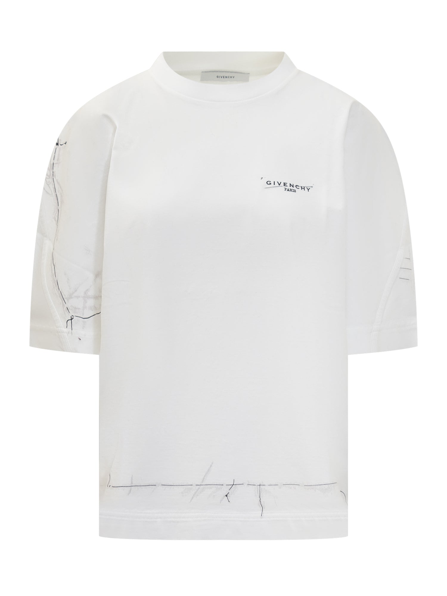 T-shirt Givenchy in cotone bianco con logo ricamato sul petto e dettagli grafici a contrasto.