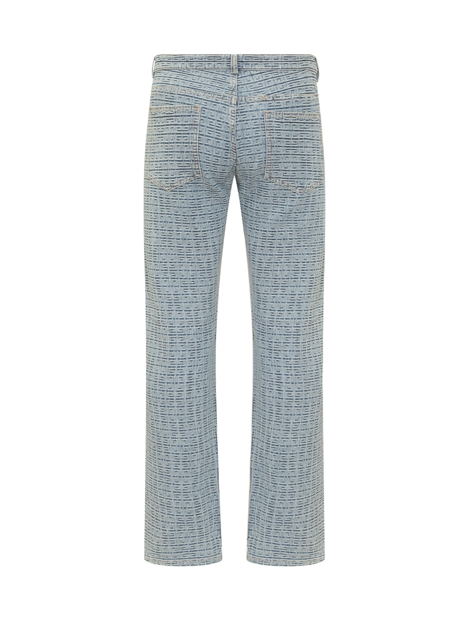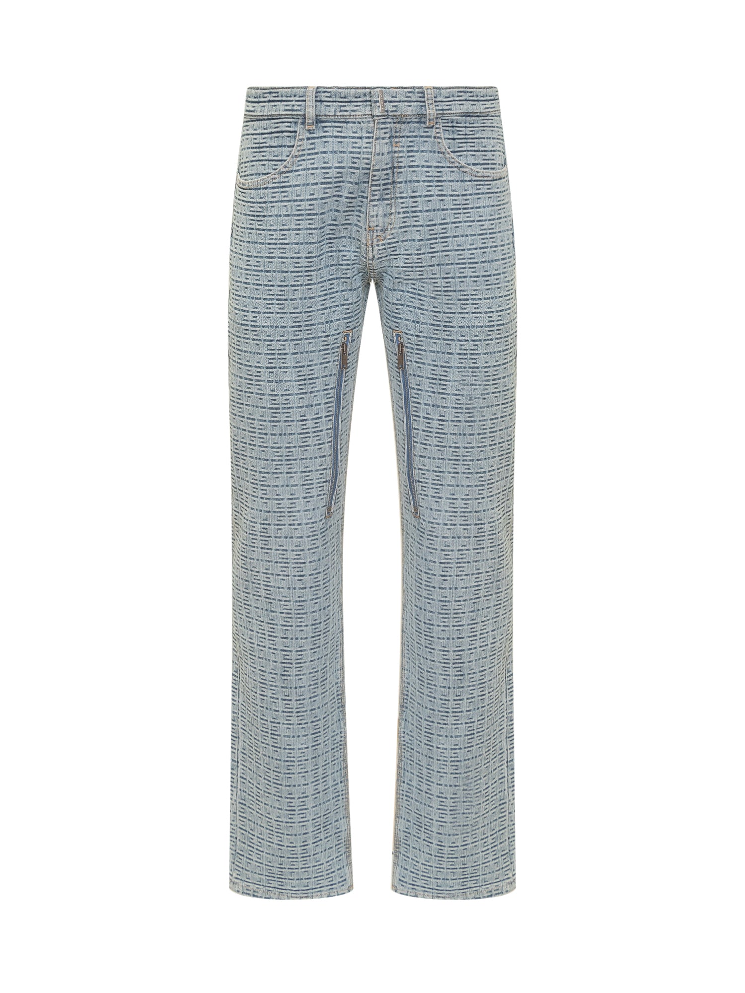 Jeans lunghi straight fit. Chiusura con zip e gancino. Passanti per cintura. Cinque tasche. Targhetta 4G sul retro. Zip cut-out sull'interno gamba. Motivo 4G in rilievo all-over.
