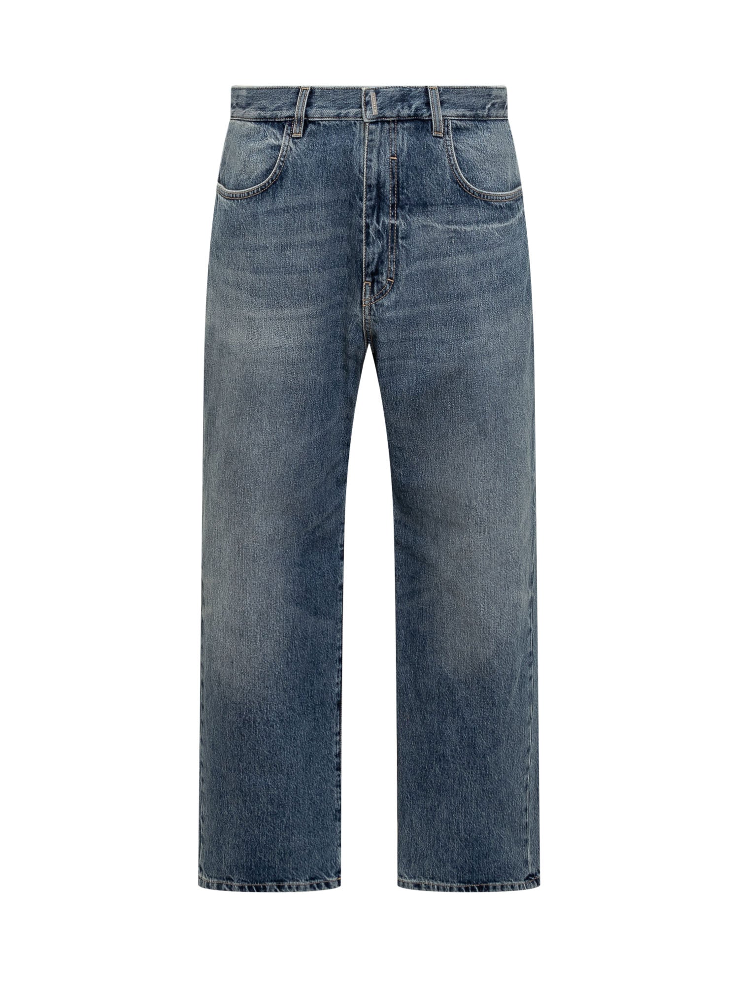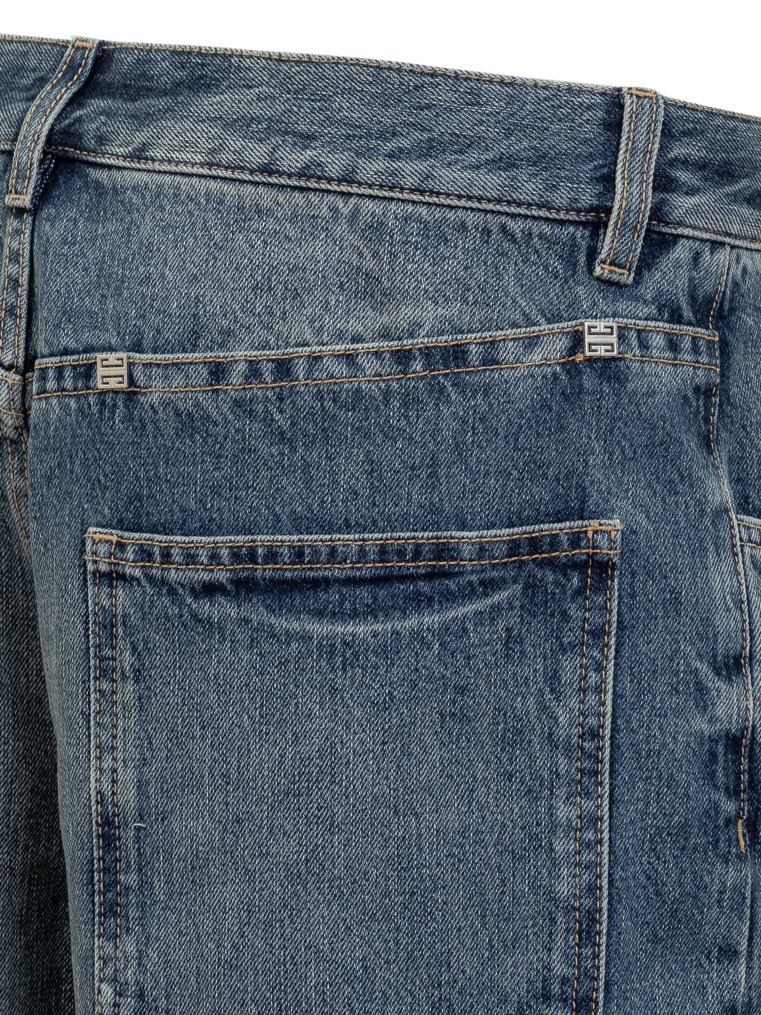 Jeans straight fit. Chiusura con gancino e zip. Passanti per cintura. Due tasche sul davanti. Due tasche sul retro. Targhetta logo 4G sul retro.