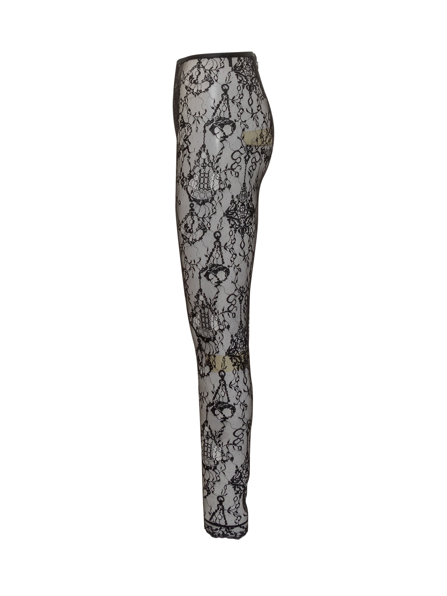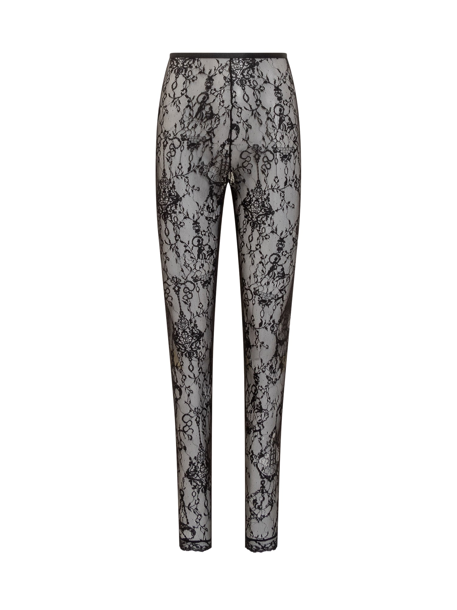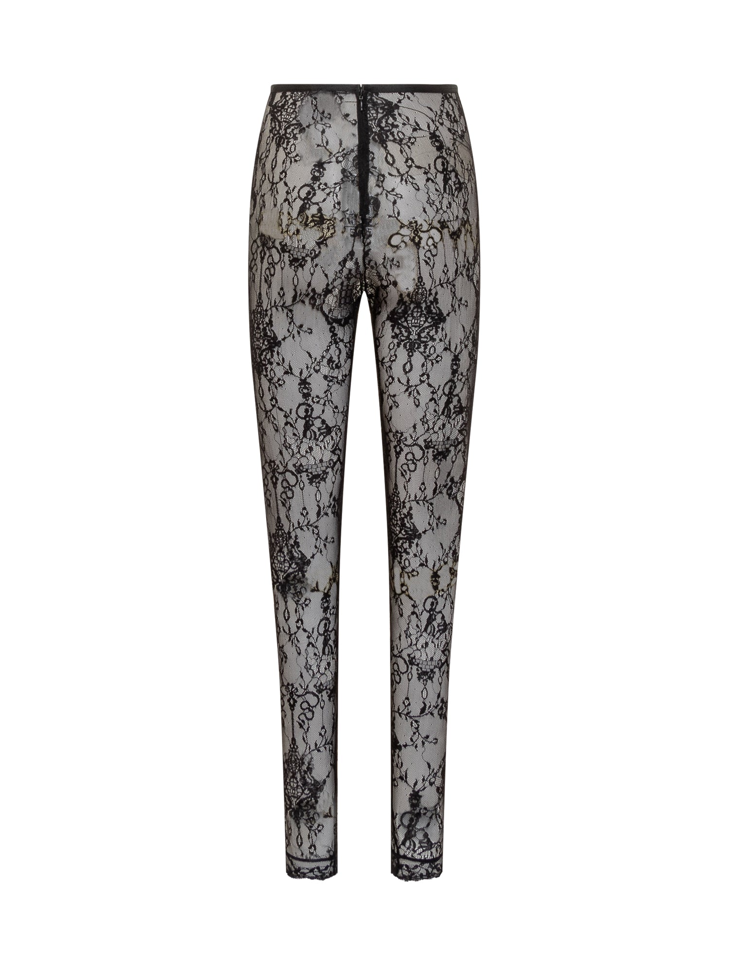 Leggings elasticizzati semitrasparenti. Ricamo all-over. Chiusura con zip.