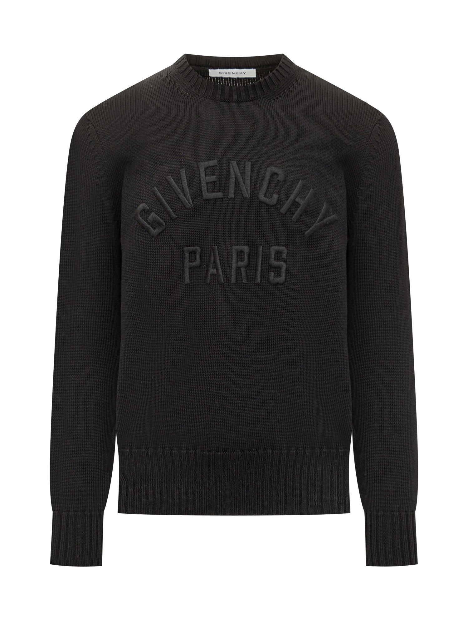 Maglione nero in cotone con logo Givenchy Paris ricamato tono su tono sul petto. Linea essenziale e vestibilità regolare.