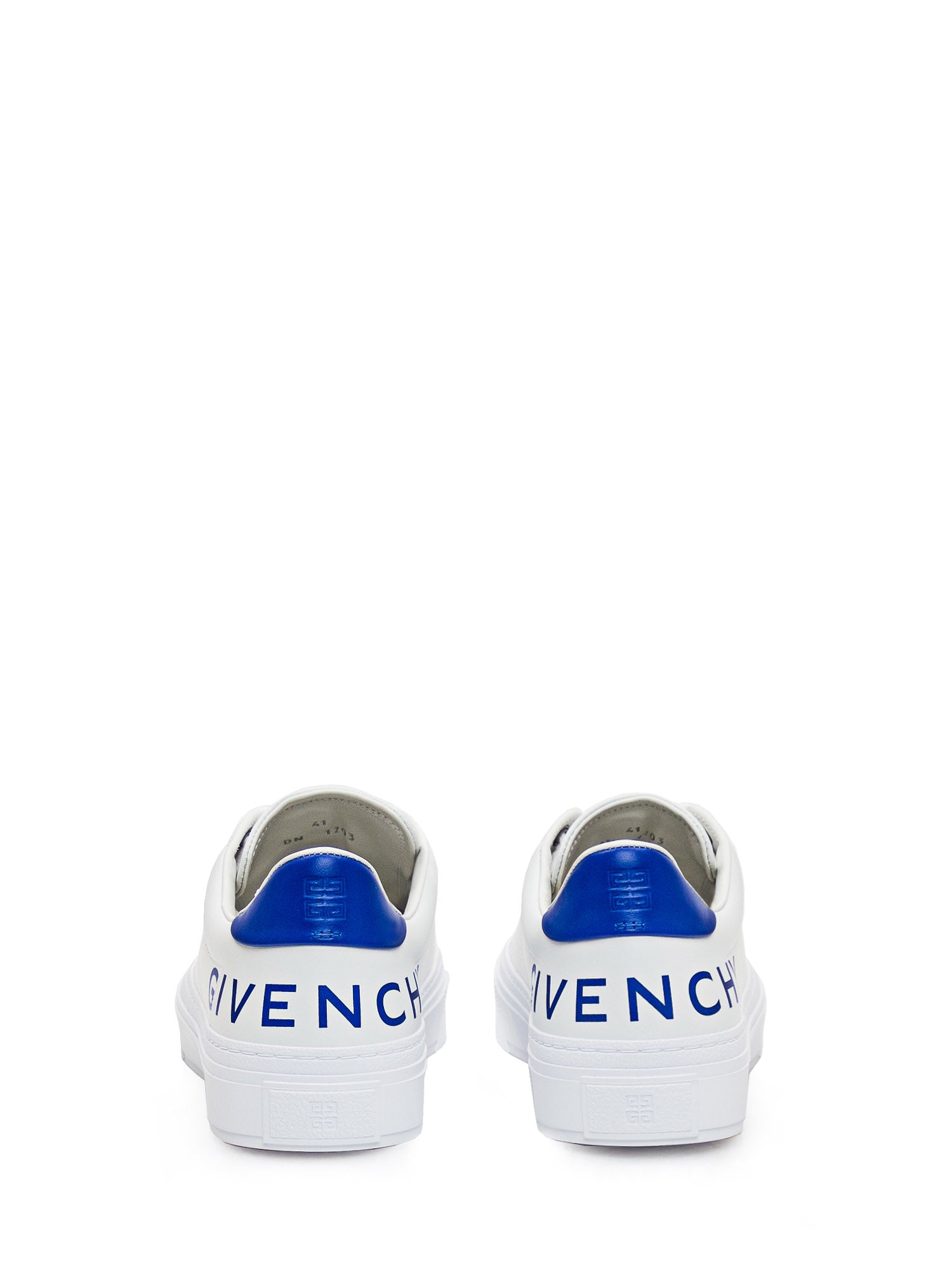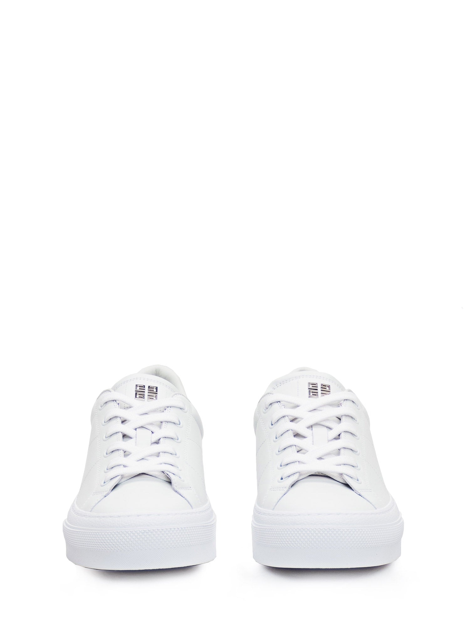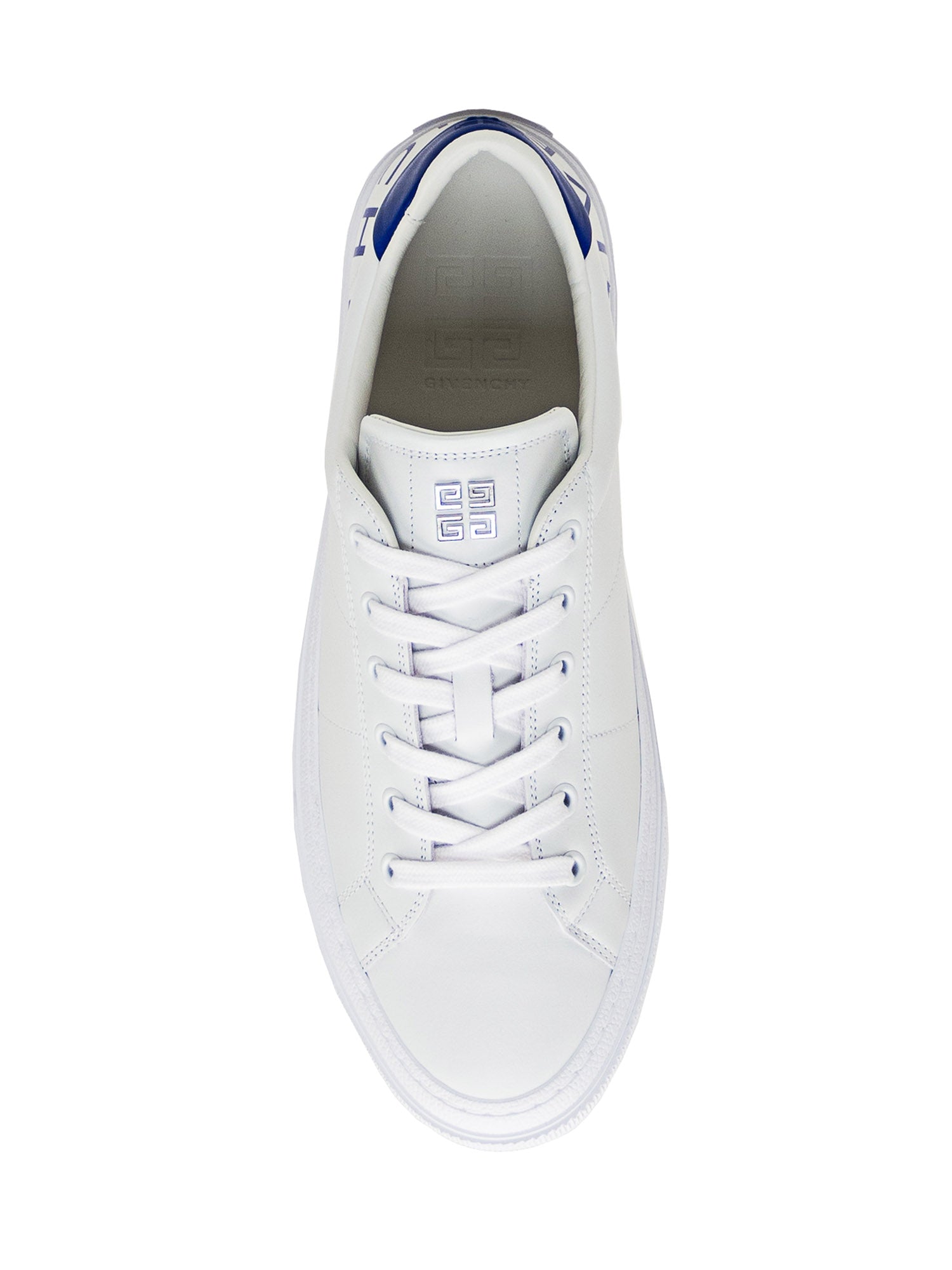 Sneaker bianca in pelle. Chiusura con lacci. Lettering sul tallone a contrasto. Logo 4G su linguetta e tallone.