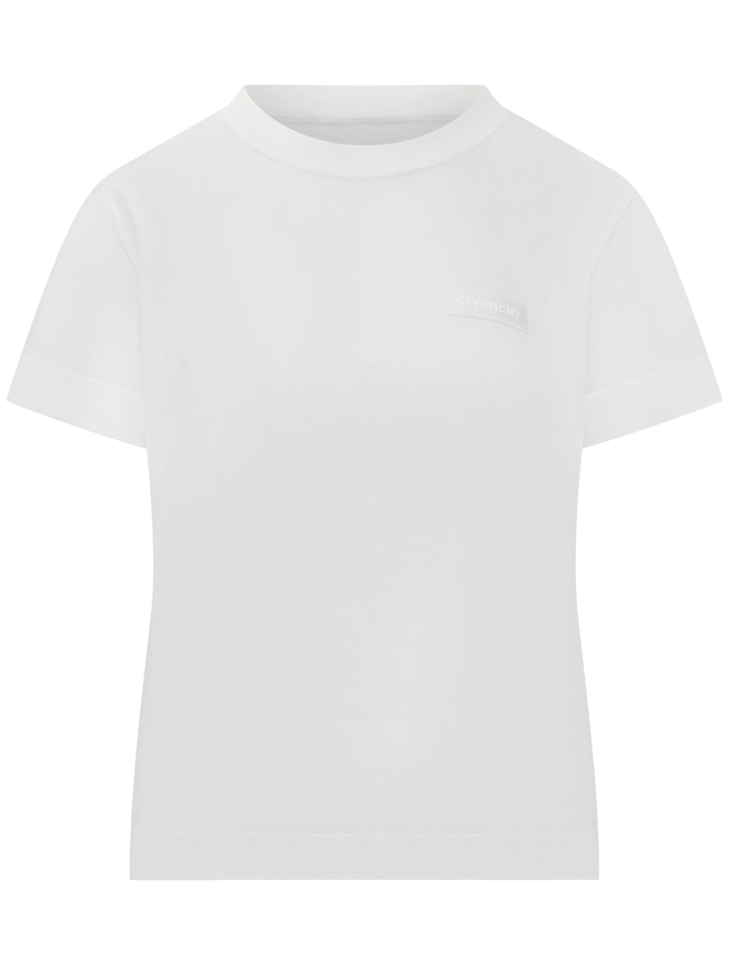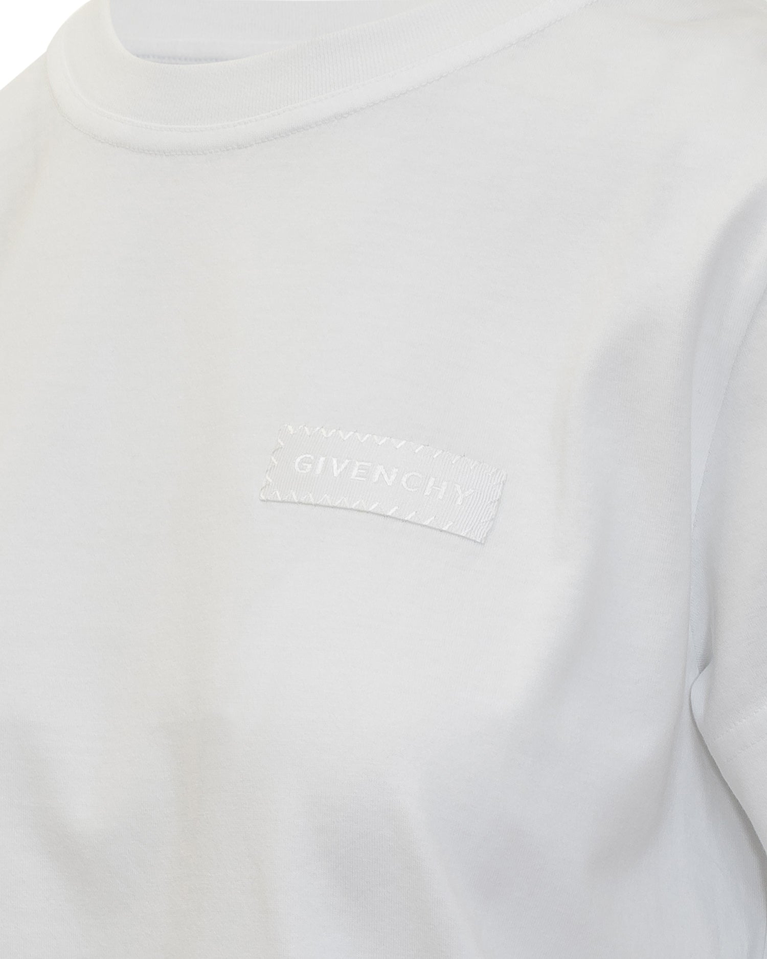 T-shirt bianca Givenchy in cotone con logo tono su tono sul petto. Linea essenziale e fit regular.