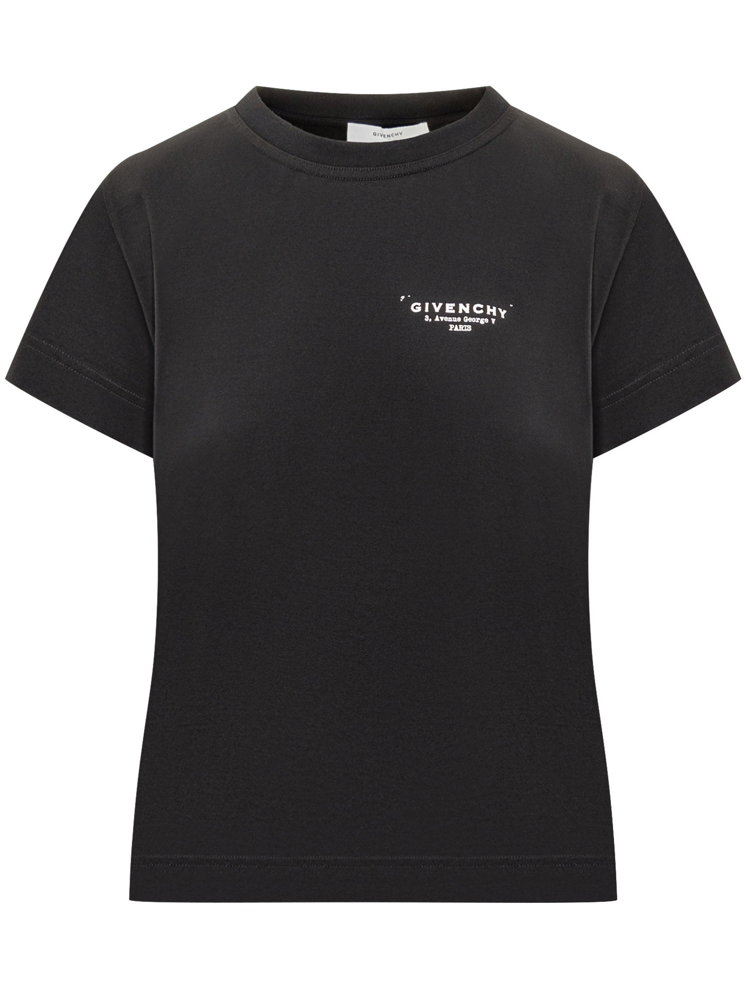 T-shirt nera Givenchy in puro cotone con stampa logo sul petto.