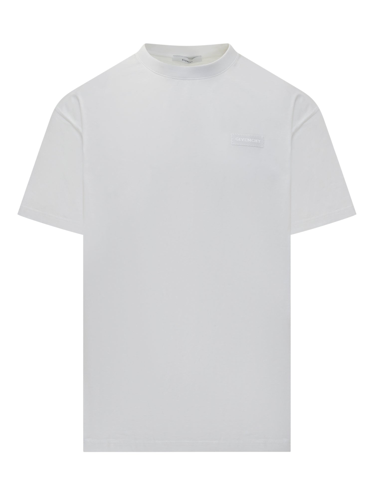 T-shirt Givenchy bianca in cotone con logo tono su tono sul petto.