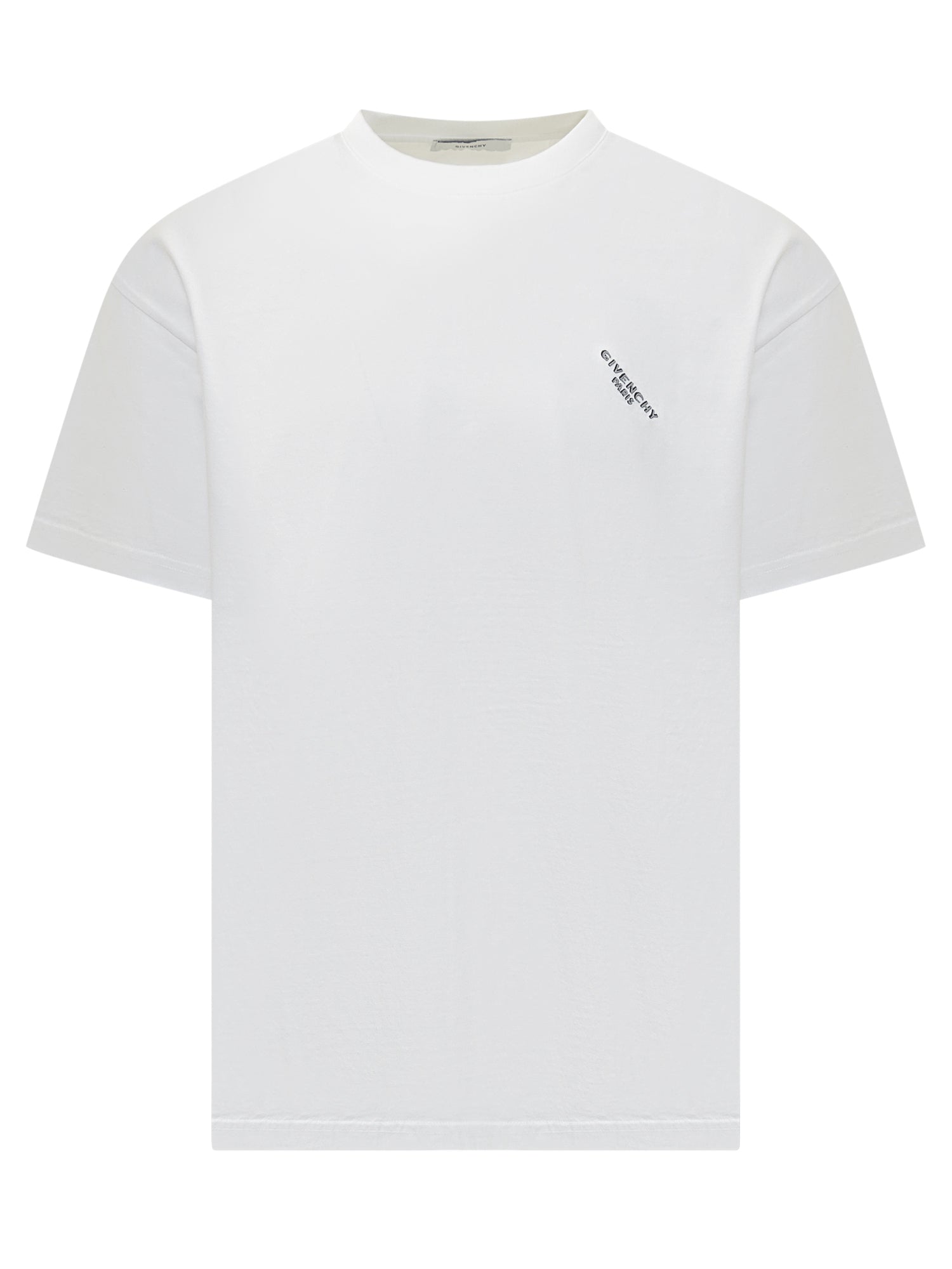 T-shirt Givenchy bianca in cotone con logo obliquo stampato sul petto.