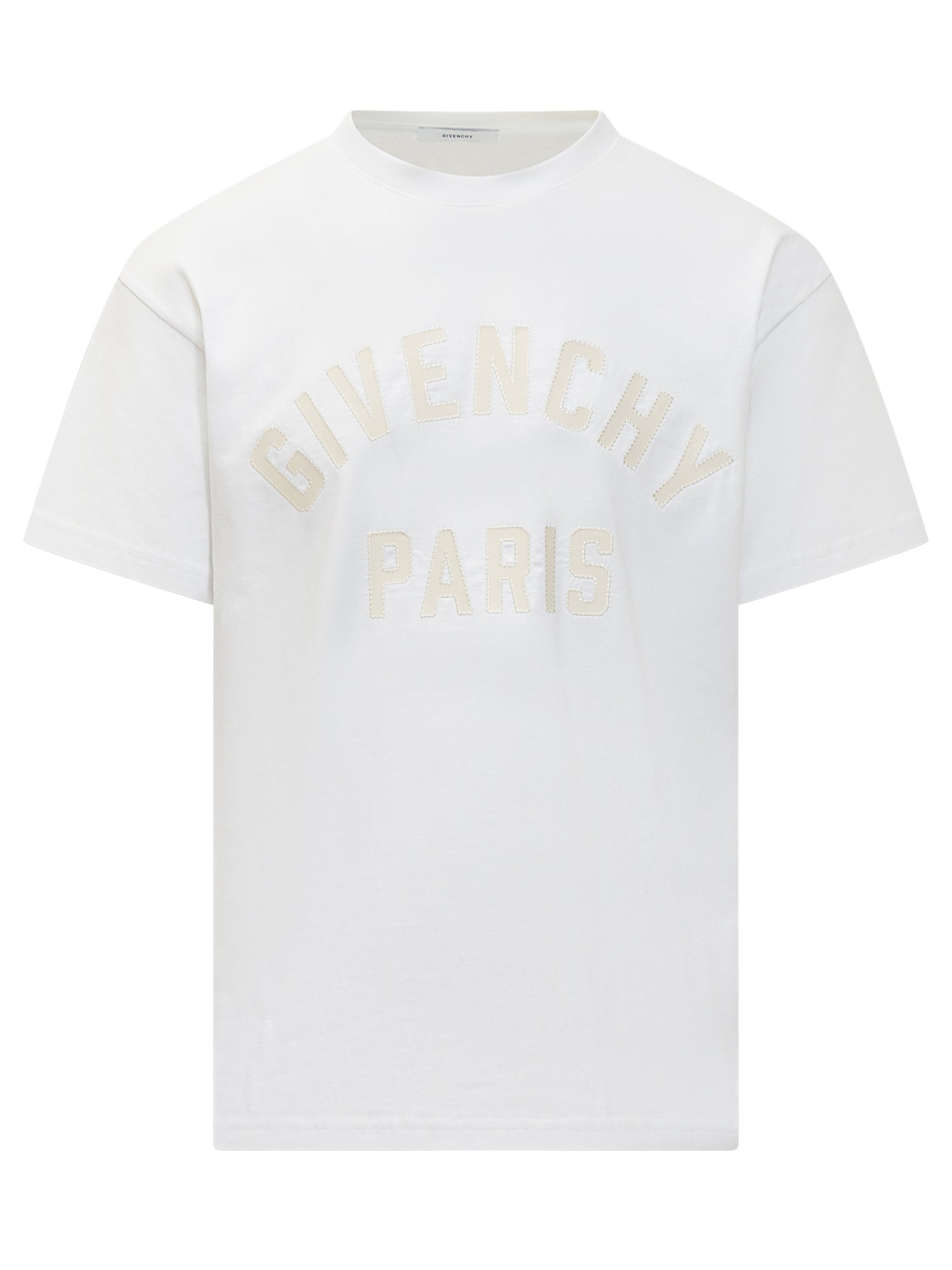 T-shirt Givenchy bianca in cotone con logo applicato in rilievo tono su tono.