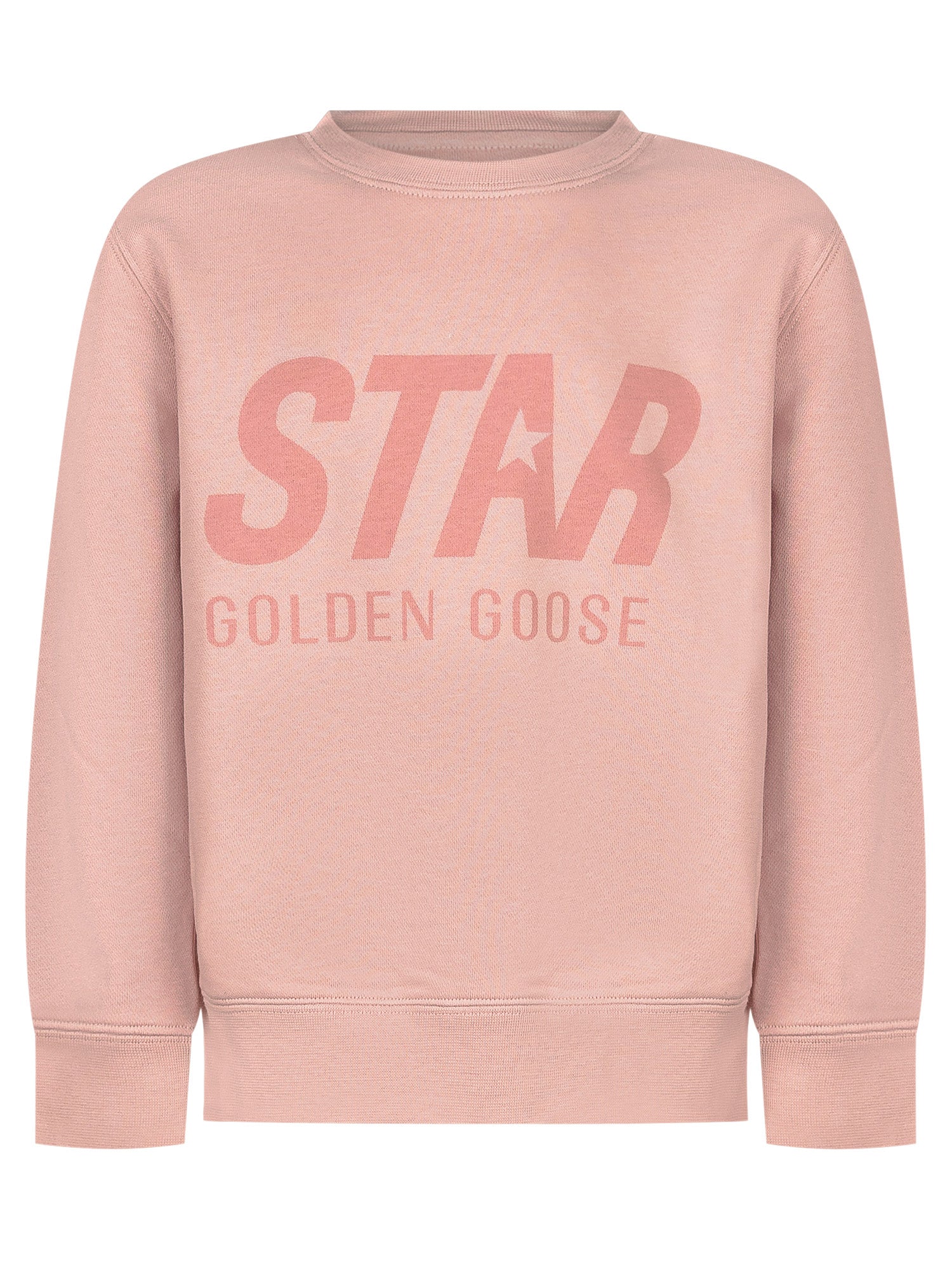 Felpa Golden Goose da bambina in cotone rosa con stampa frontale STAR.