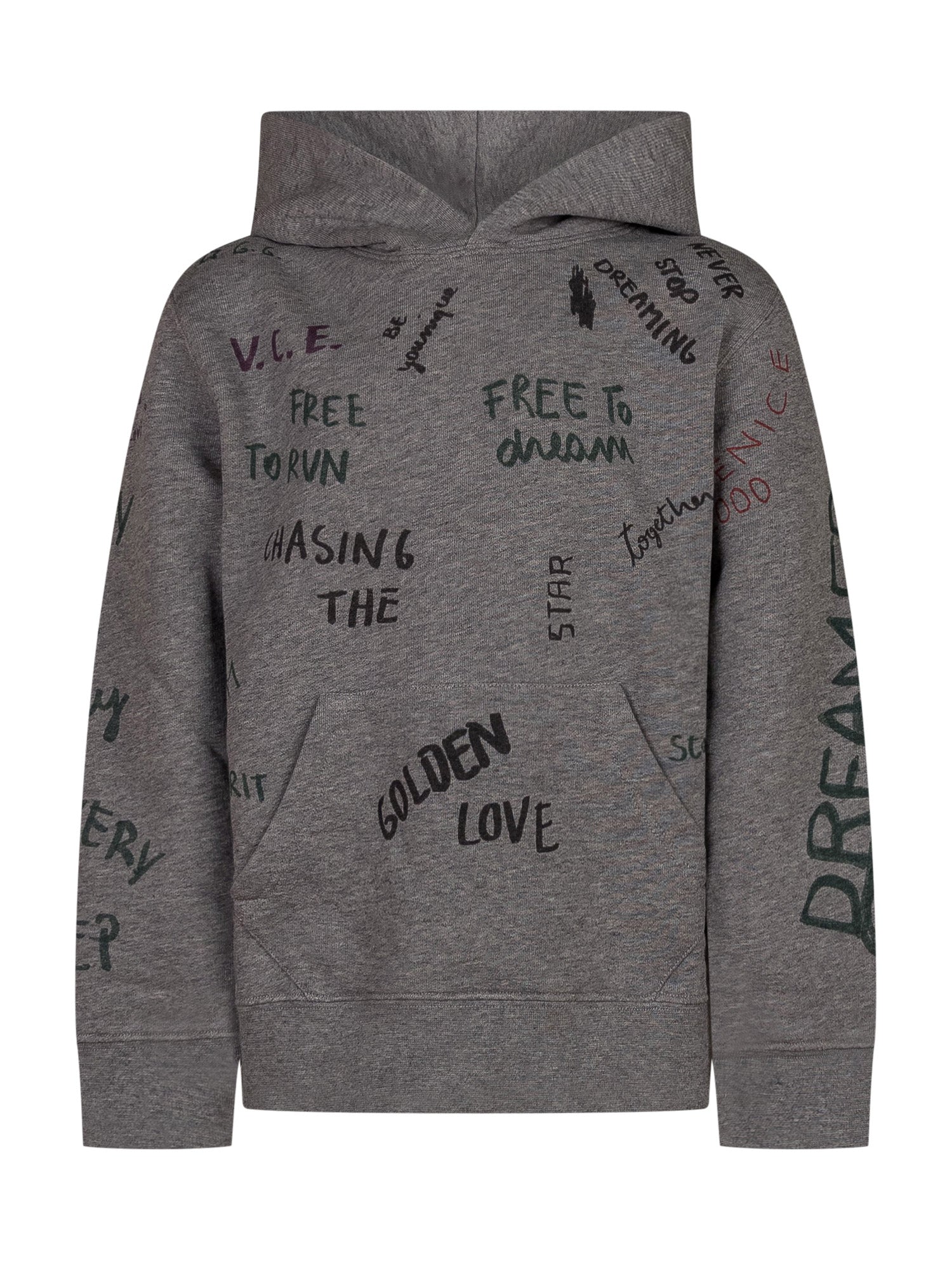 Felpa con cappuccio Golden Goose da bambino in cotone grigio con scritte multicolor.