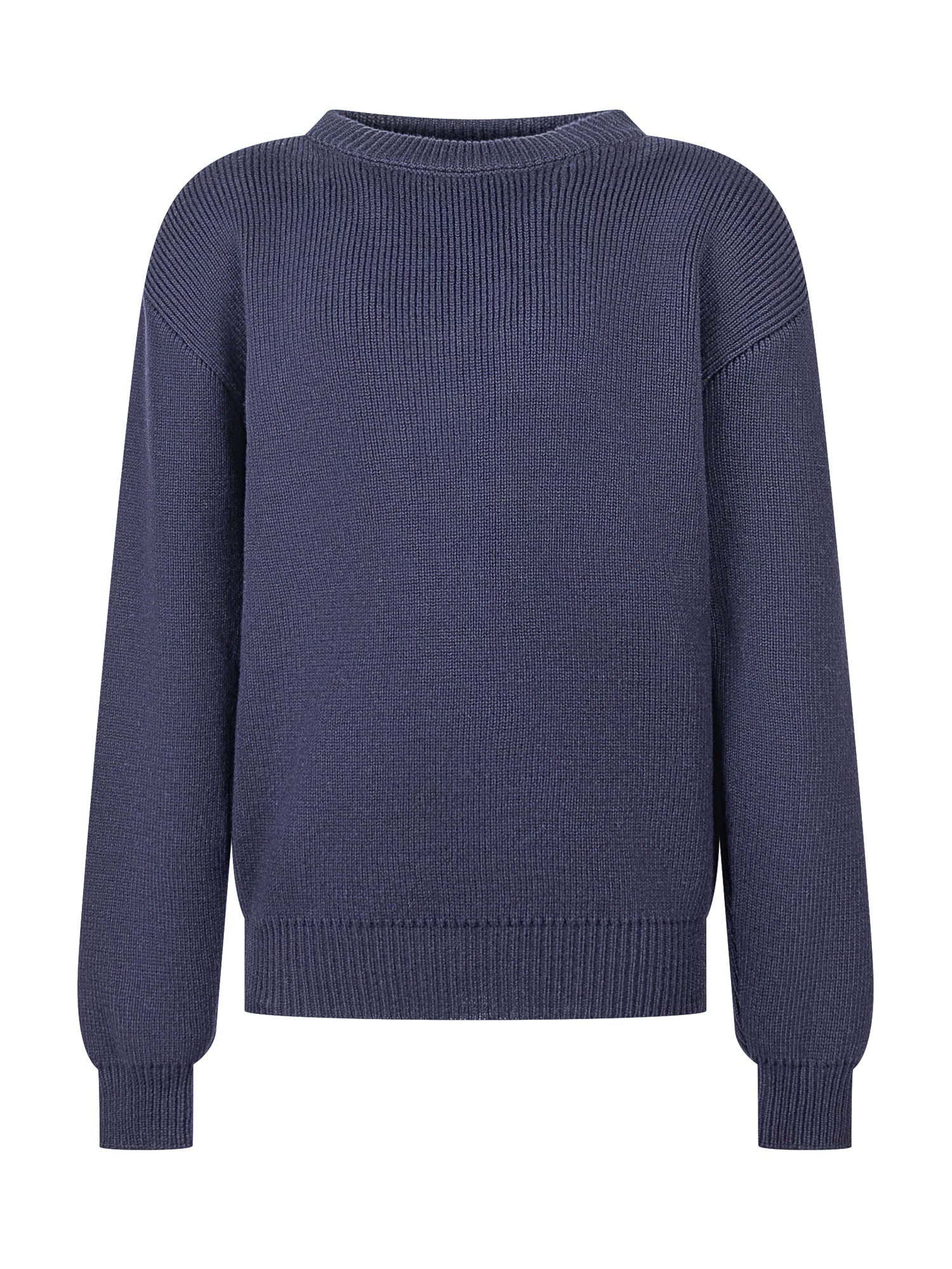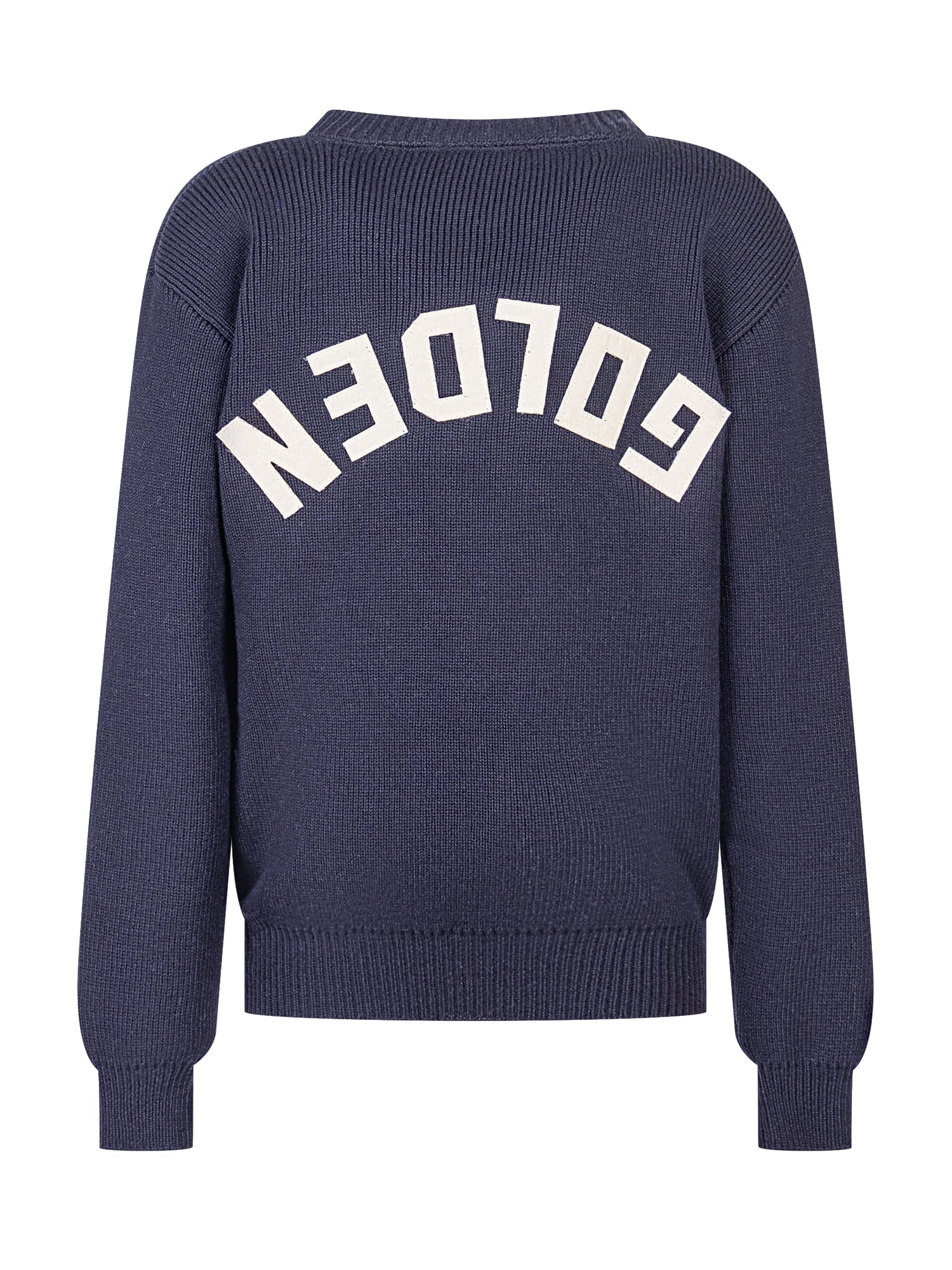 Maglione girocollo in cotone blu per bambini Golden Goose, con scritta Golden a contrasto sul retro.