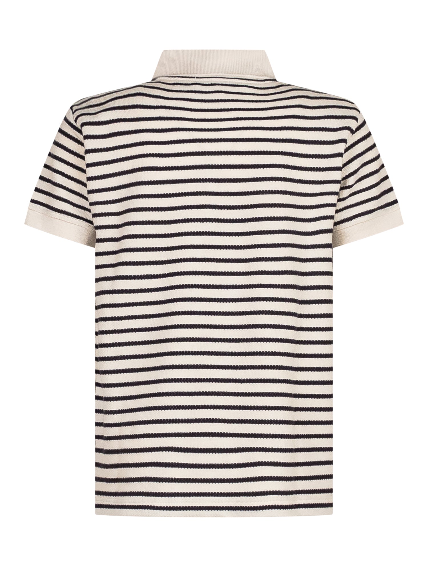Polo Golden Goose da bambino in cotone a righe beige e blu navy con colletto a contrasto e logo ricamato.