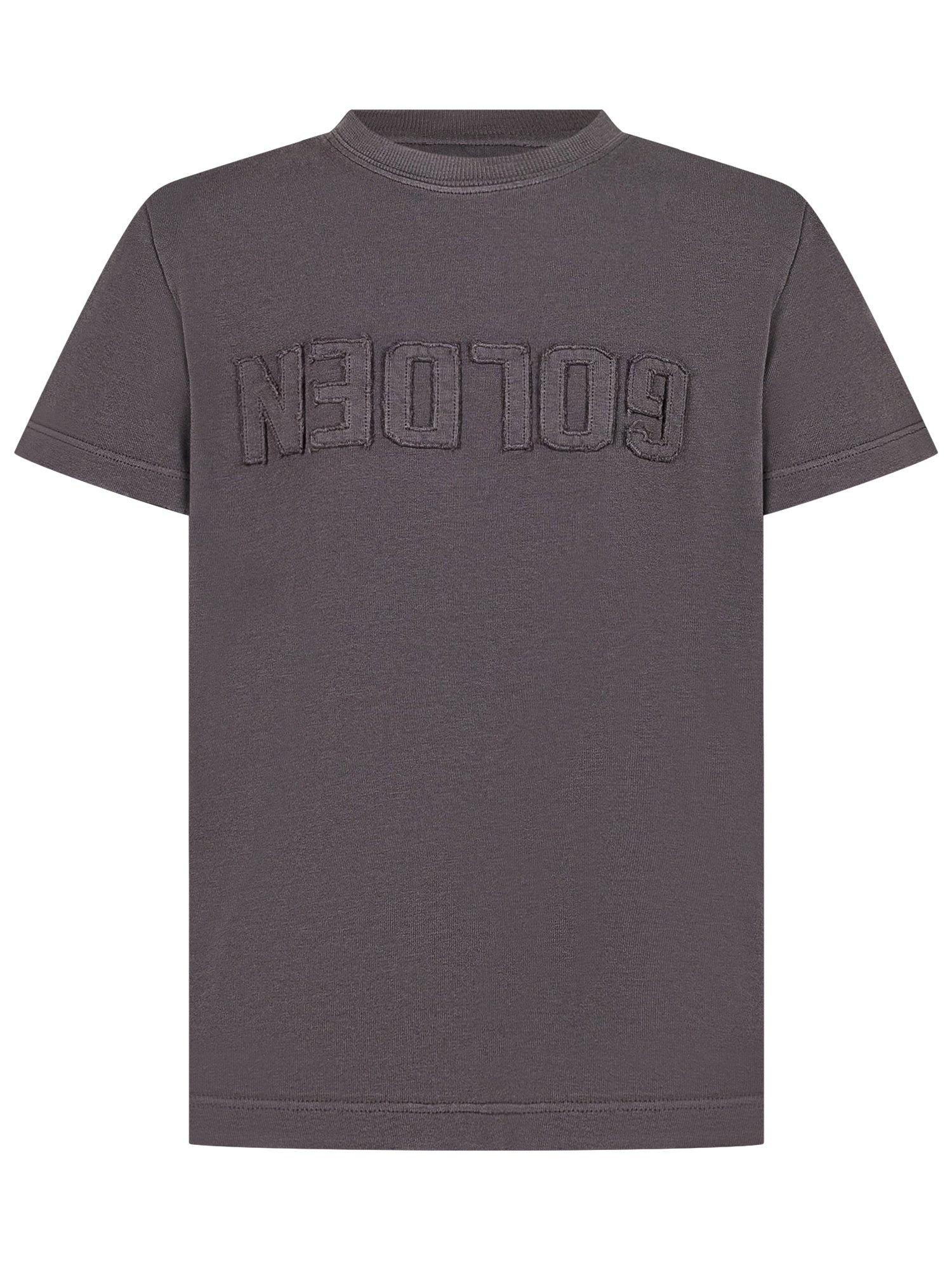 T-shirt Golden Goose grigio scuro con scritta GOLDEN in rilievo tono su tono.
