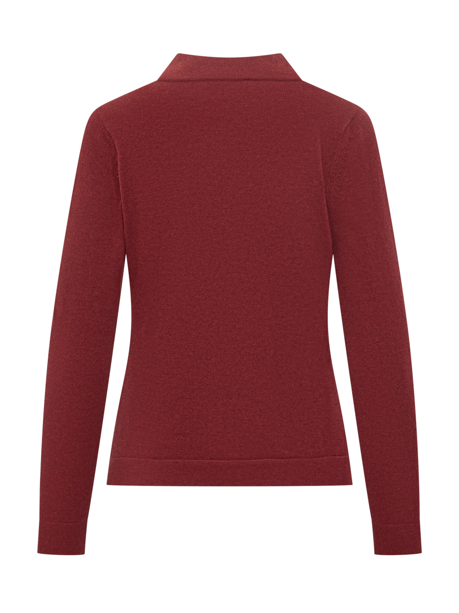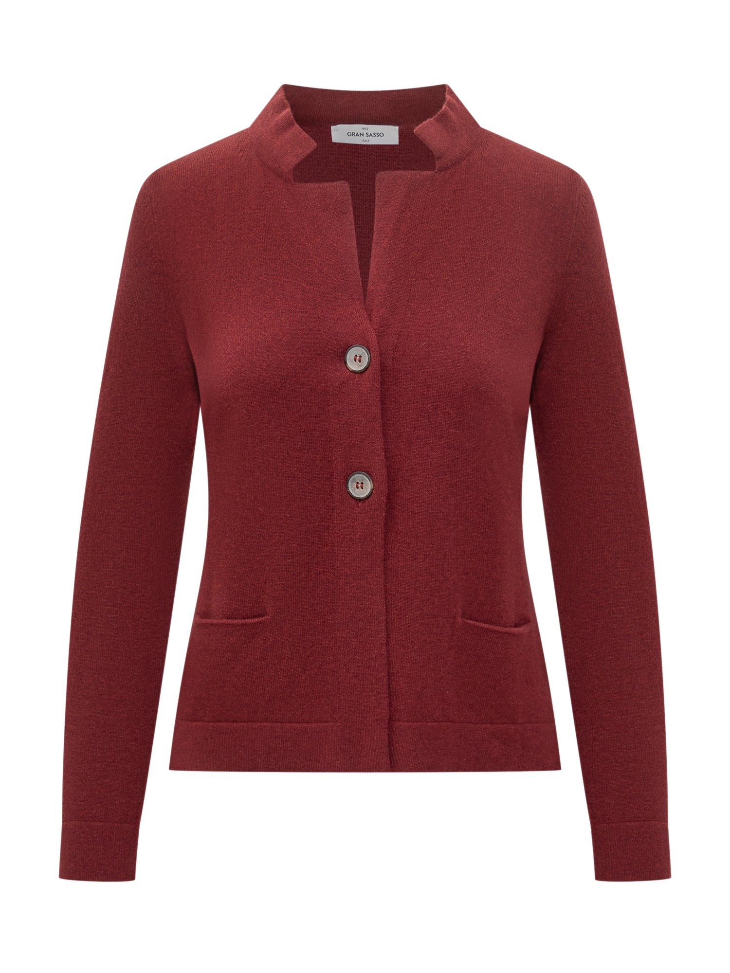 Cardigan Gran Sasso in maglia rossa con collo a listino, chiusura a due bottoni e tasche frontali.