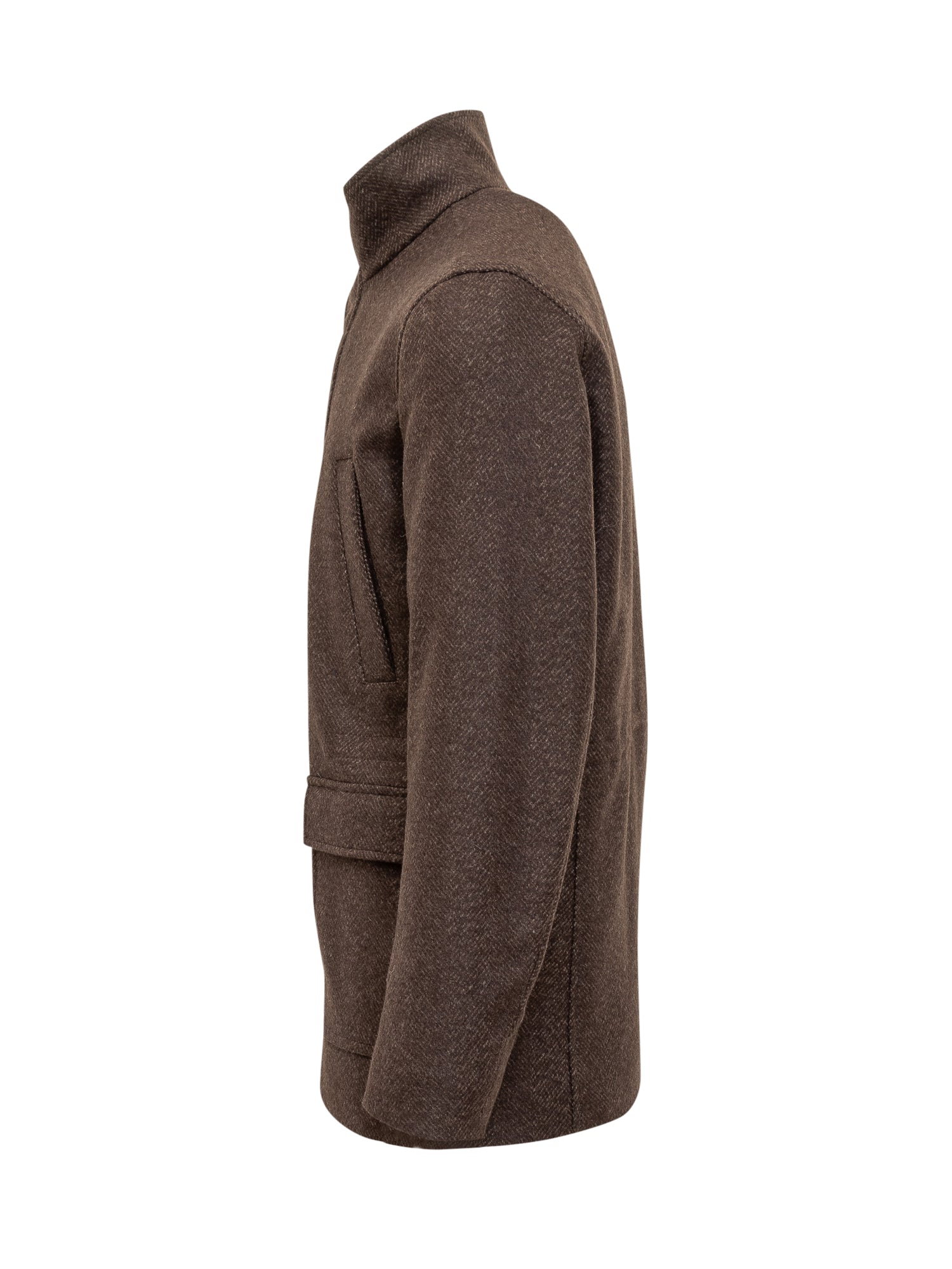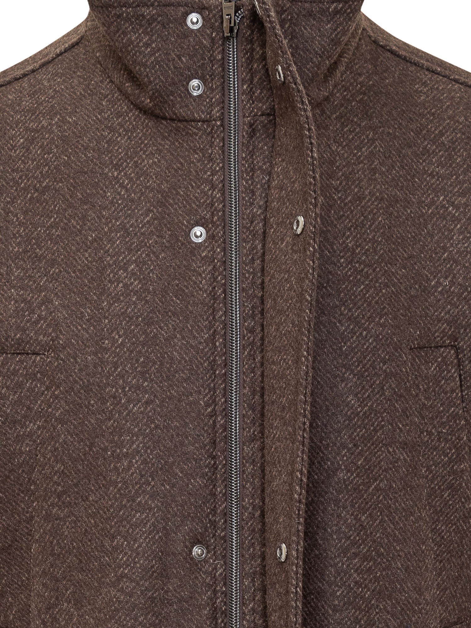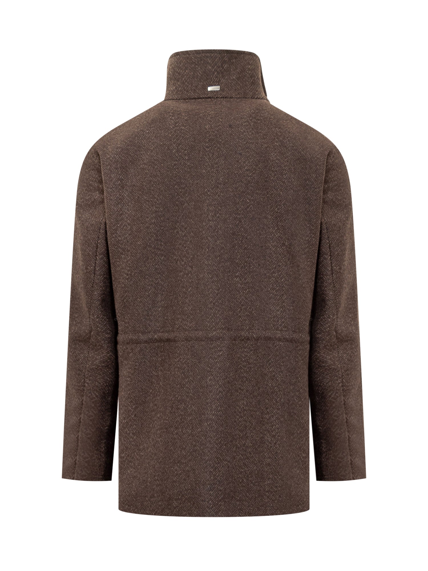Giacca Herno in lana marrone con chiusura a zip coperta e tasche frontali con patta.
