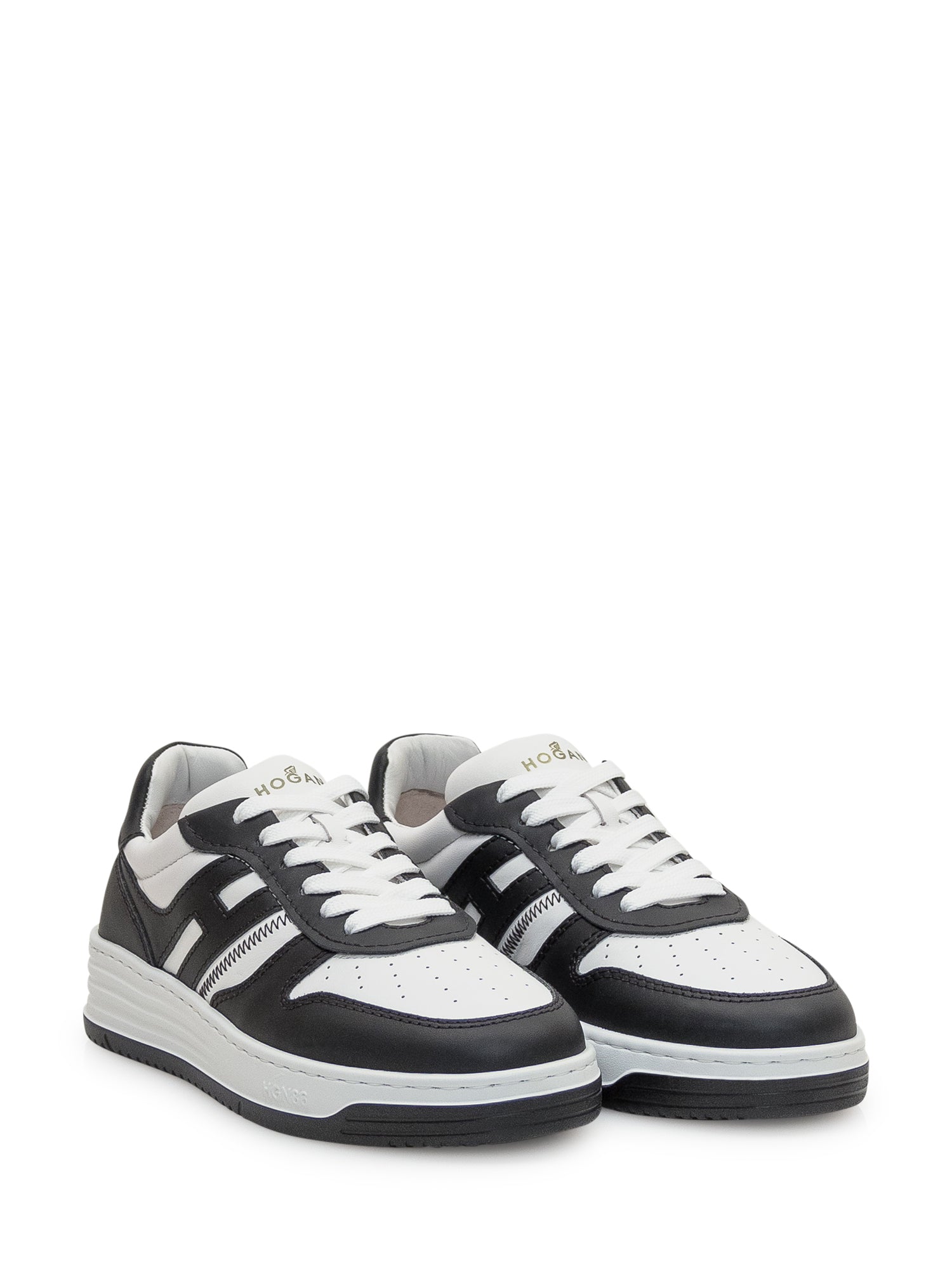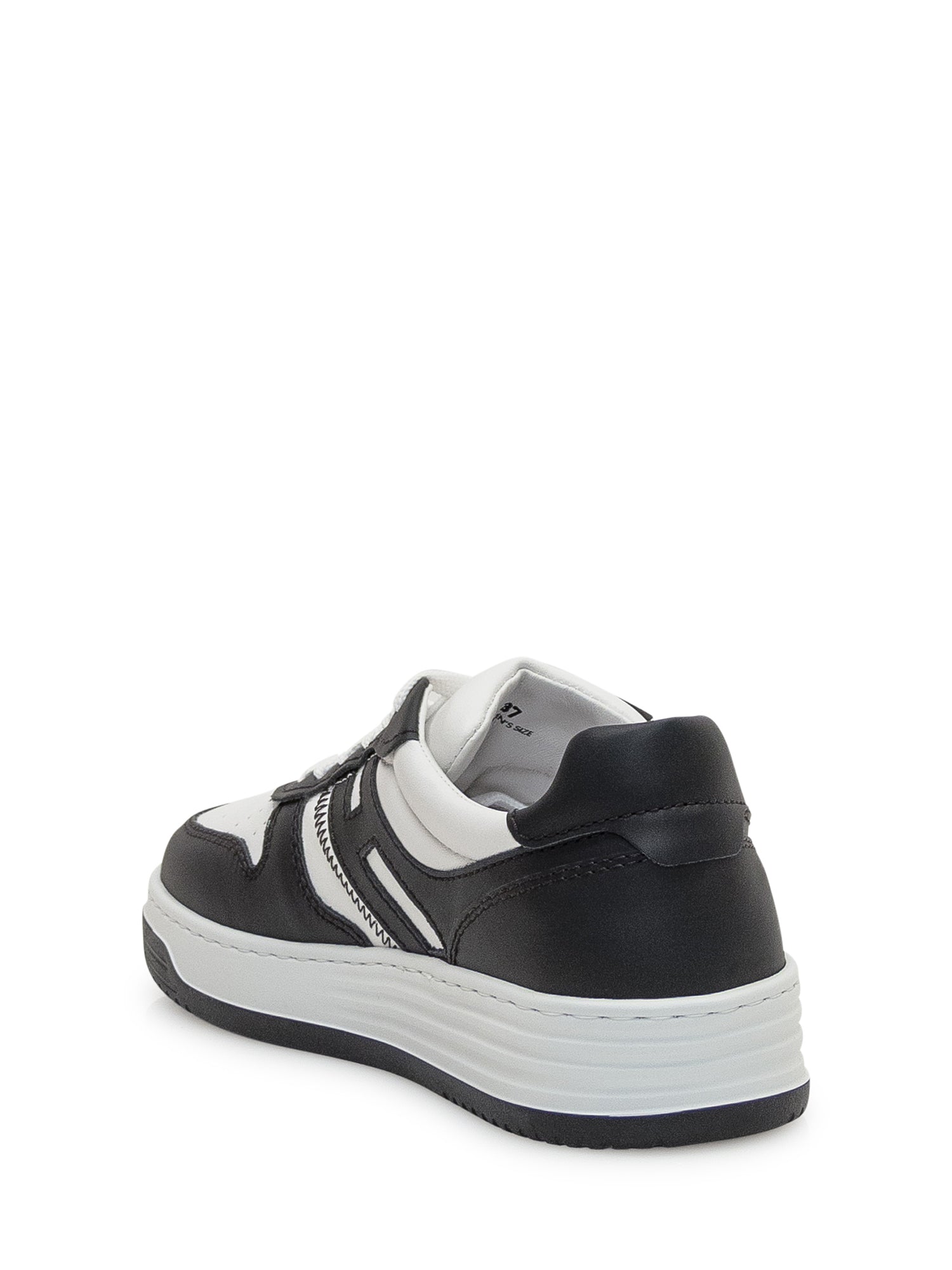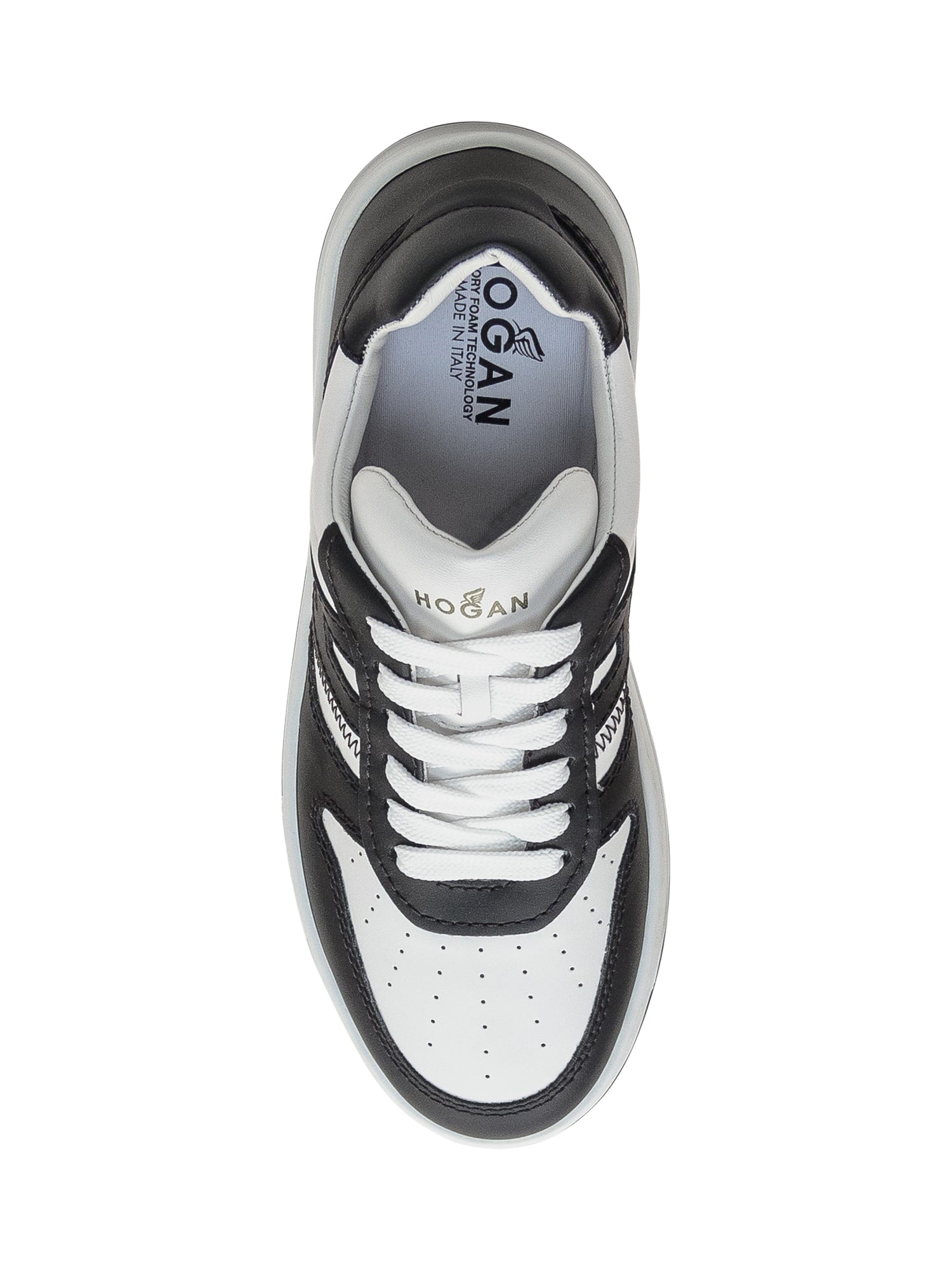Sneaker bianca e nera in pelle.Tomaia in pelle liscia e nappa. Logo nero laterale. Soletta in memory foam. Suola in gomma. Include un paio di lacci neri aggiuntivi.