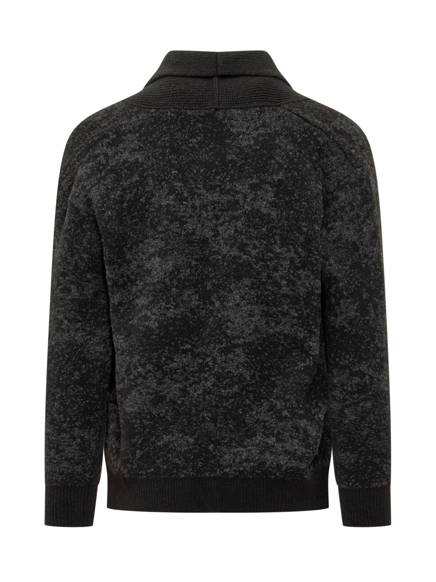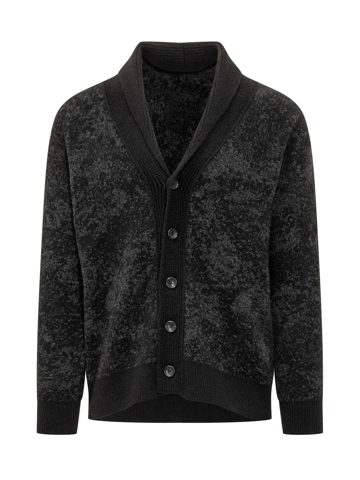 Cardigan Hosio in lana nera effetto mélange, con collo sciallato e chiusura a bottoni.