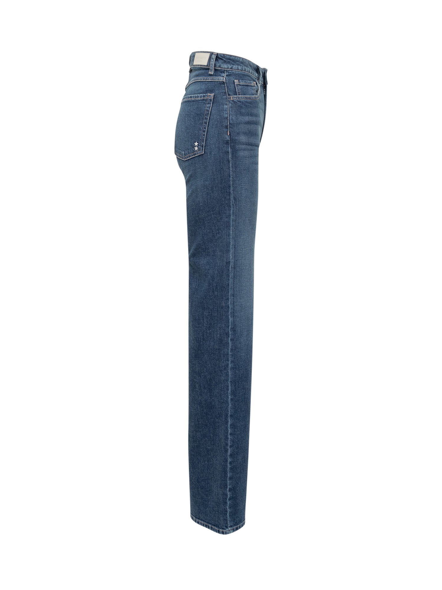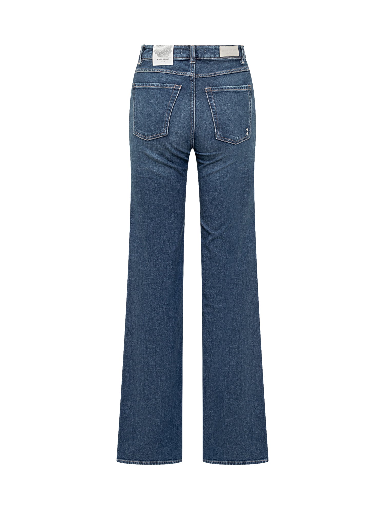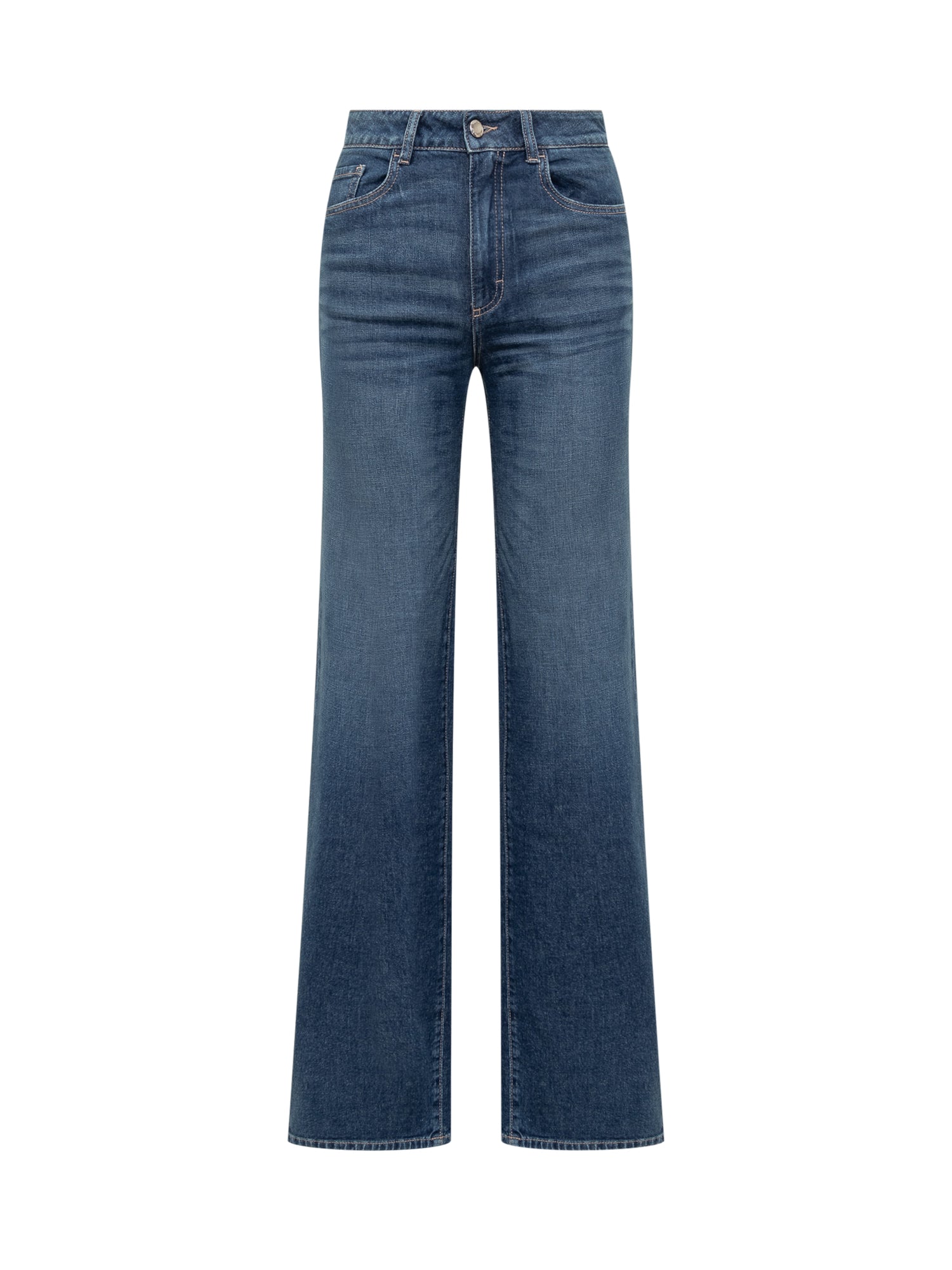 Jeans Icon Denim Joia in denim blu con lavaggio sfumato e linea svasata. Vita alta e chiusura con bottone e zip.