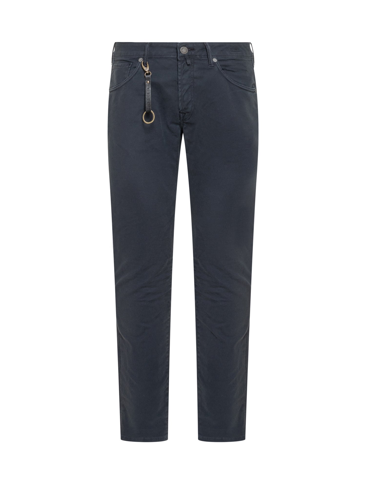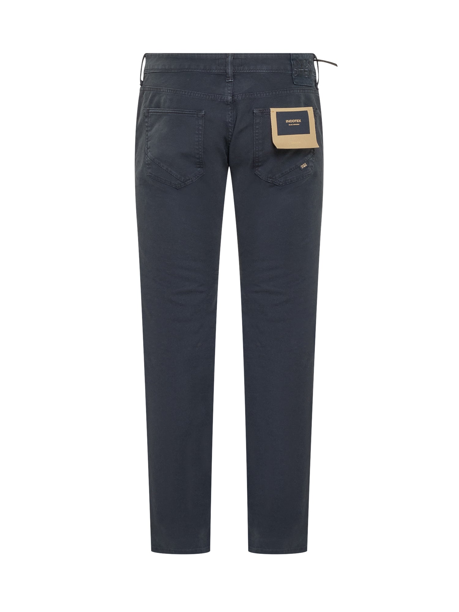 Pantaloni lunghi. Chiusura con bottoni. Passanti per cintura. Cinque tasche.