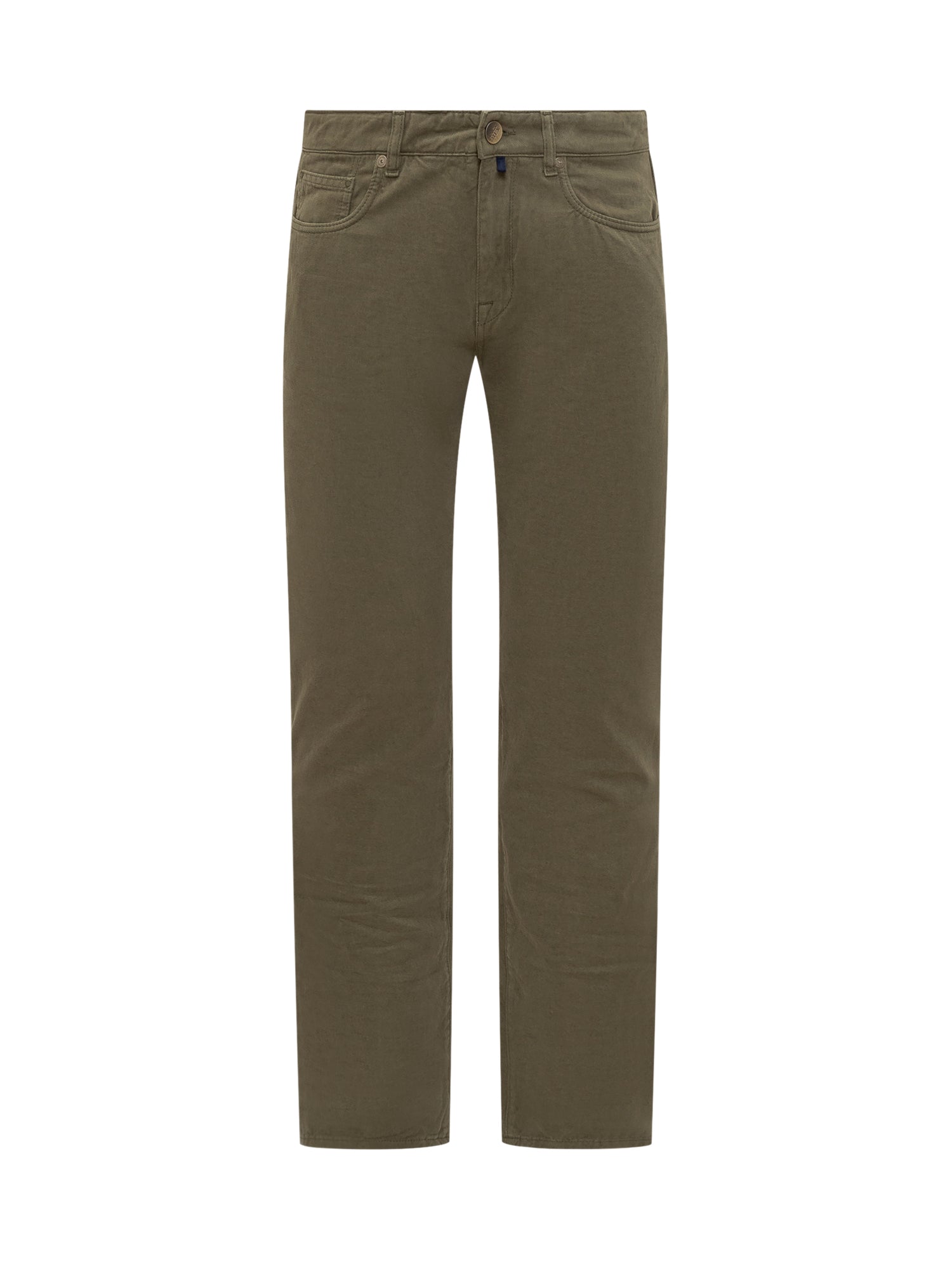 Jeans Incotex in cotone verde militare con vestibilità regolare e design a cinque tasche. Chiusura con bottone e zip.