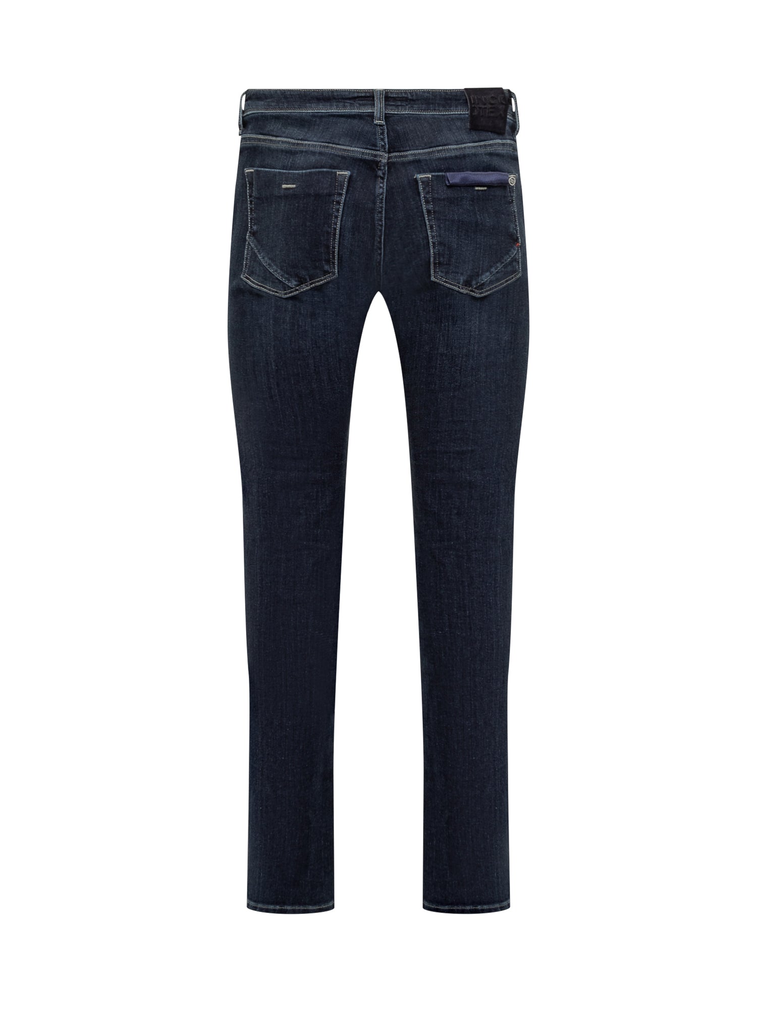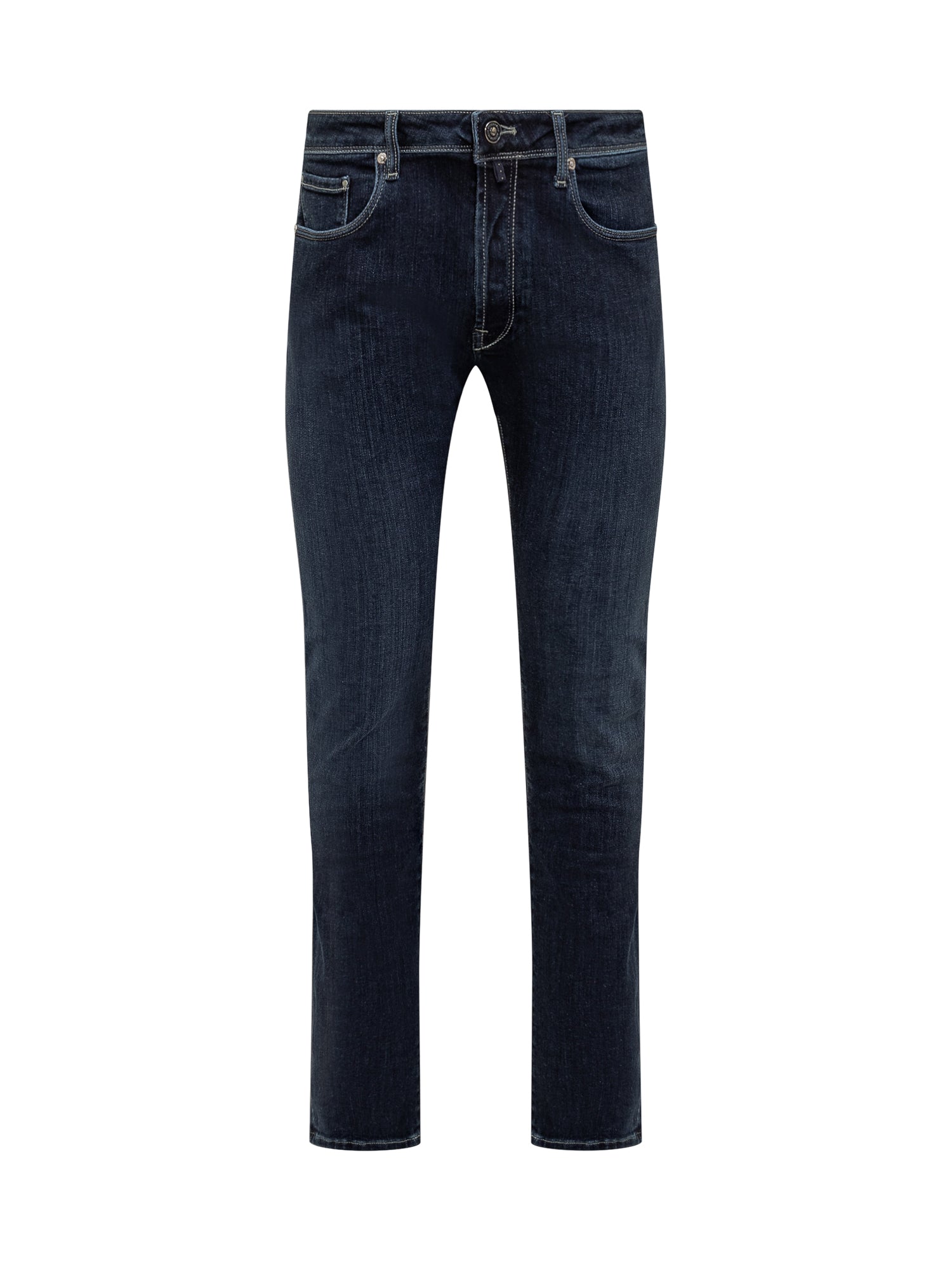 Jeans straight fit. Chiusura con bottoni. Passanti per cintura. Cinque tasche.