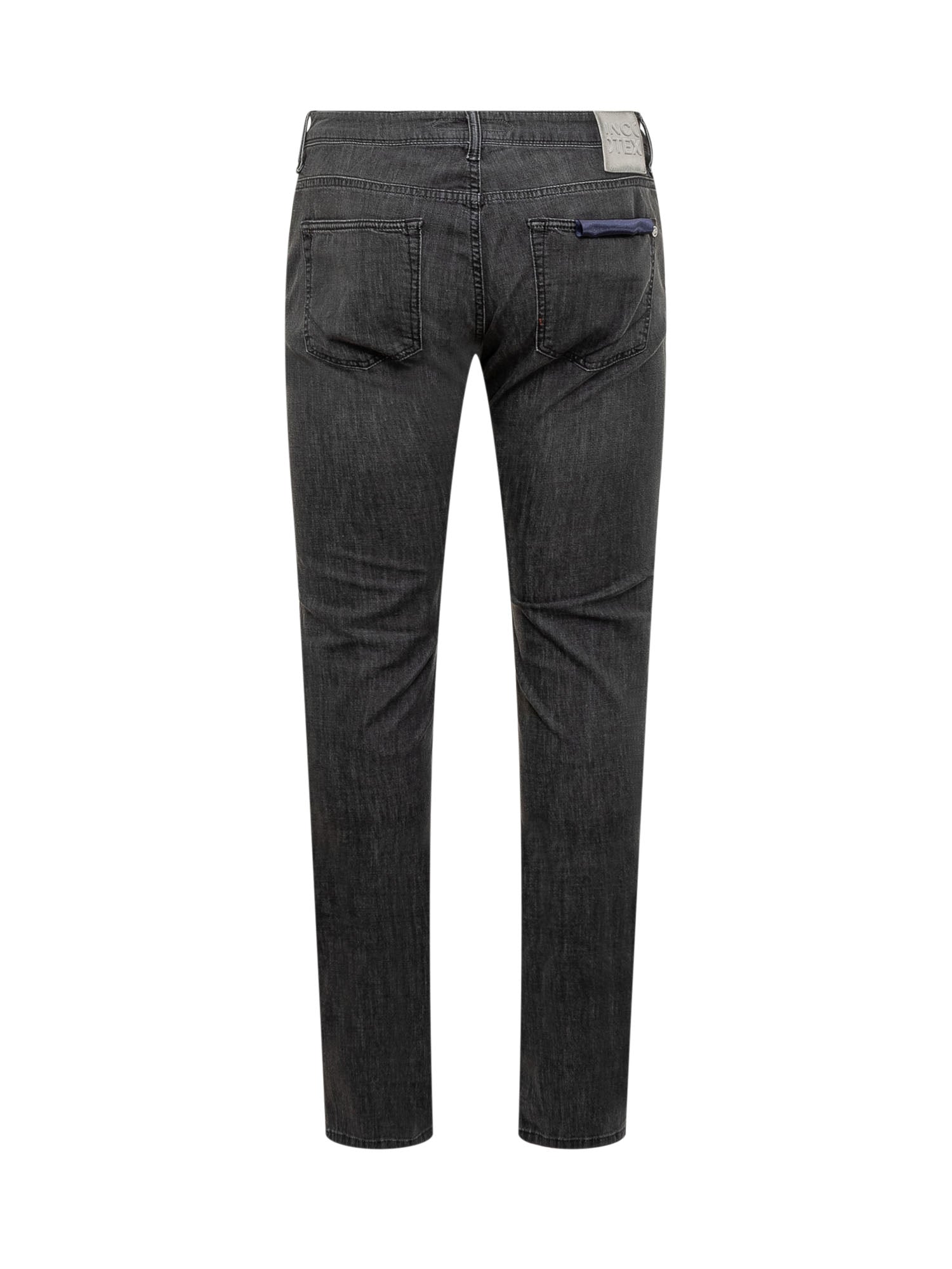 Pantalone lungo nero. Cinque tasche. Chiusura con bottoni. Passanti per cintura. Gamba dritta.