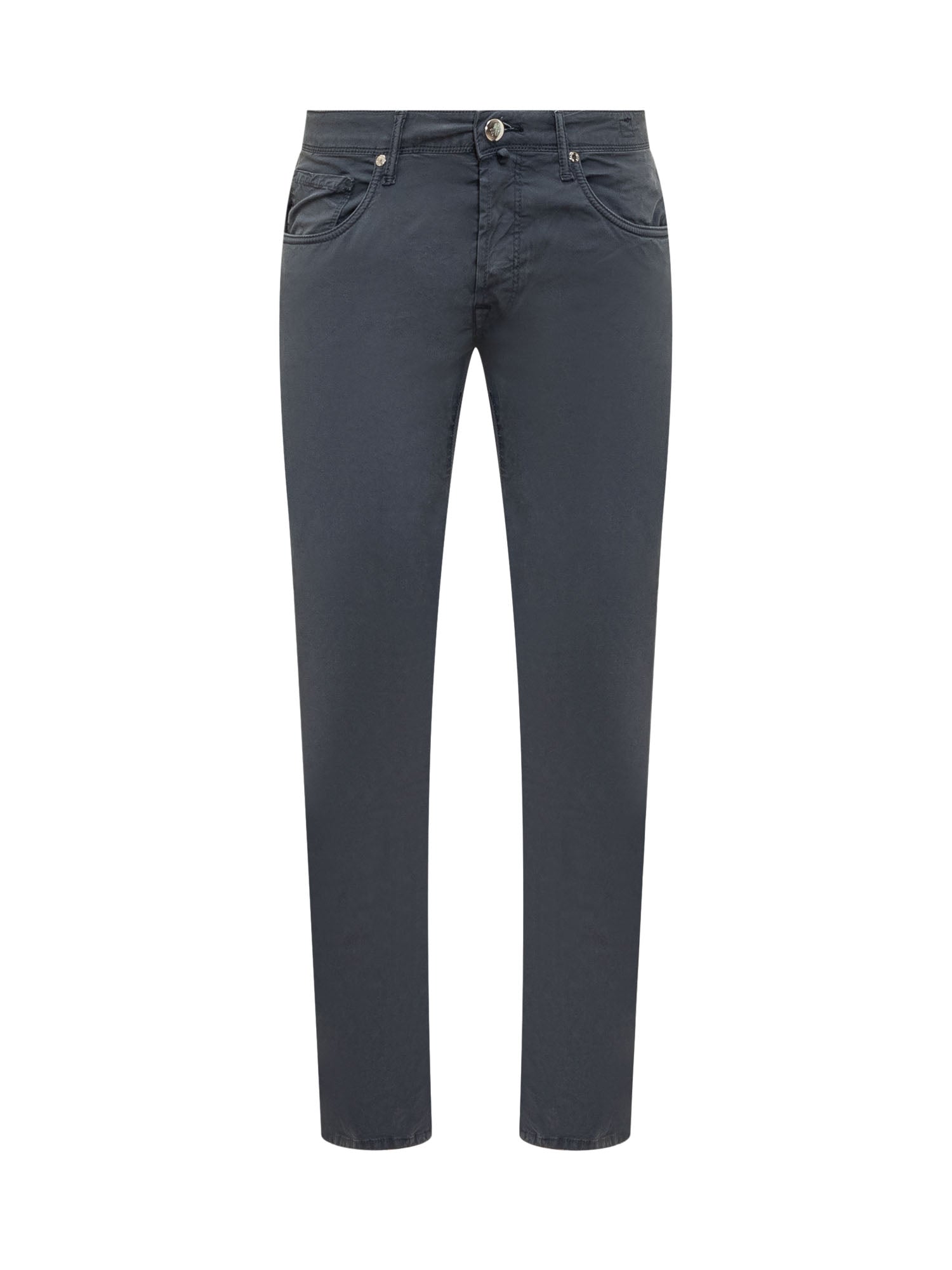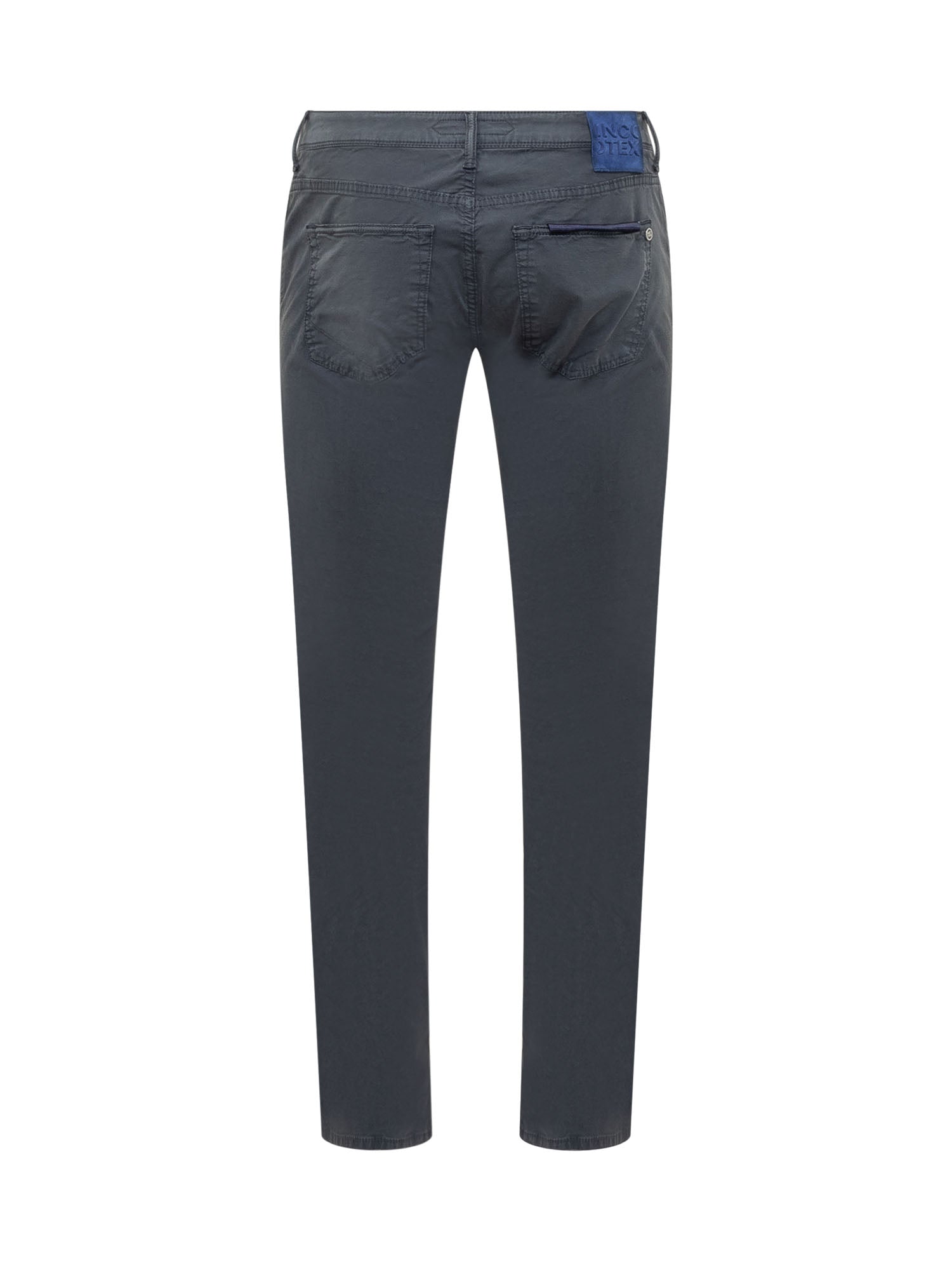 Pantalone lungo. Cinque tasche. Chiusura con bottoni. Passanti per cintura. Gamba dritta. Colore blu.