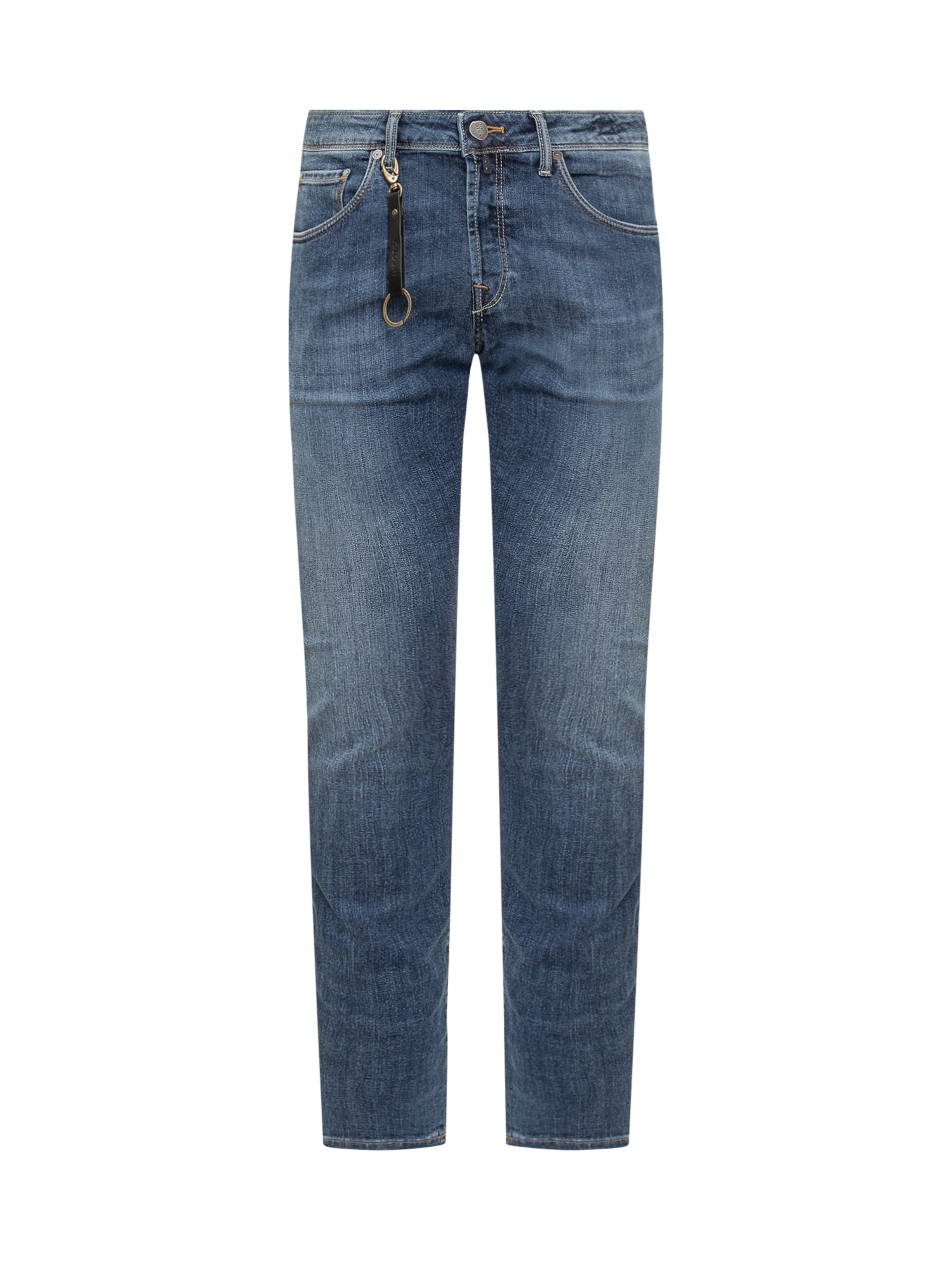 Pantaloni lunghi. Chiusura con bottone e zip. Cinque tasche. Passanti per cintura.