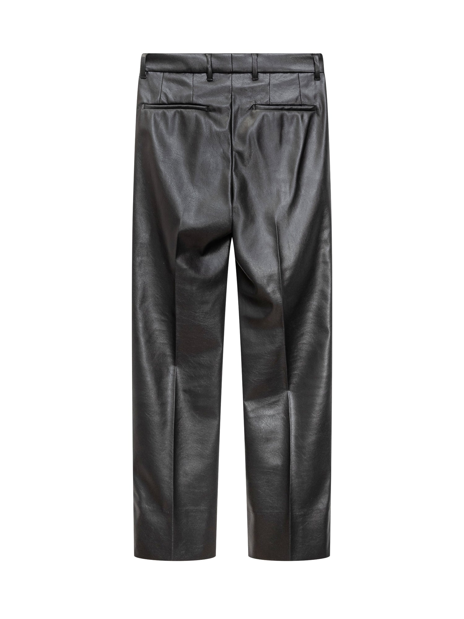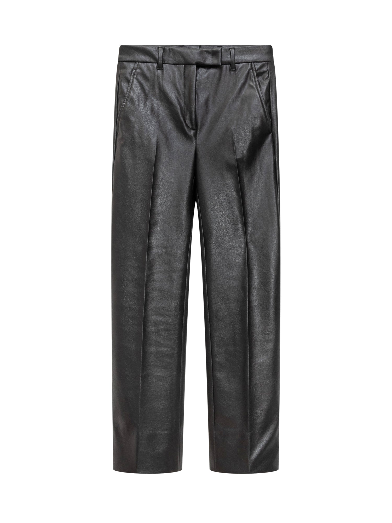 Pantaloni neri Incotex in pelle con vita alta e linea dritta.