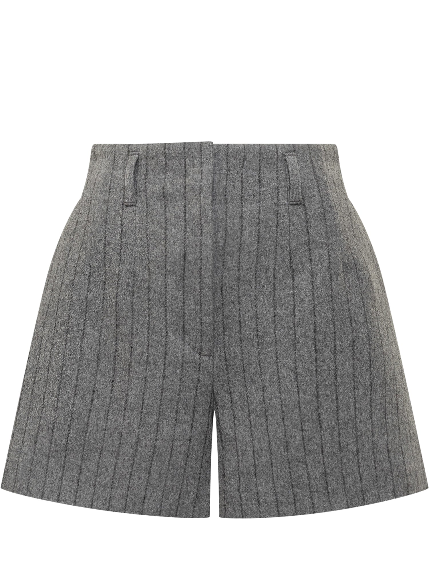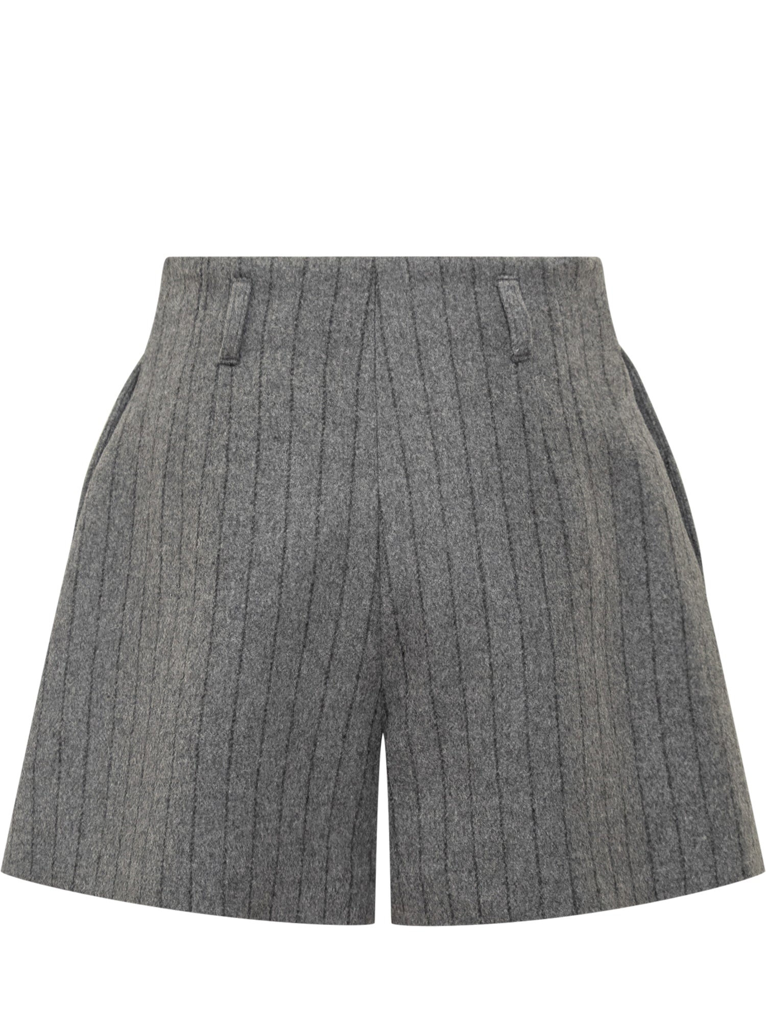 Shorts Iro da donna in lana grigia gessata con vita alta e taglio sartoriale.
