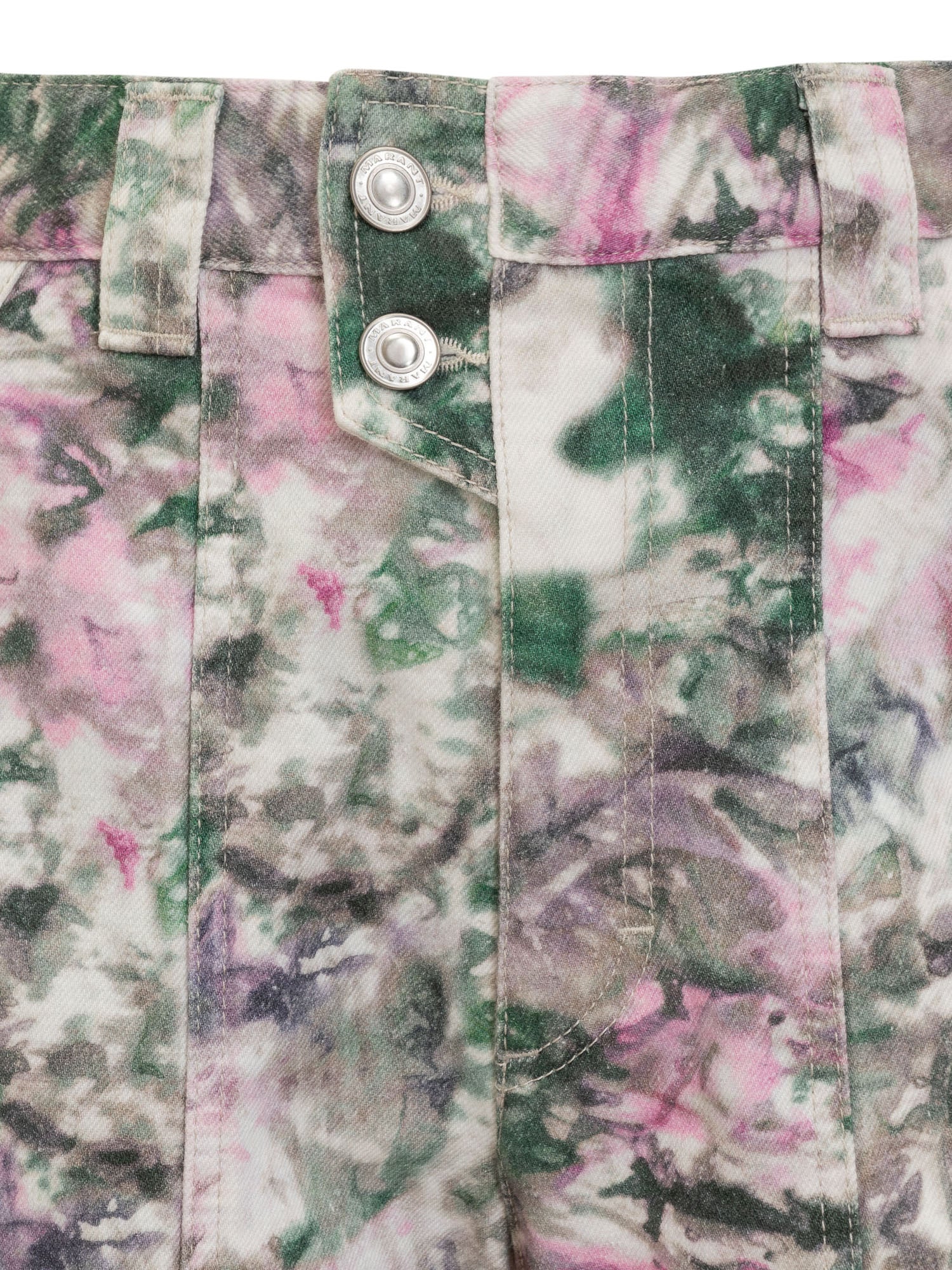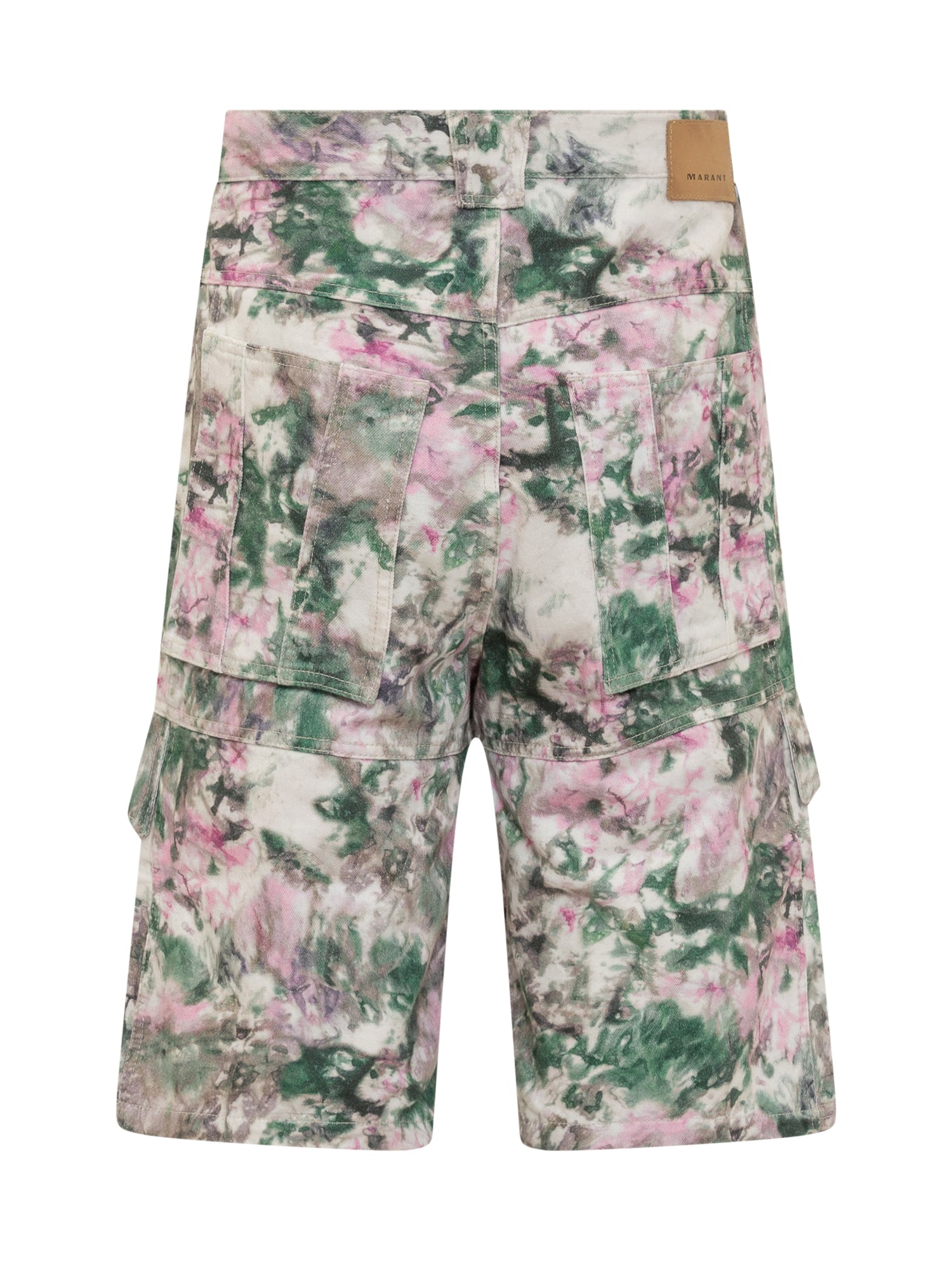 Chiusura con zip e bottoni. Quattro tasche laterali e due sul retro. Passanti per cintura. Motivo stampato all over.