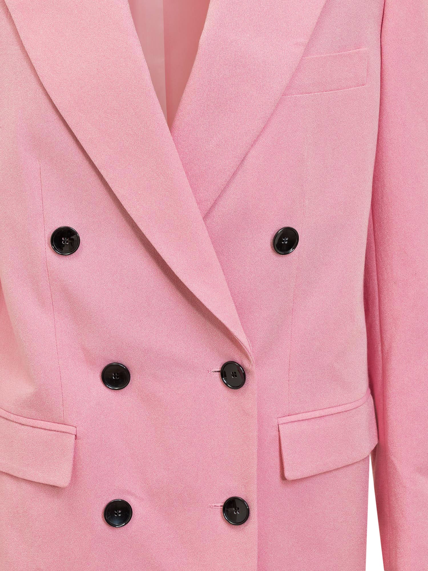 Giacca doppiopetto. Scollo a V classico. Chiusura con bottoni. Polsini con bottoni. Tre tasche. Spalle strutturate.