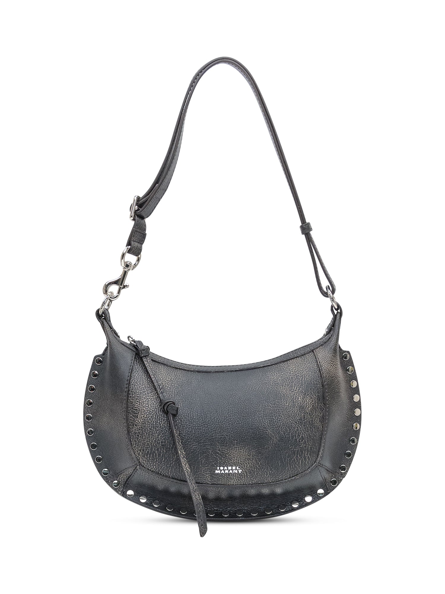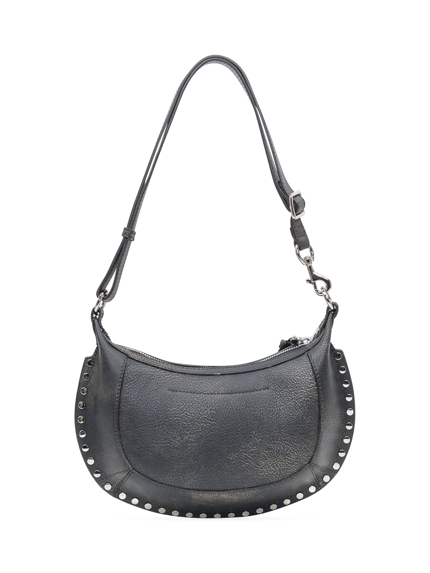 Borsa Oskan Moon-GD Isabel Marant in pelle effetto vintage nera, con borchie argentate lungo i bordi.