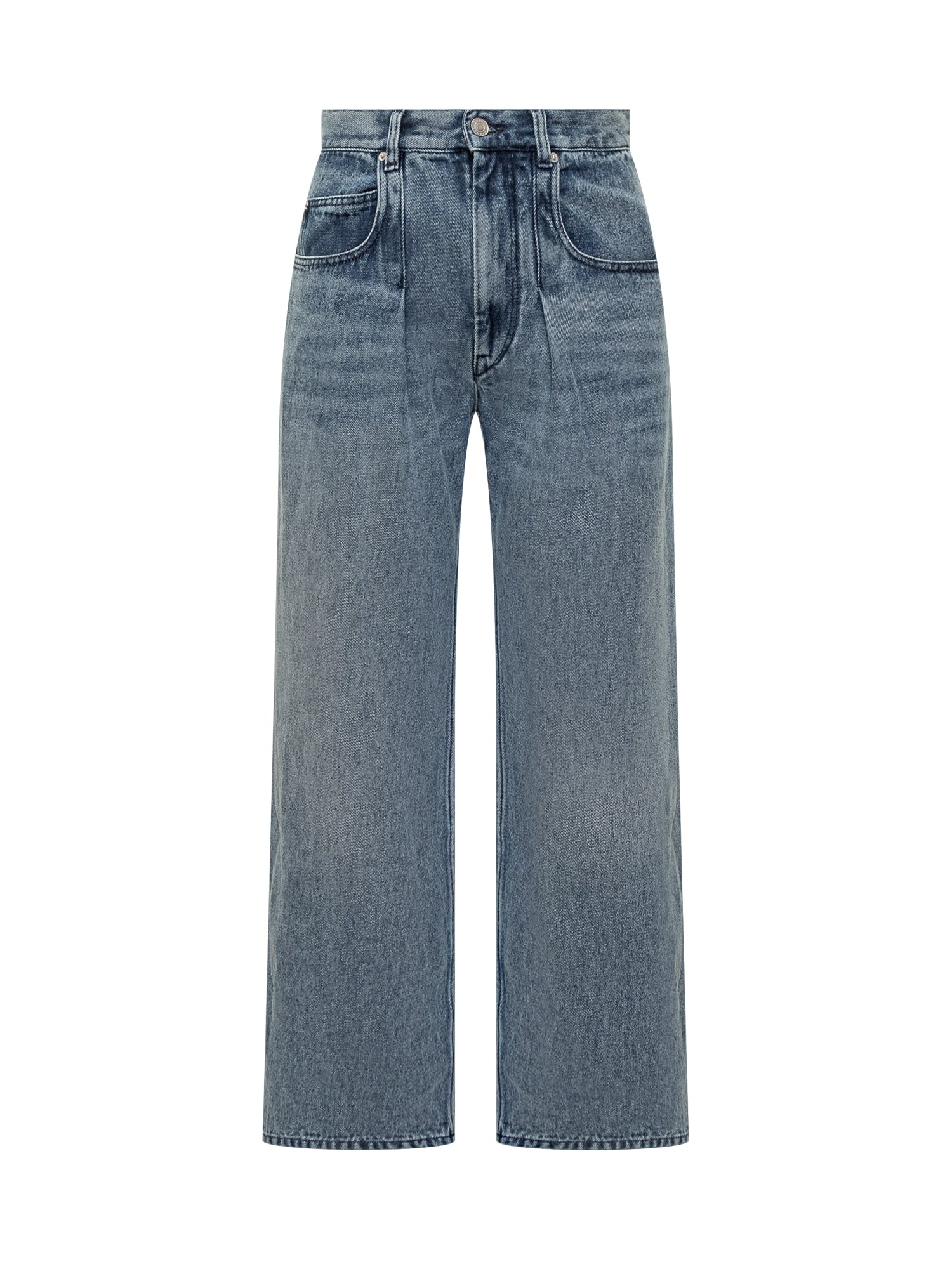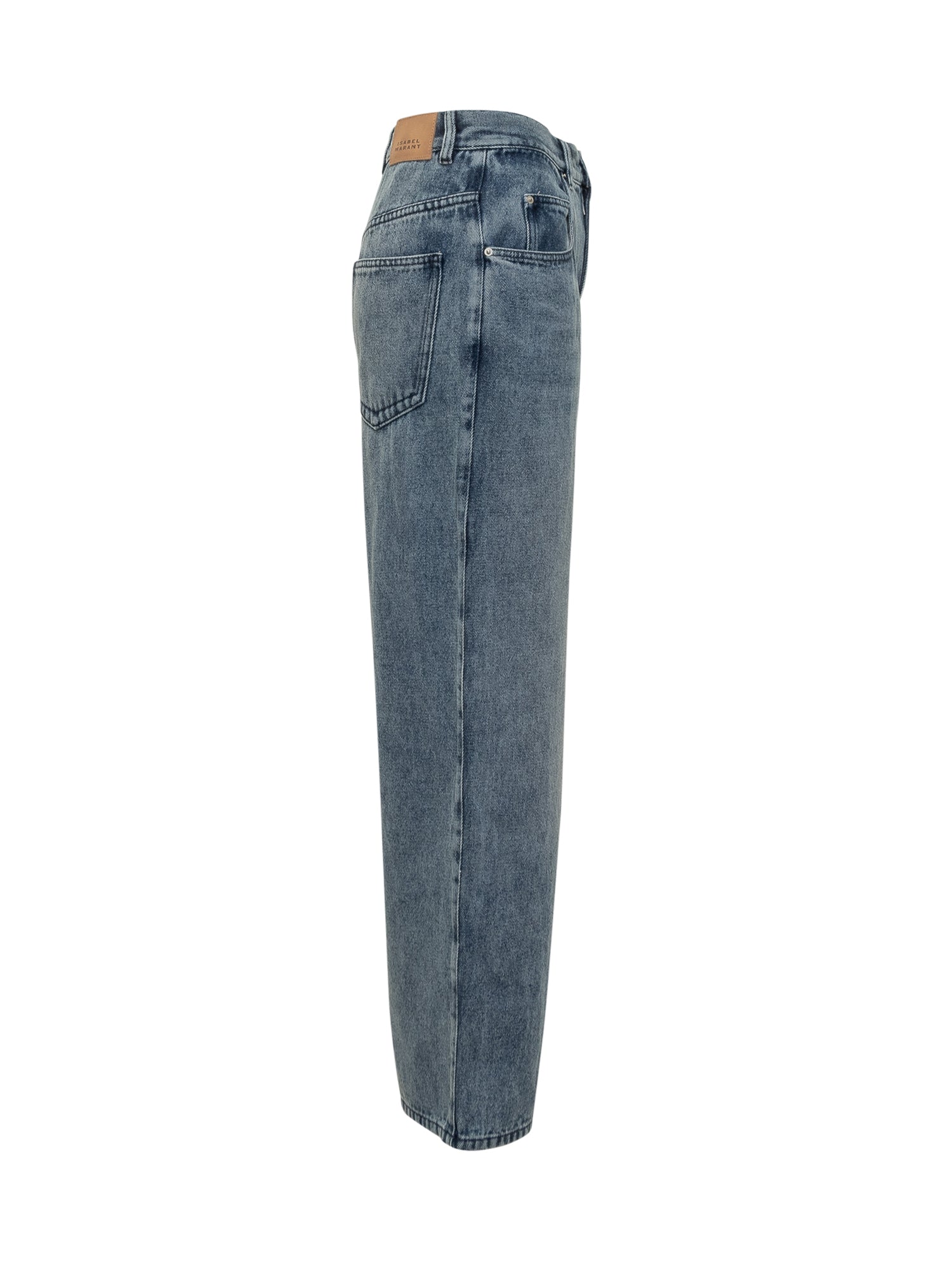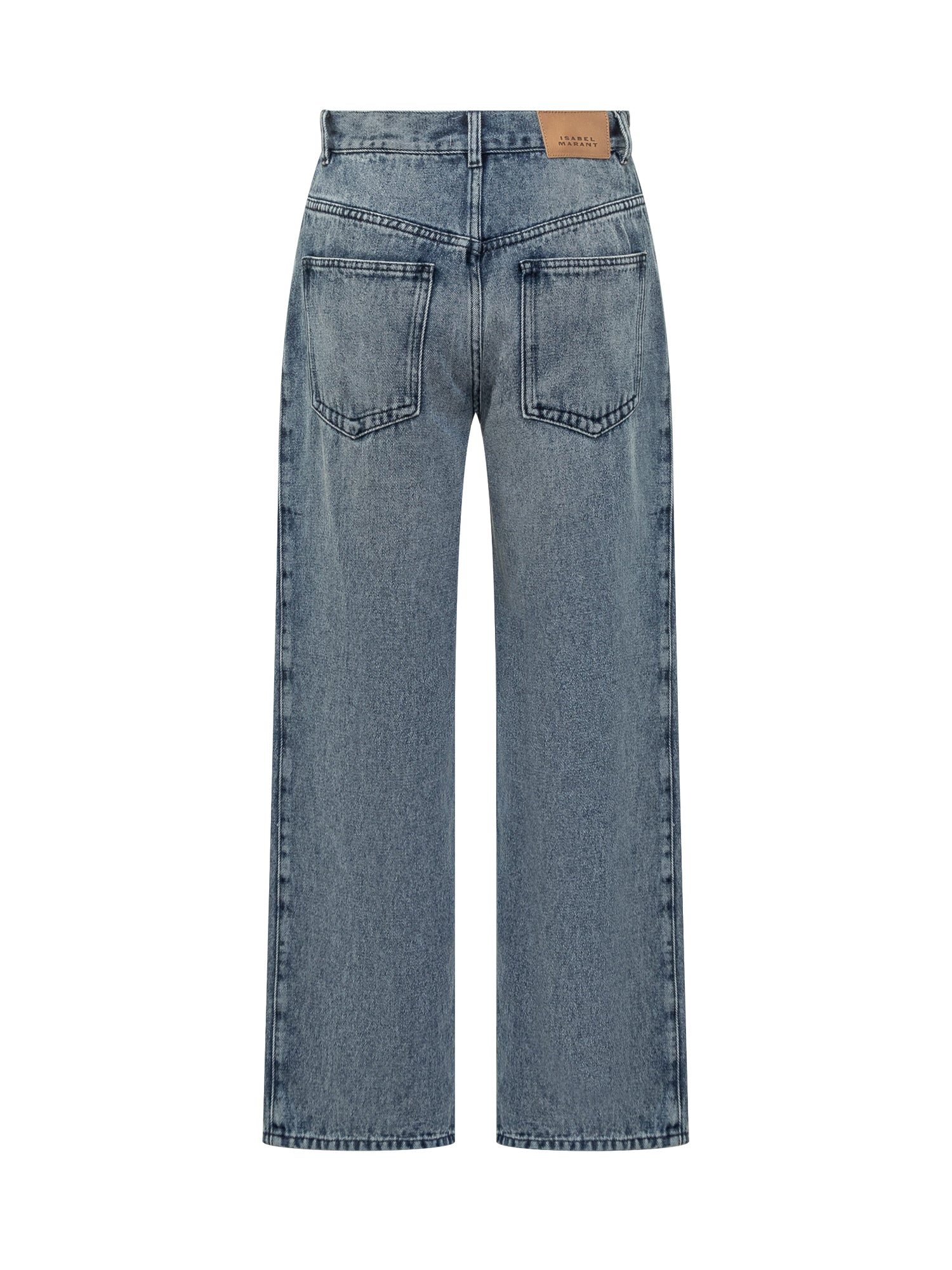 Jeans Isabel Marant a gamba dritta in denim blu slavato, con vita alta e cuciture centrali che slanciano la figura.