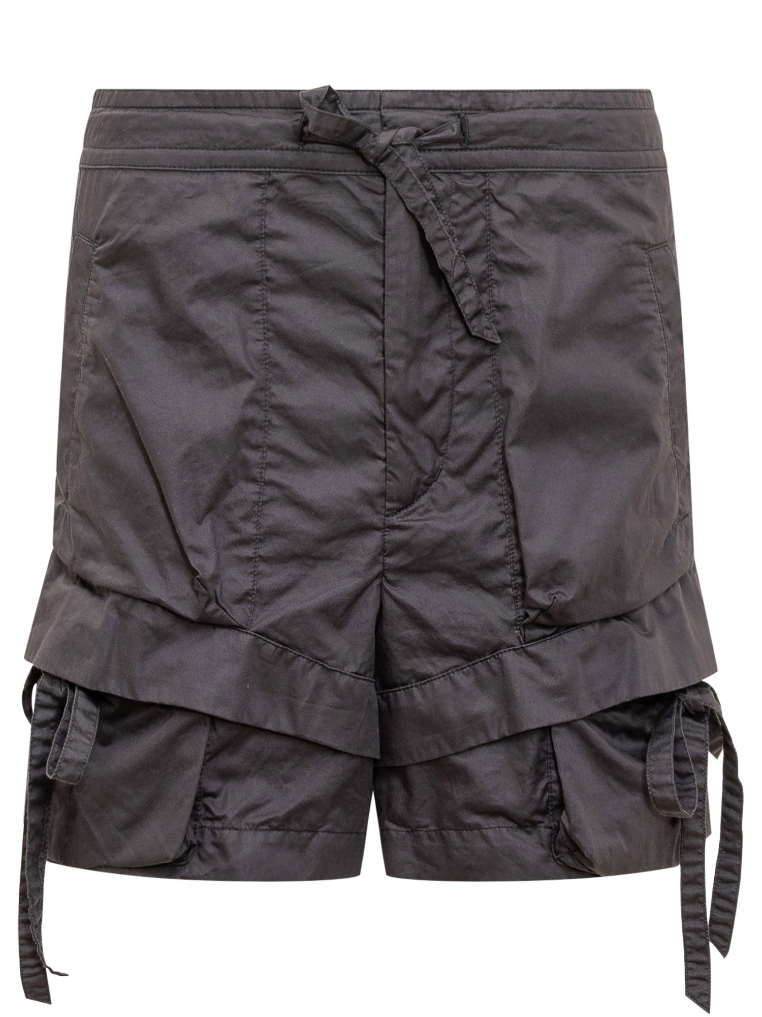 Pantaloni corti Chiusura con bottoni e zip. Coulisse in vita. Tasche allacciate sulle gambe. Tasche a filetto sui lati e sul retro. Design a gamba larga.