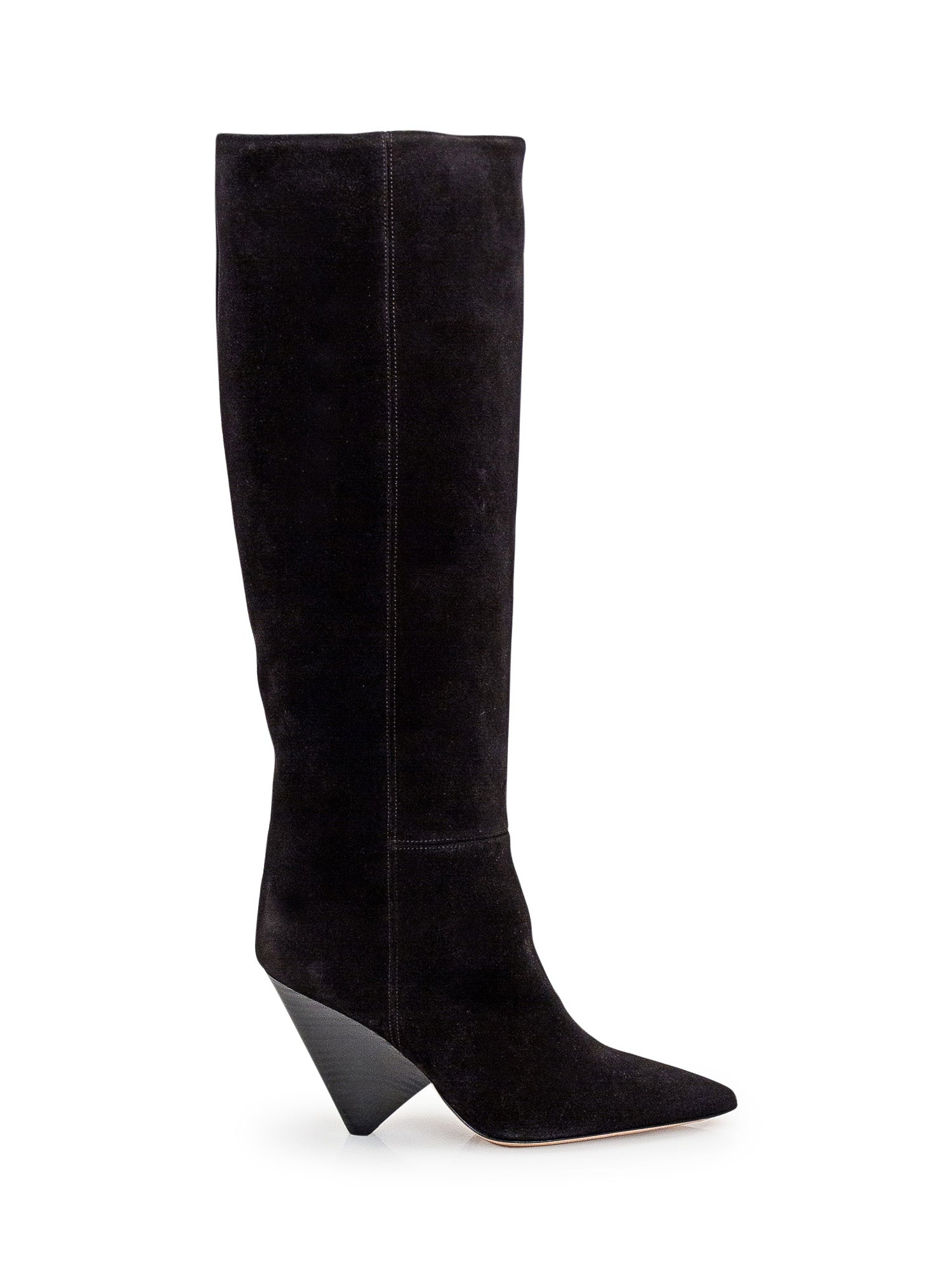Stivale nero in pelle scamosciata con zeppa. Slip-on. Logo sulla suola.