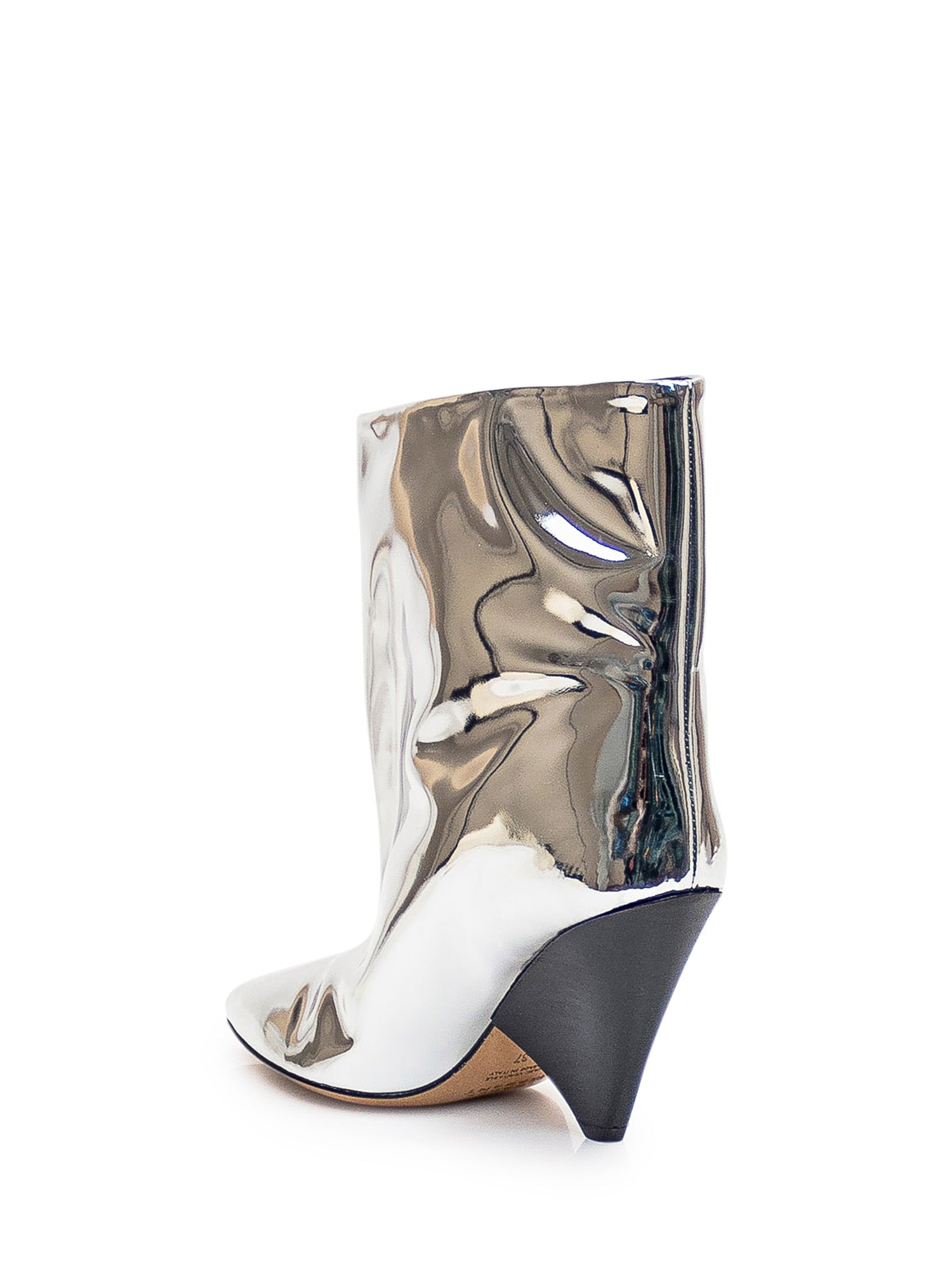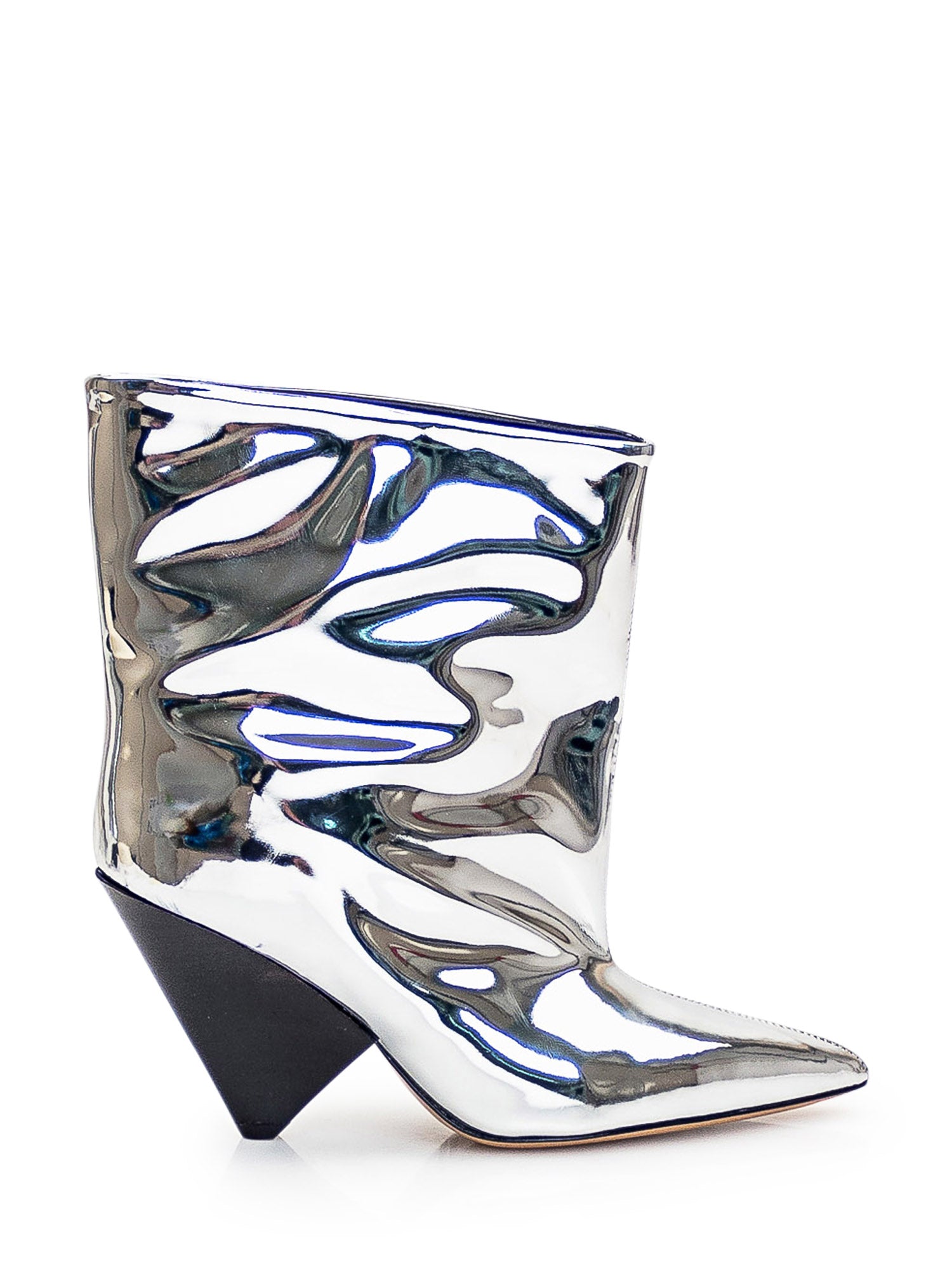 Stivale basso con effetto a specchio. Tacco conico. Slip-on. Logo sulla suola.