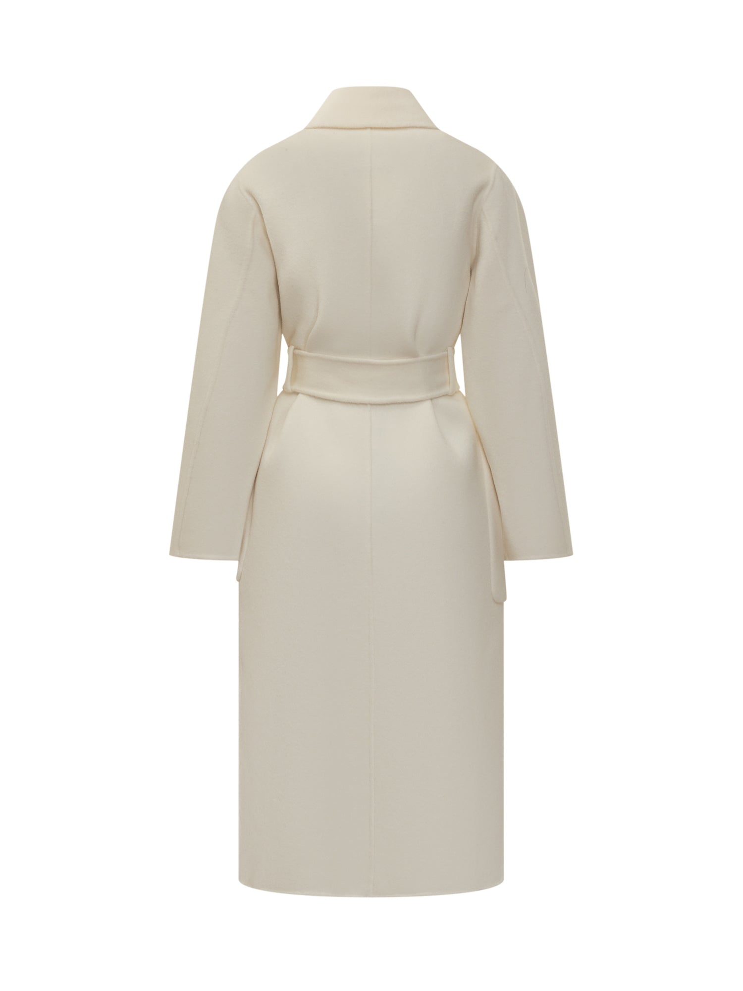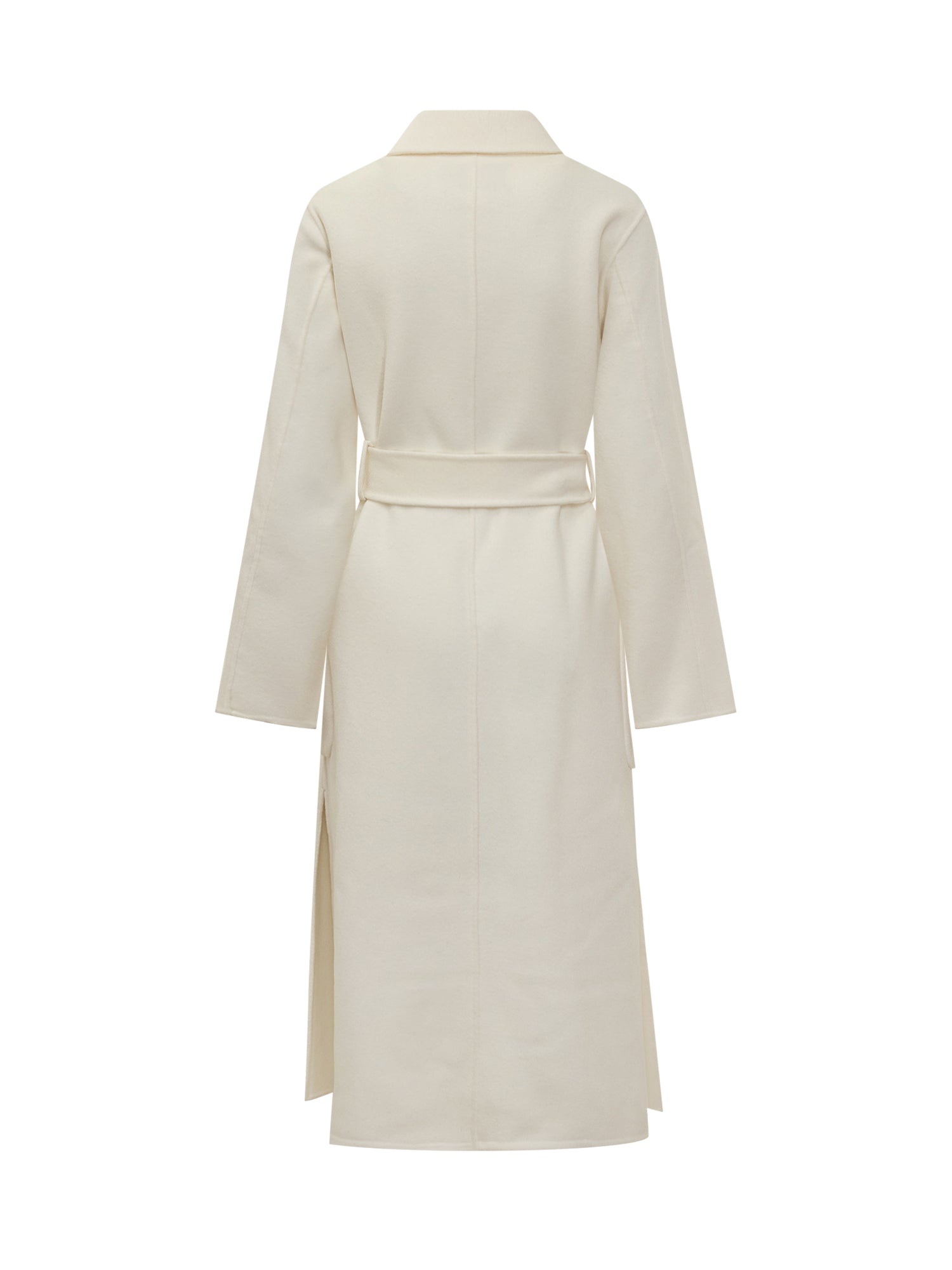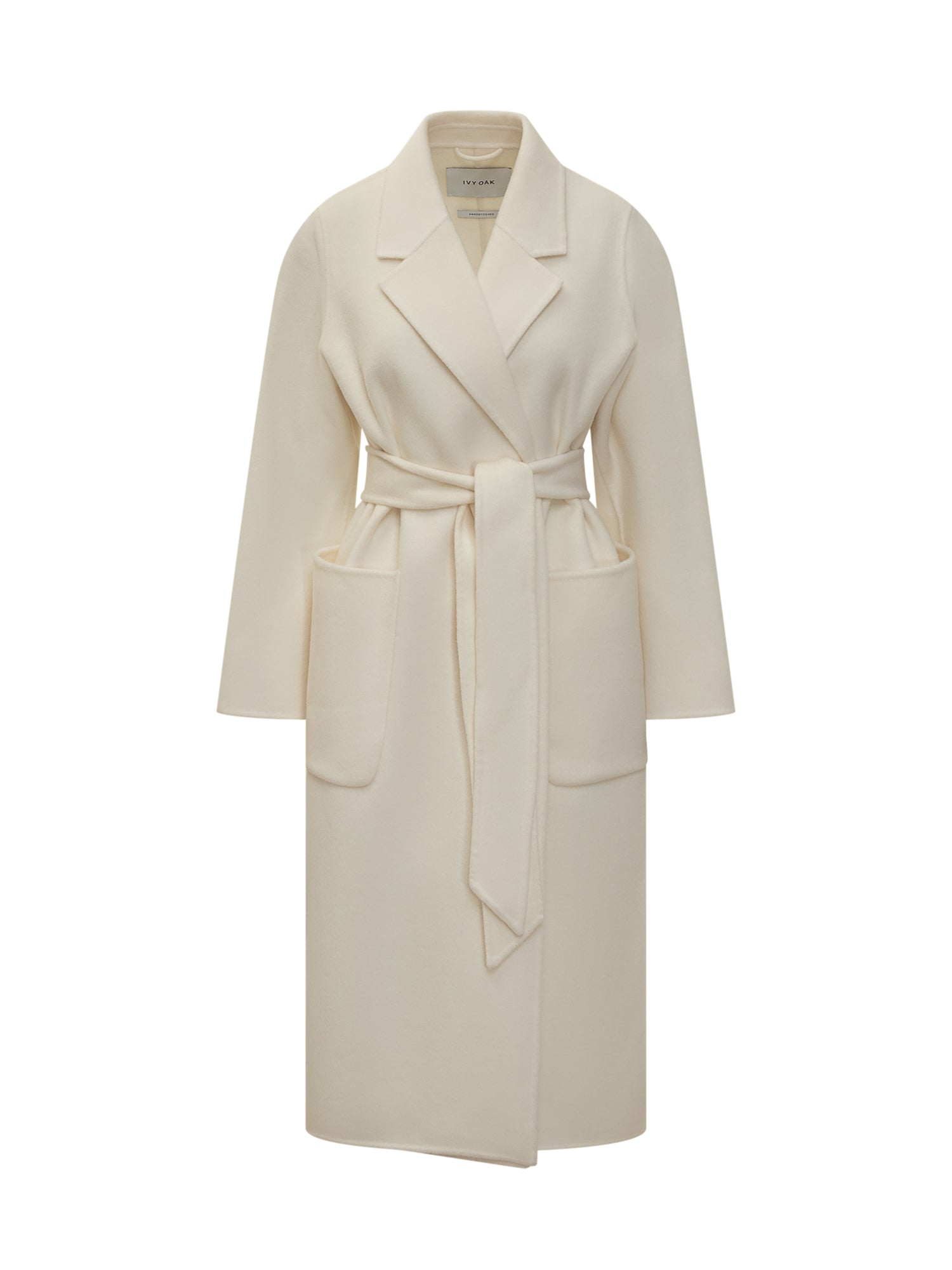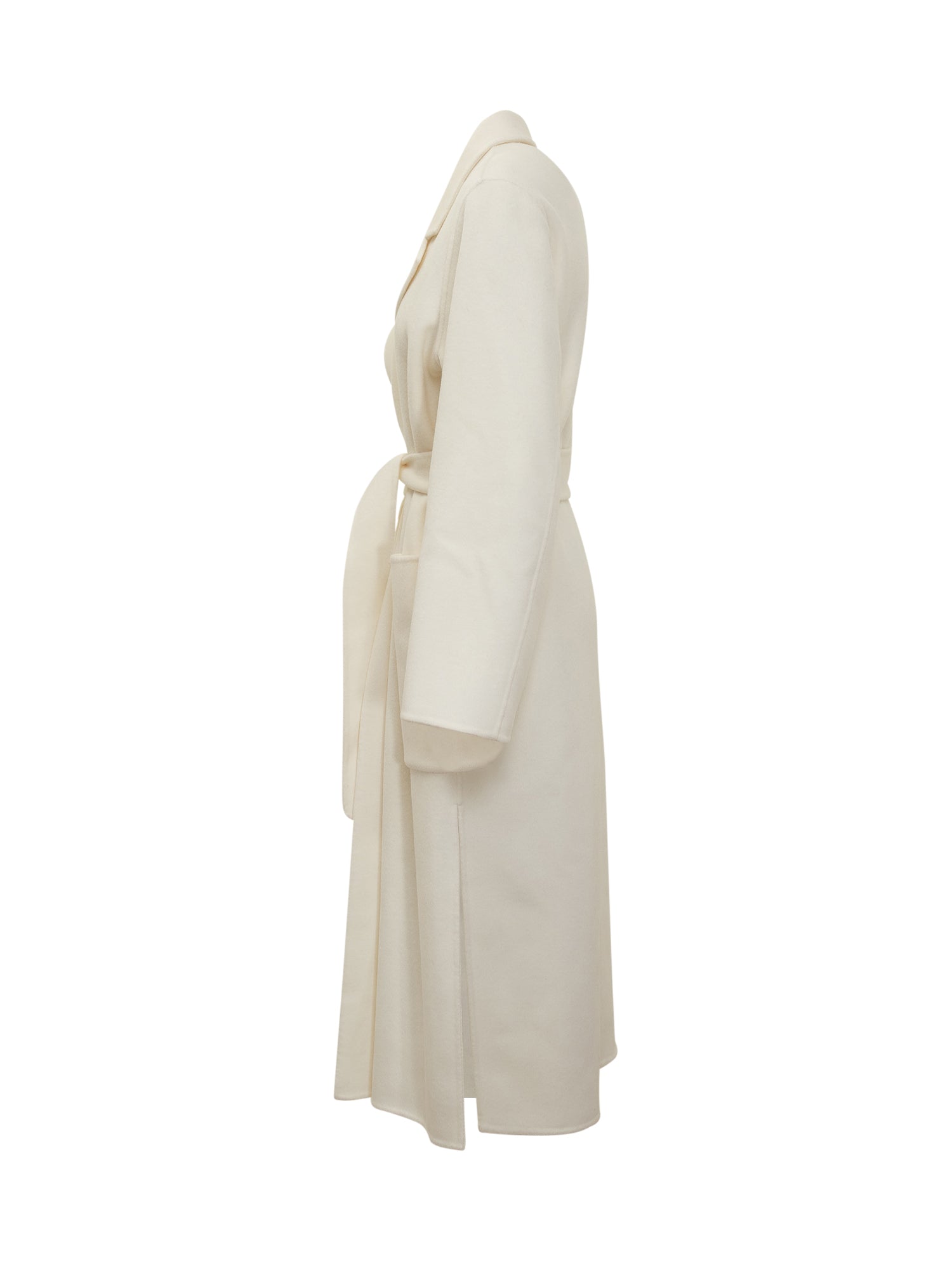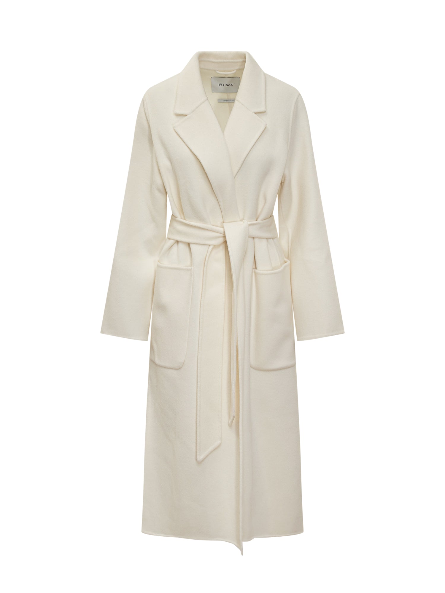 Cappotto Ivy Oak bianco con cintura in vita e ampi revers. Realizzato in tessuto caldo e raffinato, dona eleganza e versatilità.