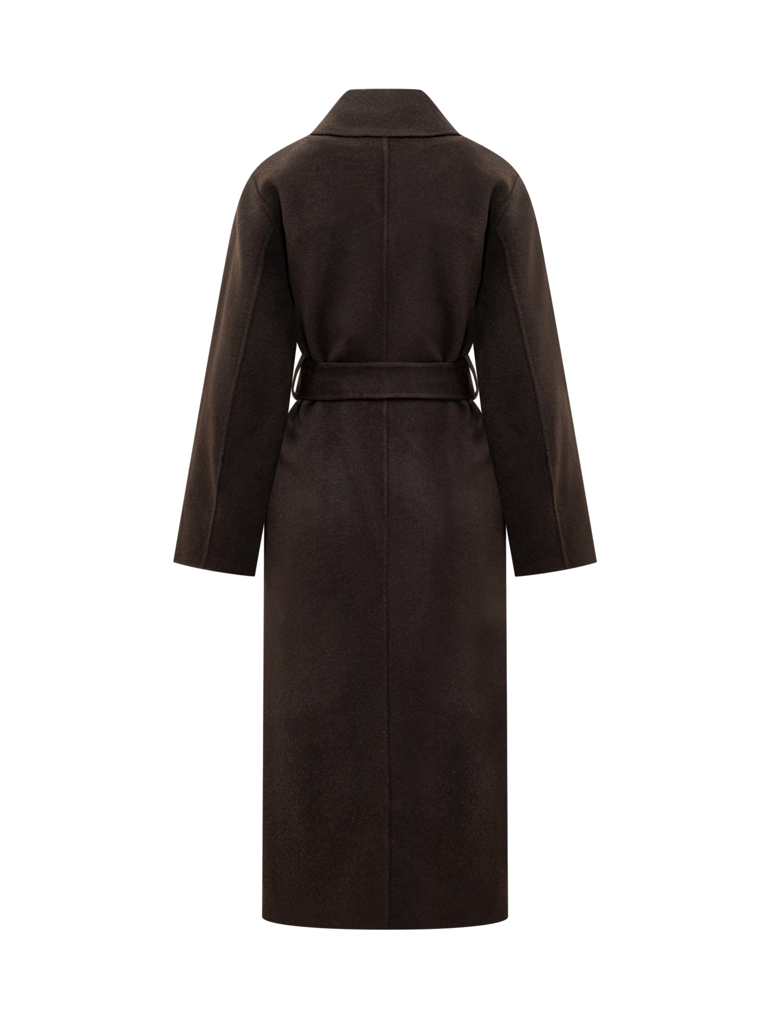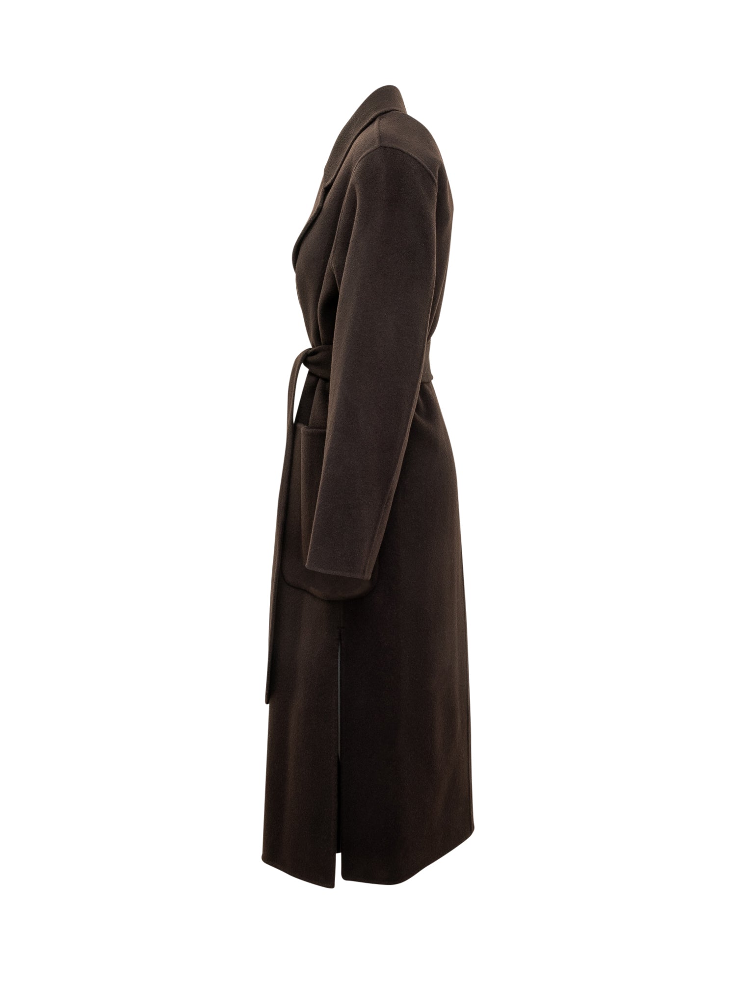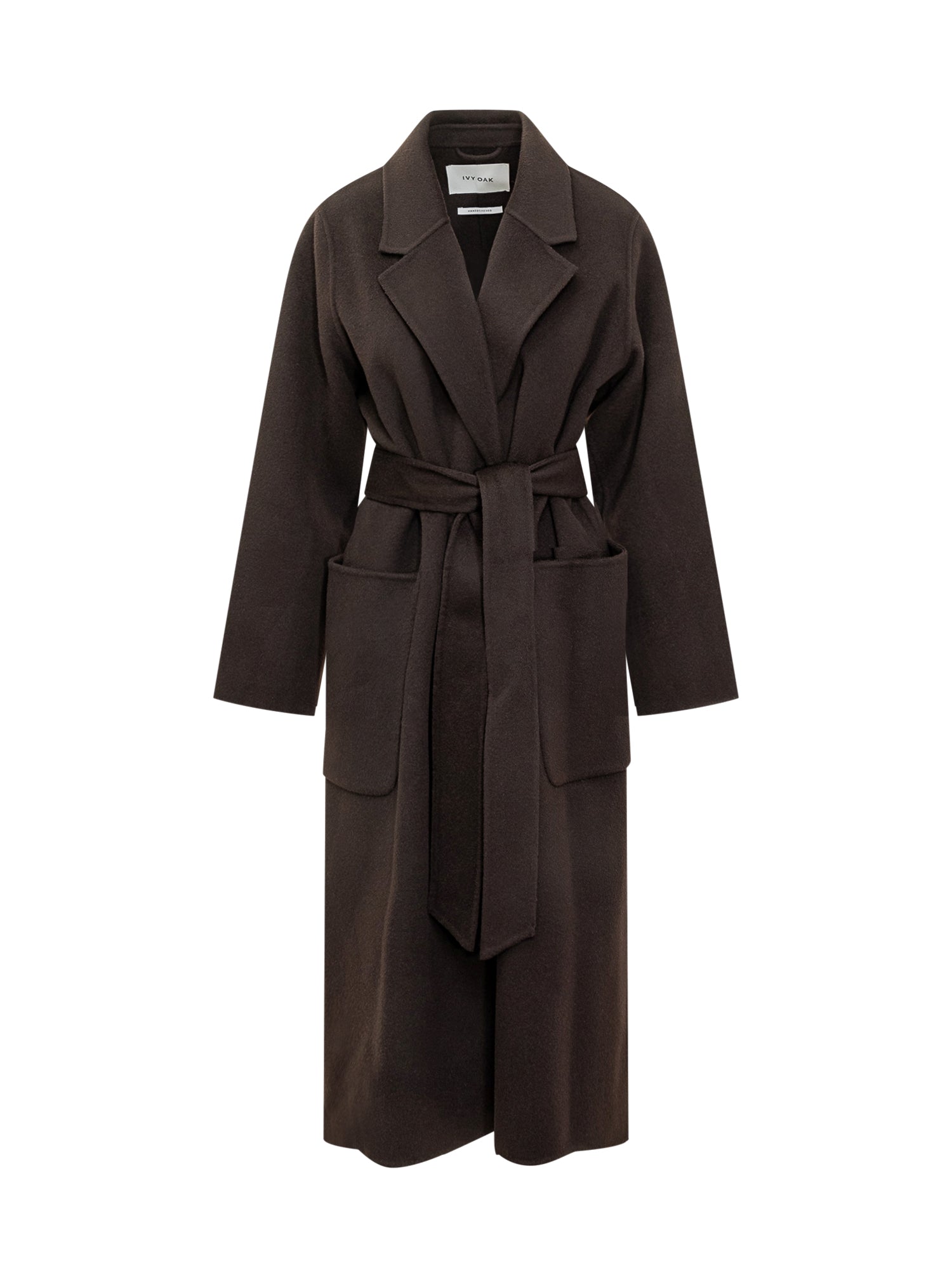 Cappotto Ivy Oak marrone con cintura in vita e ampie tasche. Elegante e versatile, è realizzato in tessuto caldo e confortevole.