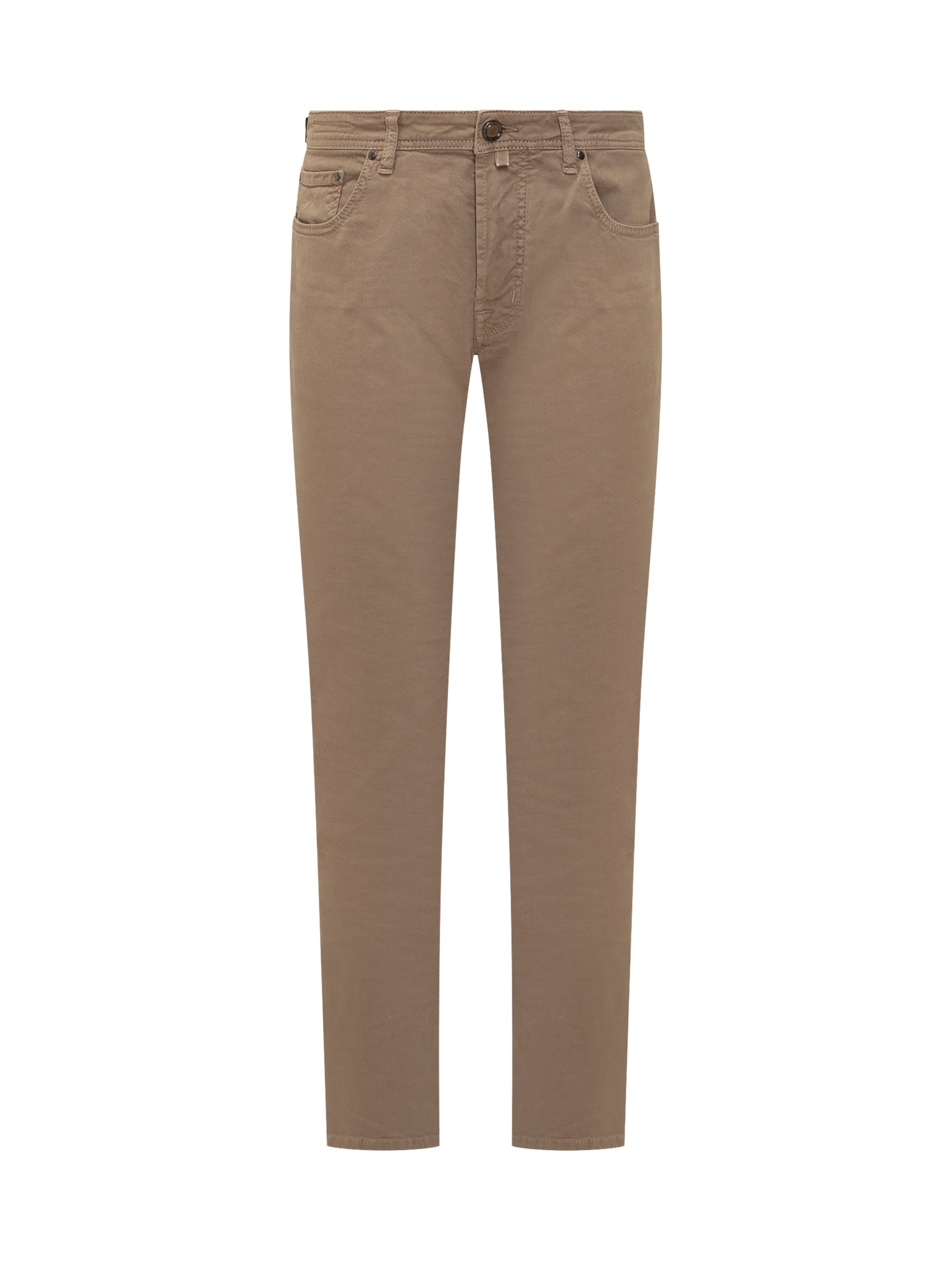 Jeans Jacob Cohen Bard in cotone stretch beige. Modello 5 tasche, chiusura con bottone e zip.