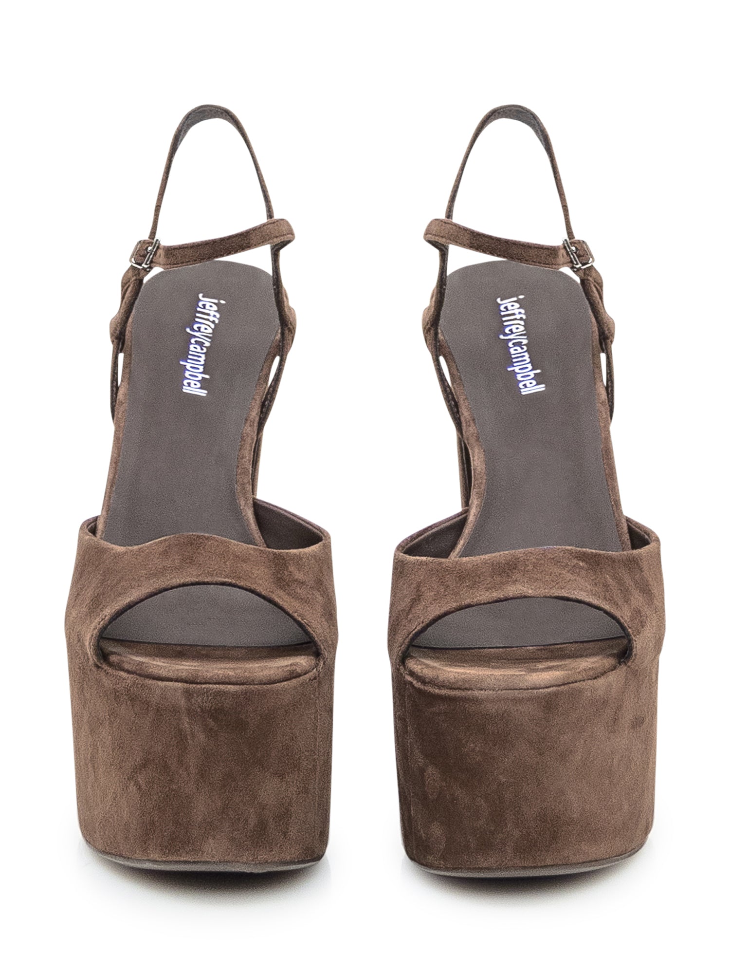 Sandalo Sandalo in camoscio marrone in pelle scamosciata. Design rétro. Cinturino alla caviglia con fibbia regolabile. Punta stondata. Interno in pelle.