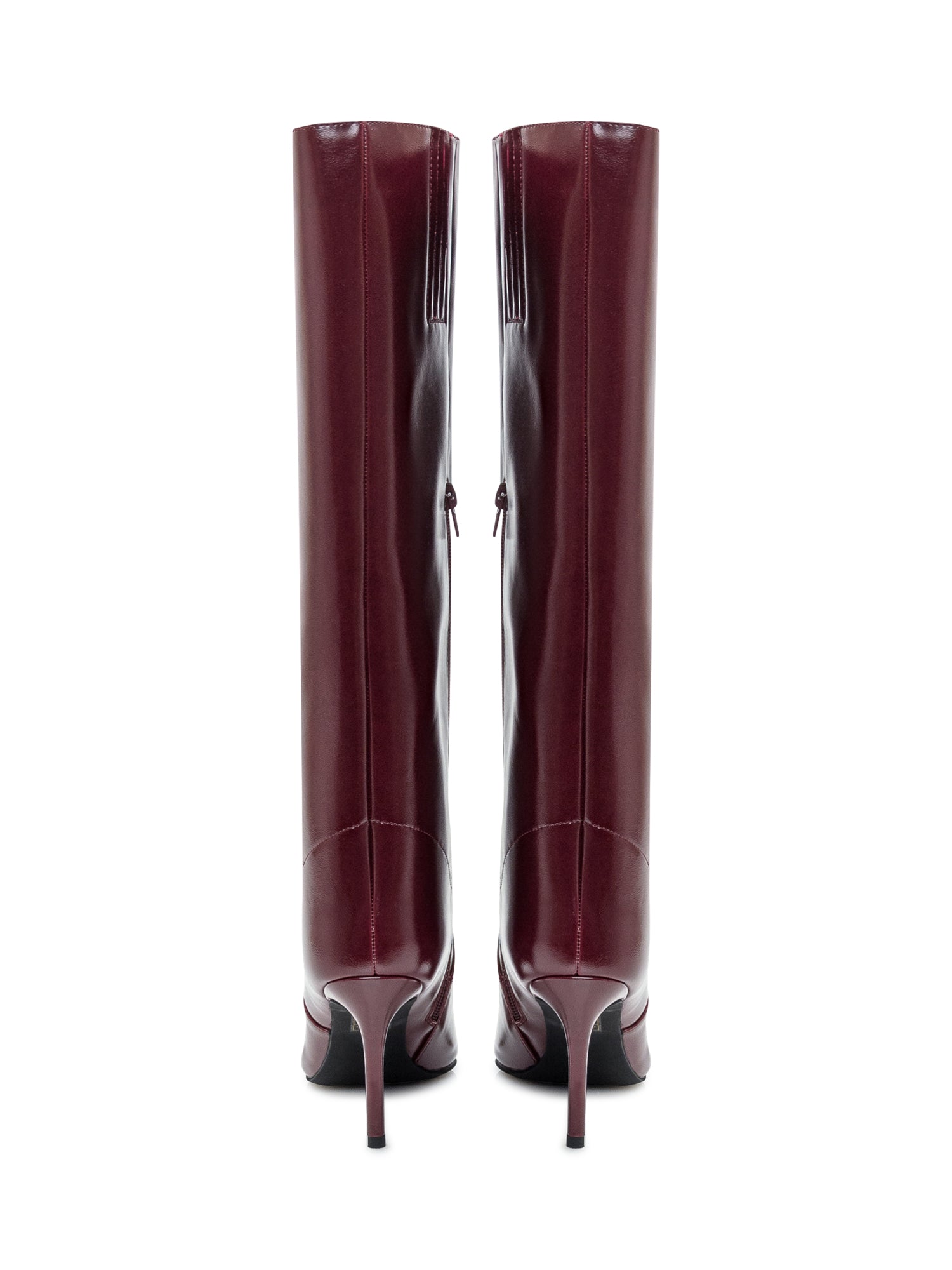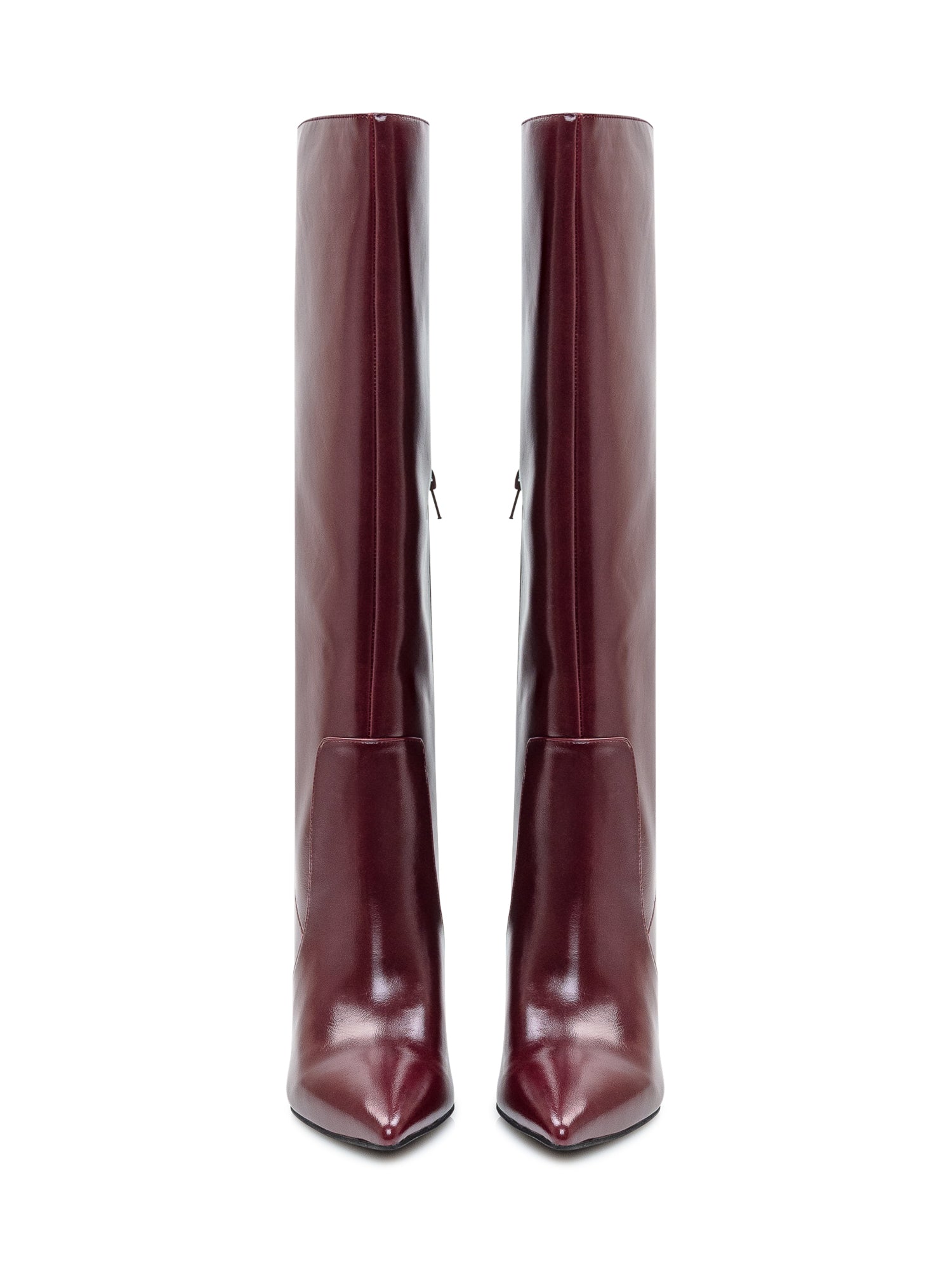 Stivali Jeffrey Campbell in pelle bordeaux con punta affusolata e tacco a stiletto.