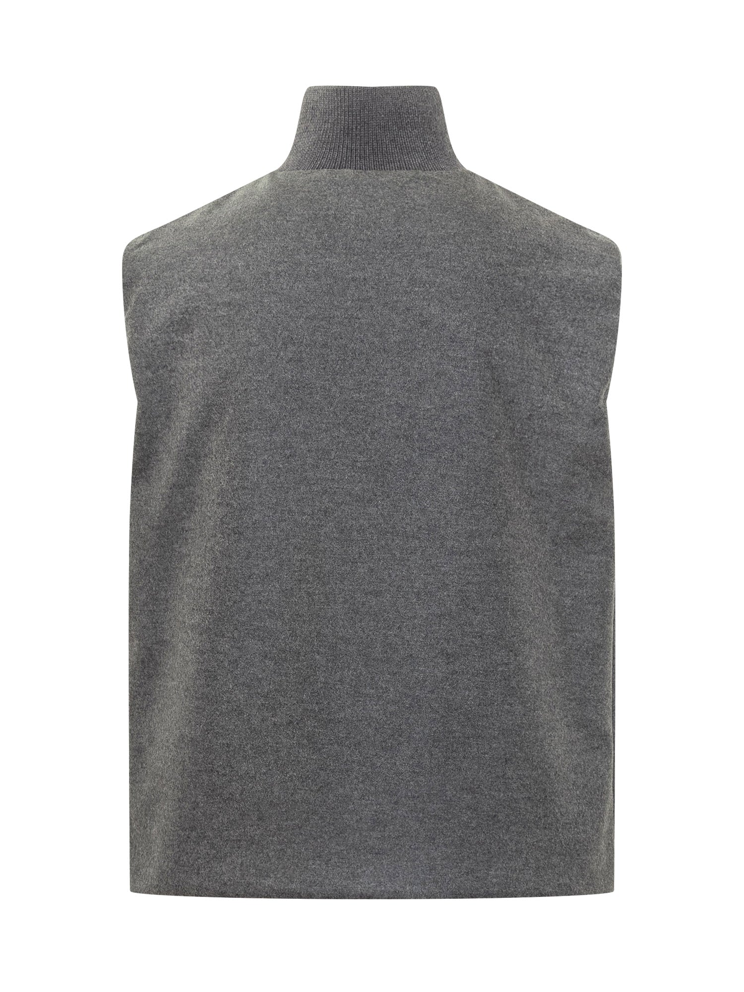 Gilet Jil Sander in morbida lana grigia, caratterizzato da linea essenziale, zip a doppio cursore e collo alto.