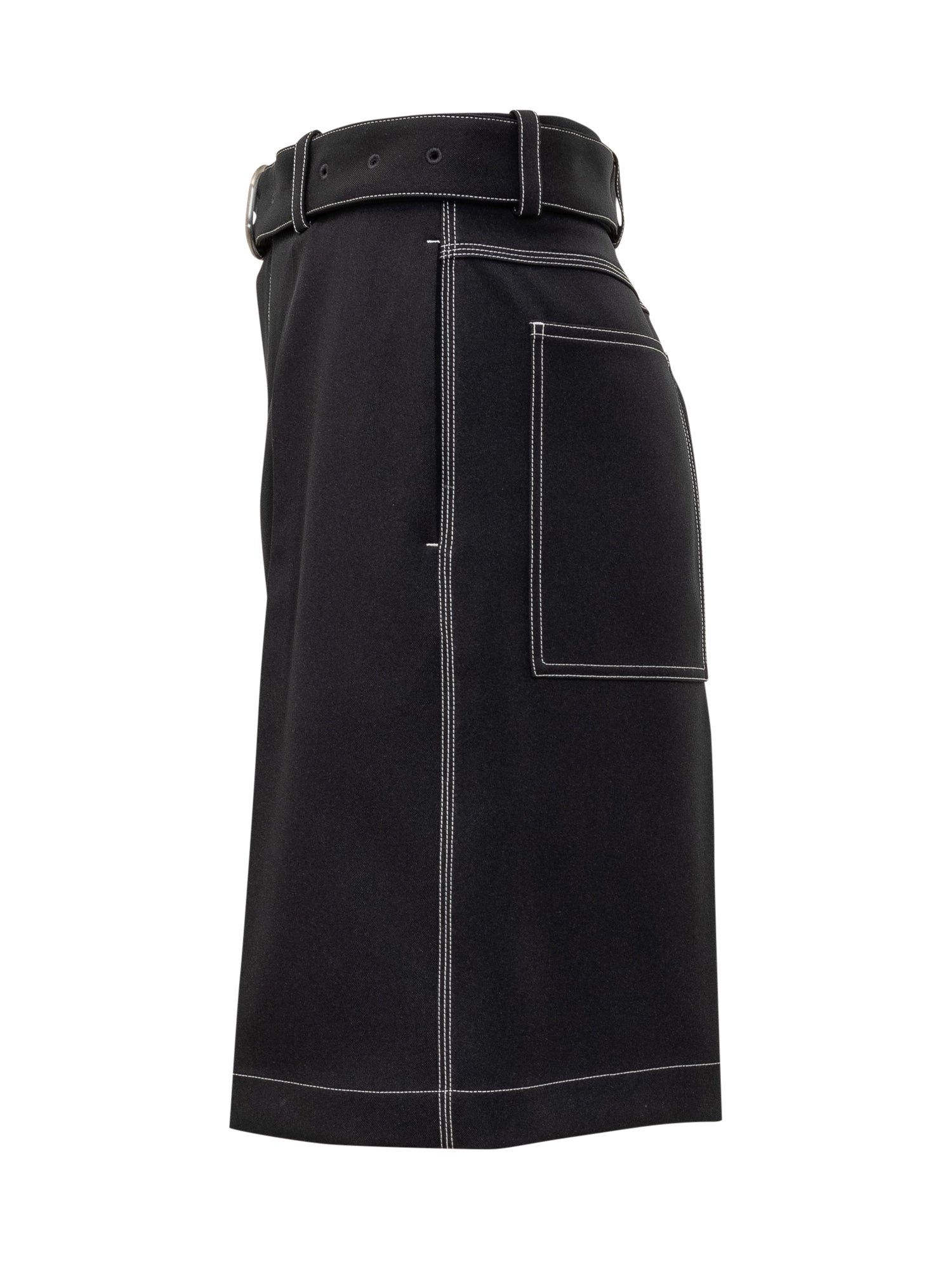 Chiusura con gancio e zip. Cintura con fibbia. Tasche a filo e applicate.