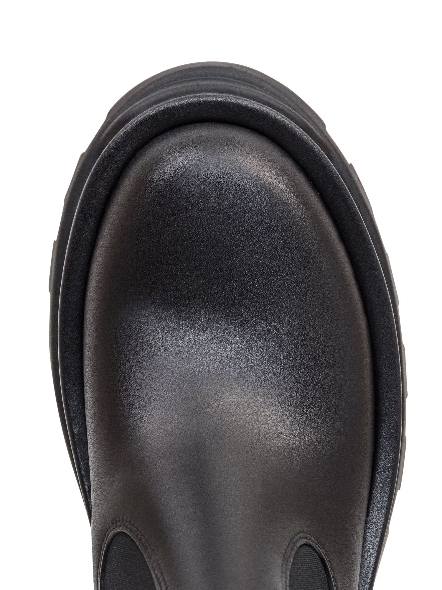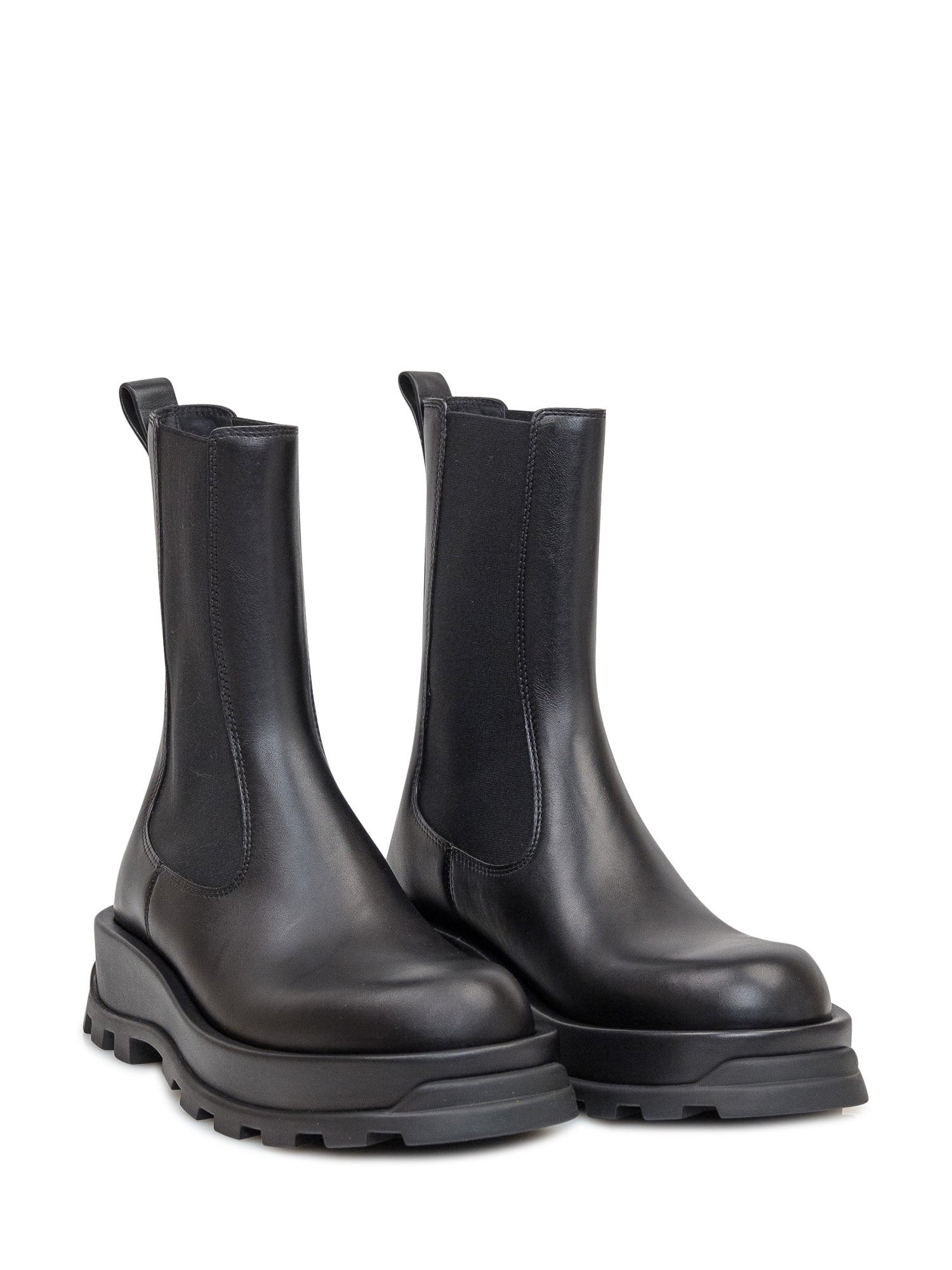 Stivaletto nero in pelle. Inserto in elastico. Punta rotonda. Logo impresso sul tallone.